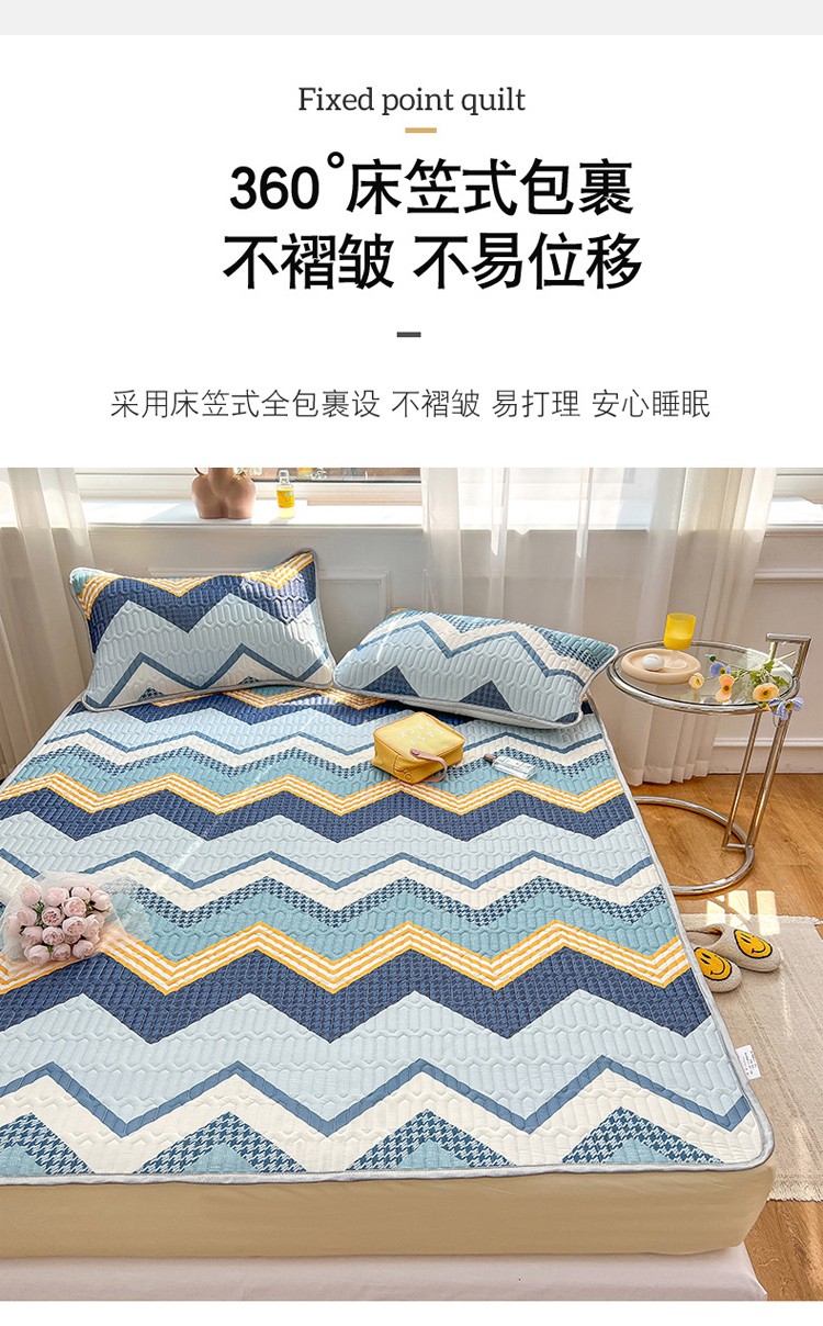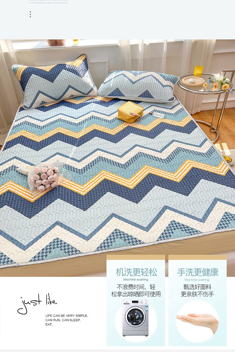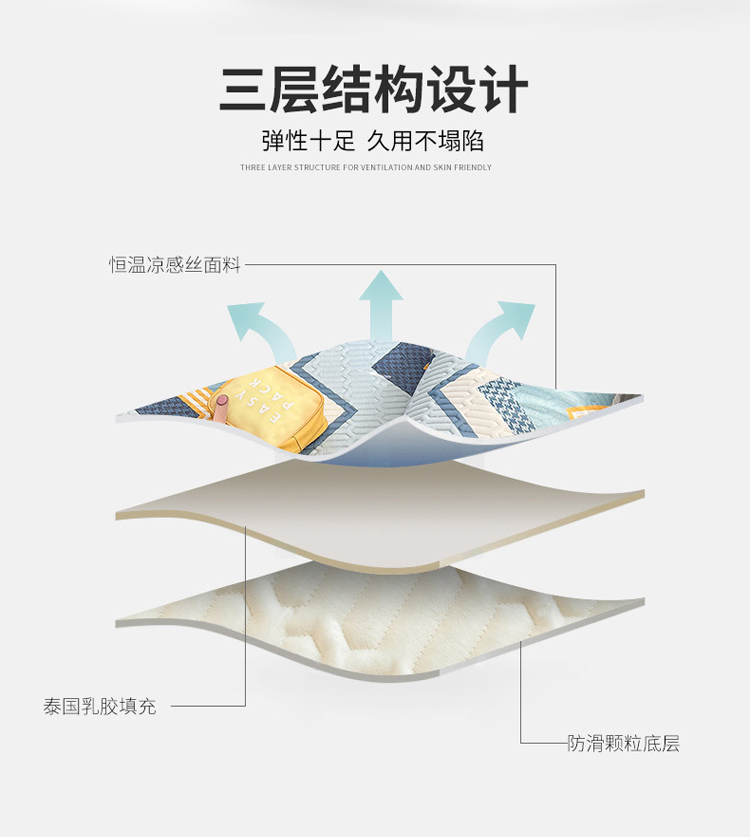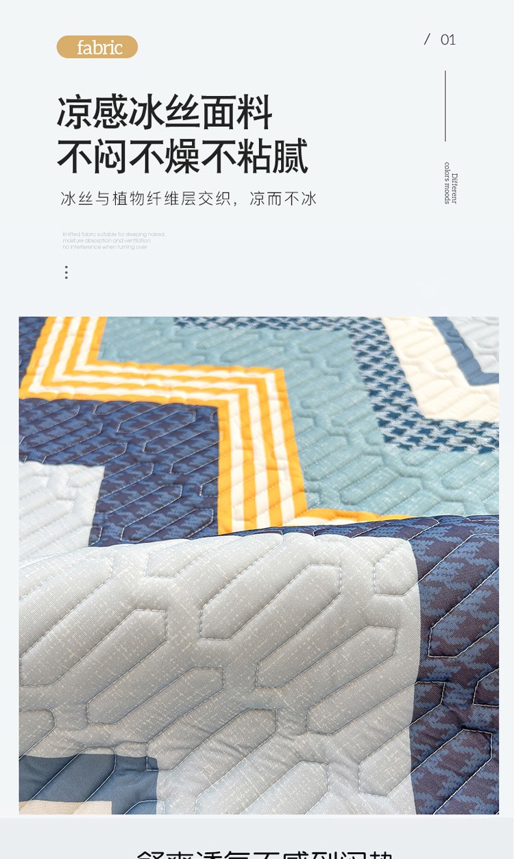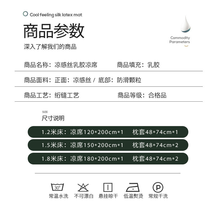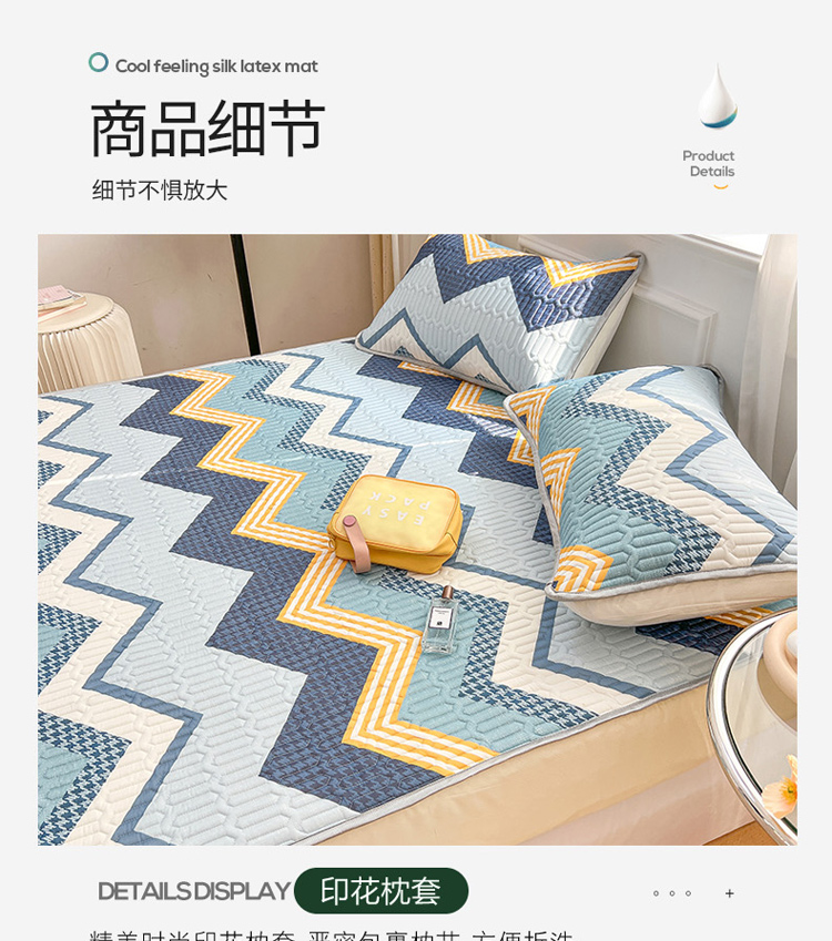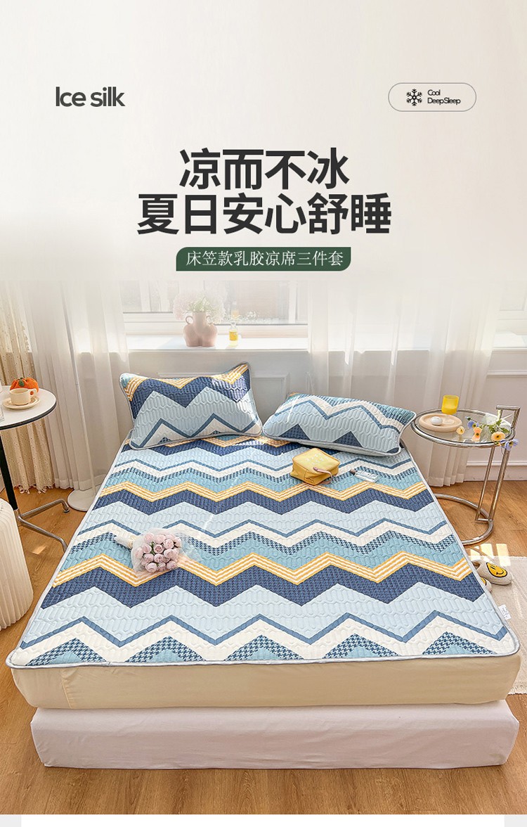 商品名称:寐居 2022新款0.5凉感丝床笠款乳胶凉席三件套 床笠款-简约蓝
