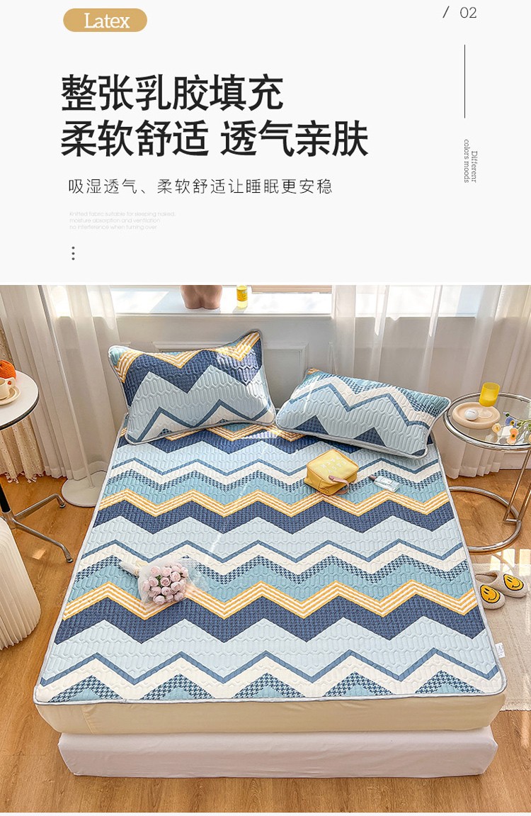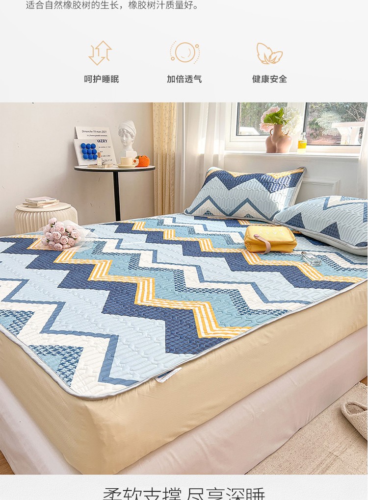寐居 2022新款0.5凉感丝床笠款乳胶凉席三件套 床笠款-简约蓝