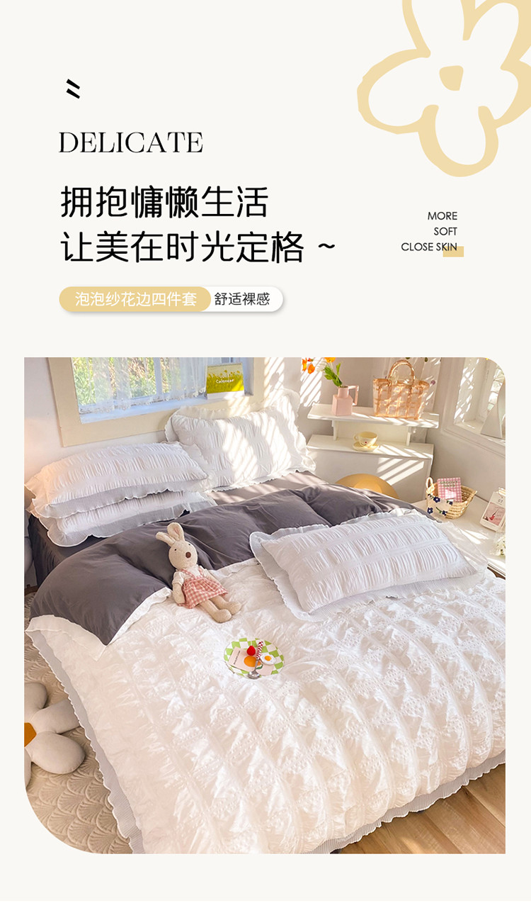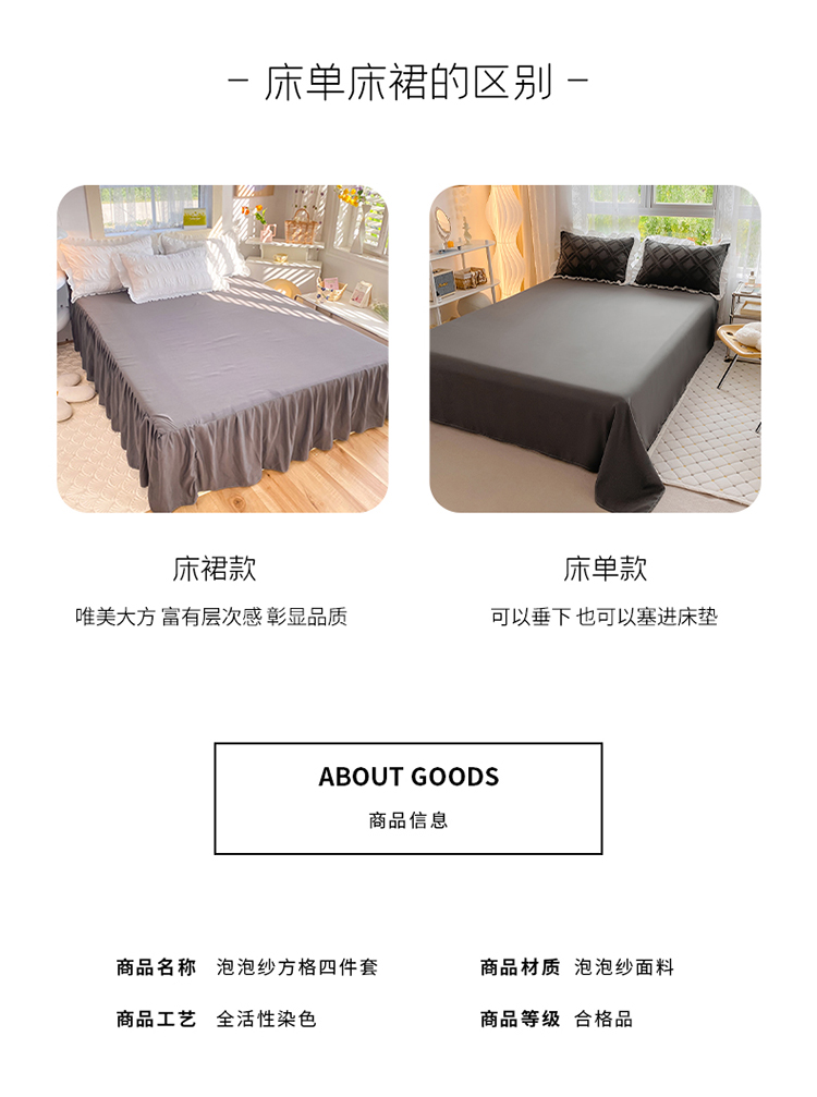 当前位置: 91家纺网 > 商品网购 > 床品套件 > 四件套 > 普通磨毛四件套 > 逸尚阁 2022新款泡泡纱方格四件套 泡泡纱方格—白灰