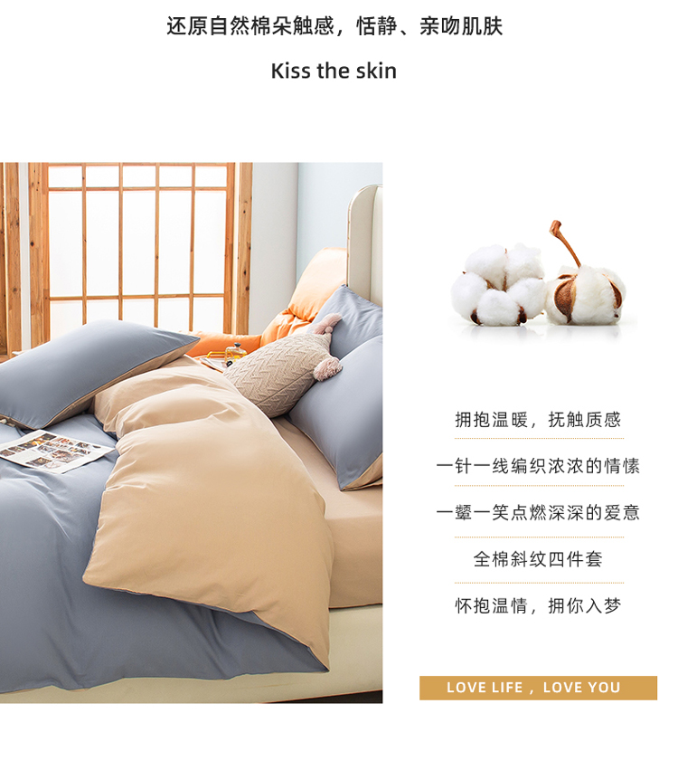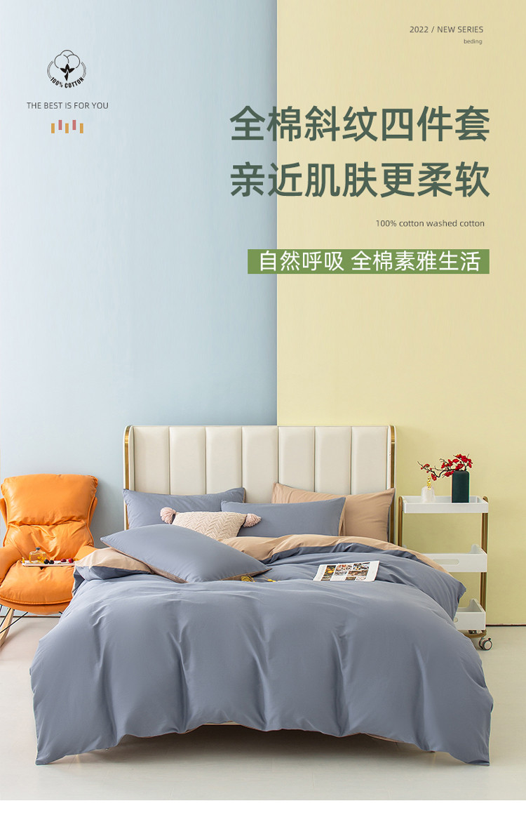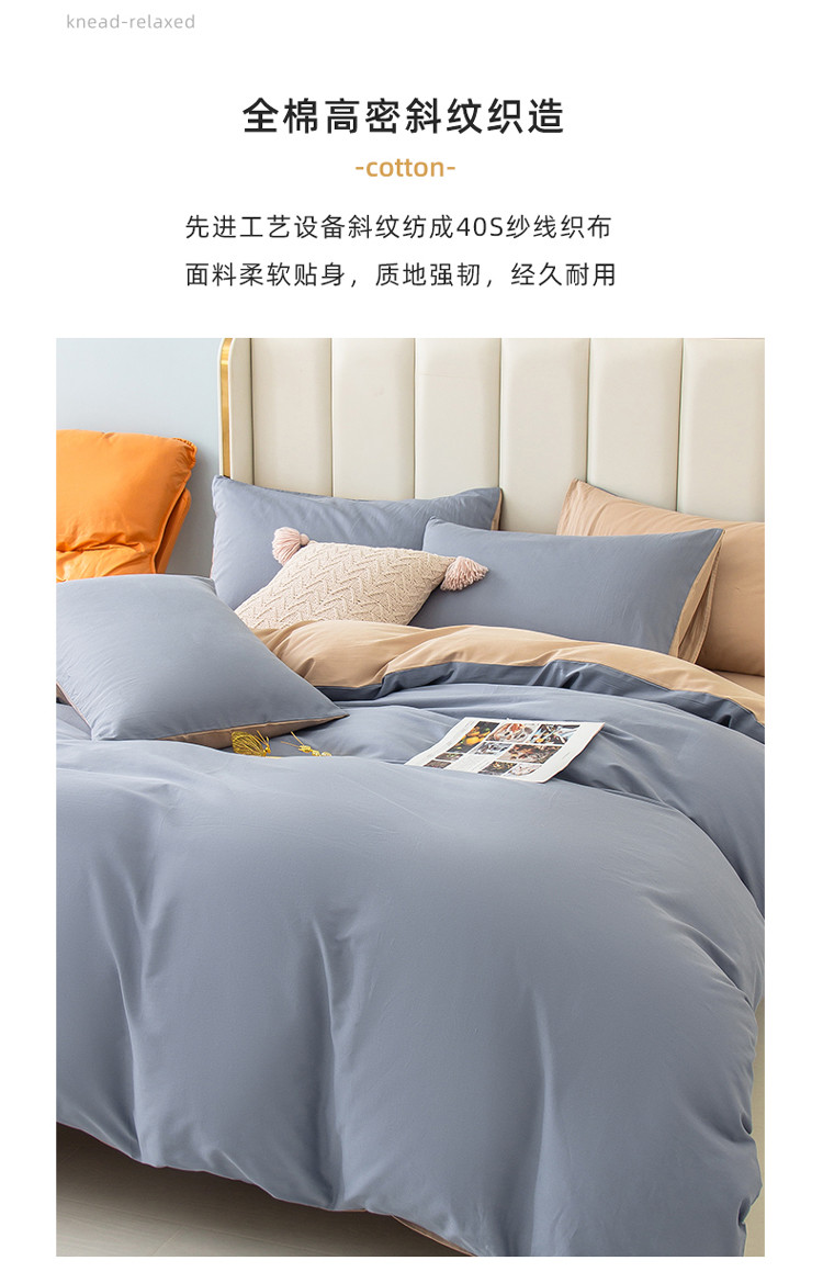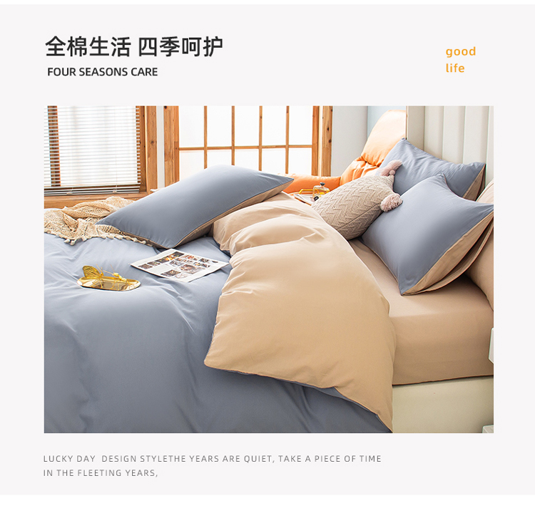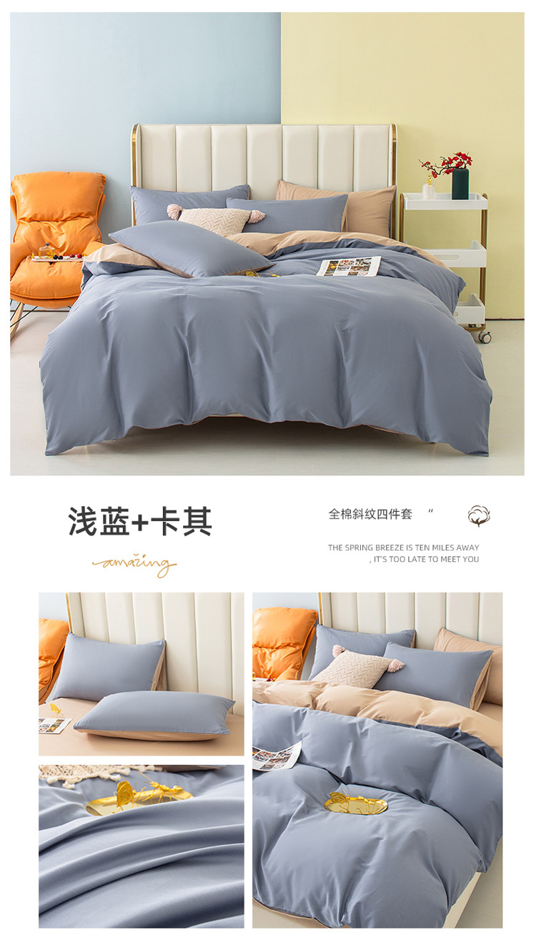 当前位置: 91家纺网 > 商品网购 > 床品套件 > 四件套 > 全棉普通四件套 > 柠萌2022新款全棉40支纯棉纯色双拼系列四件套 浅蓝+卡其