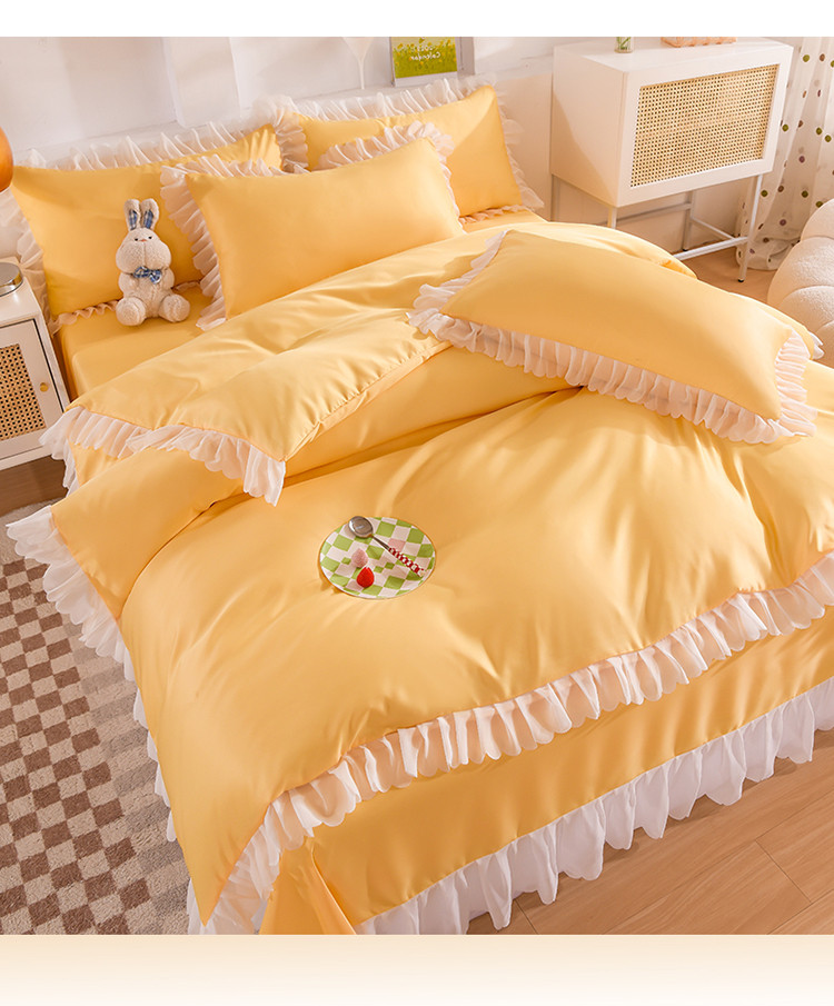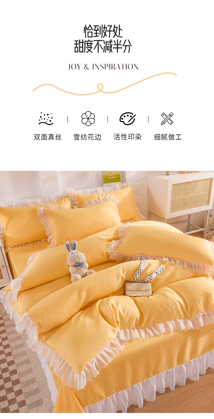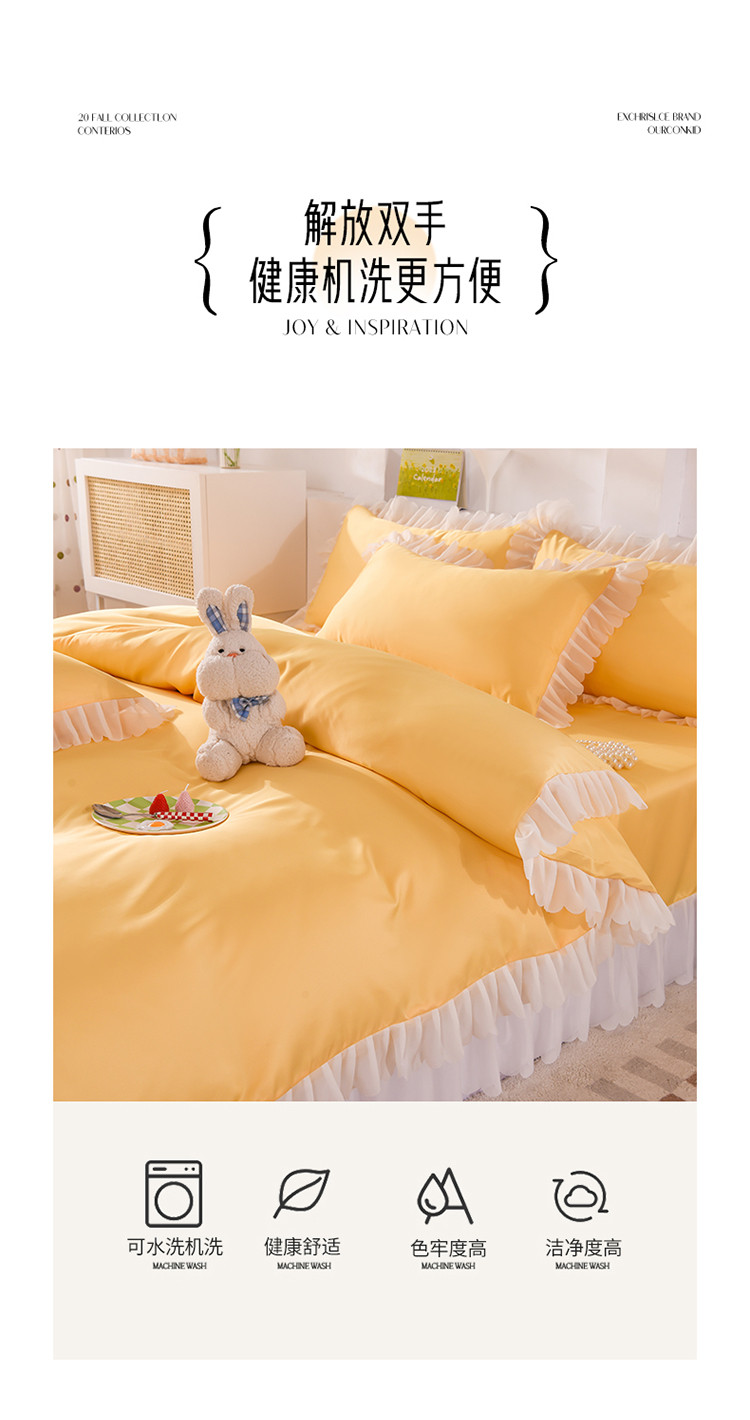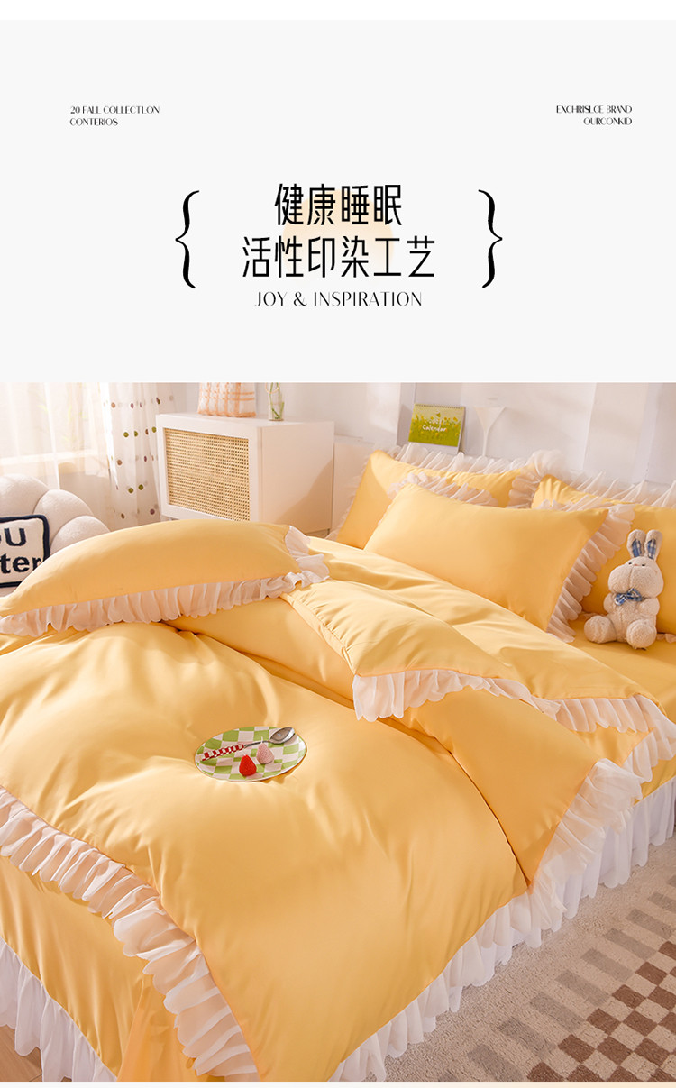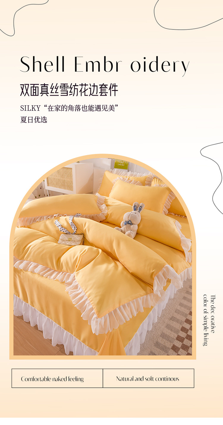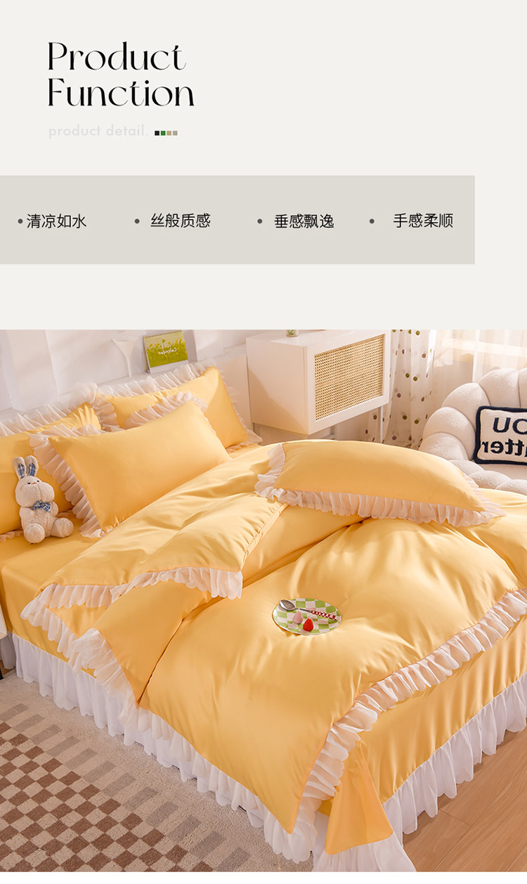 (总)梦之岛 2022新款泡泡亲肤公主风夏被四件套,淡黄绿,蜜桃粉,奶油黄,浅水绿,天空蓝
