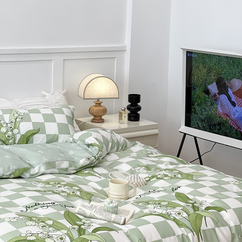 (总)昔可 2023新款全棉ins格子混搭系列四件套,ins简约绿格,粉蓝格,开心果格,学院格纹,粉绿格,海盐兰格,黄绿格,夏日蓝条,芝士黄条,紫芋泥芝士格