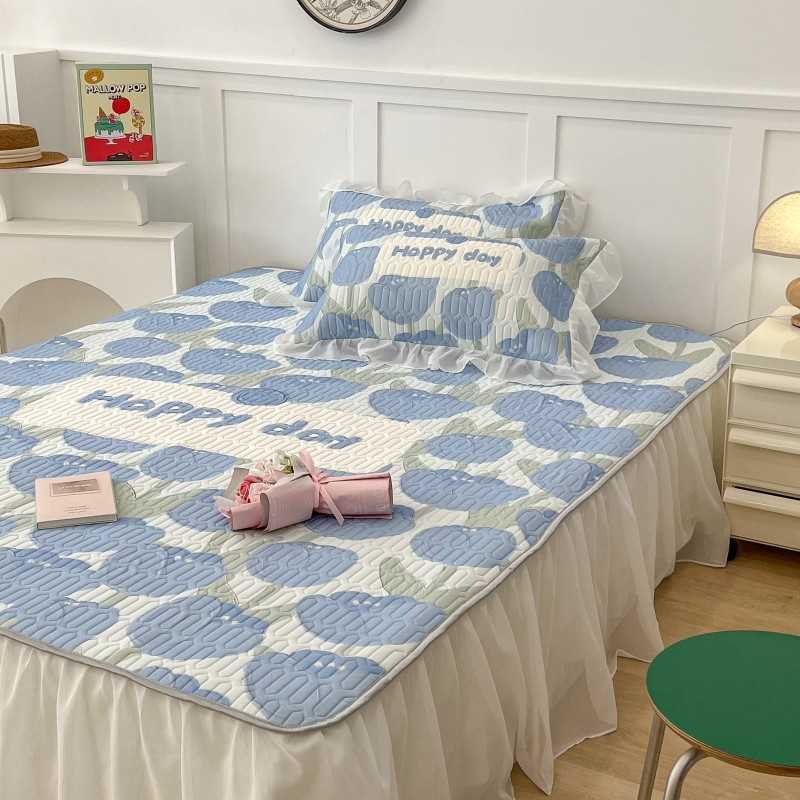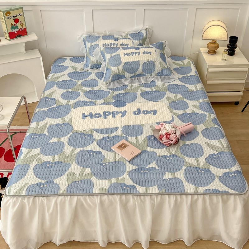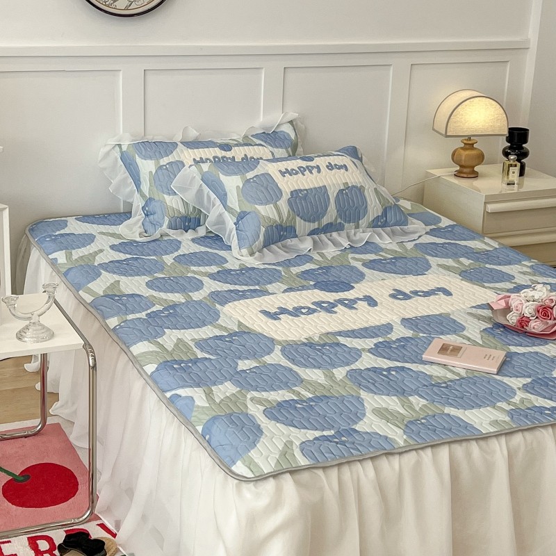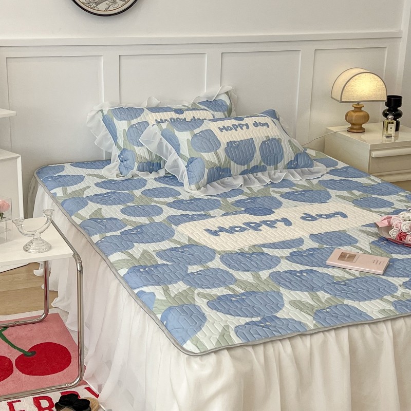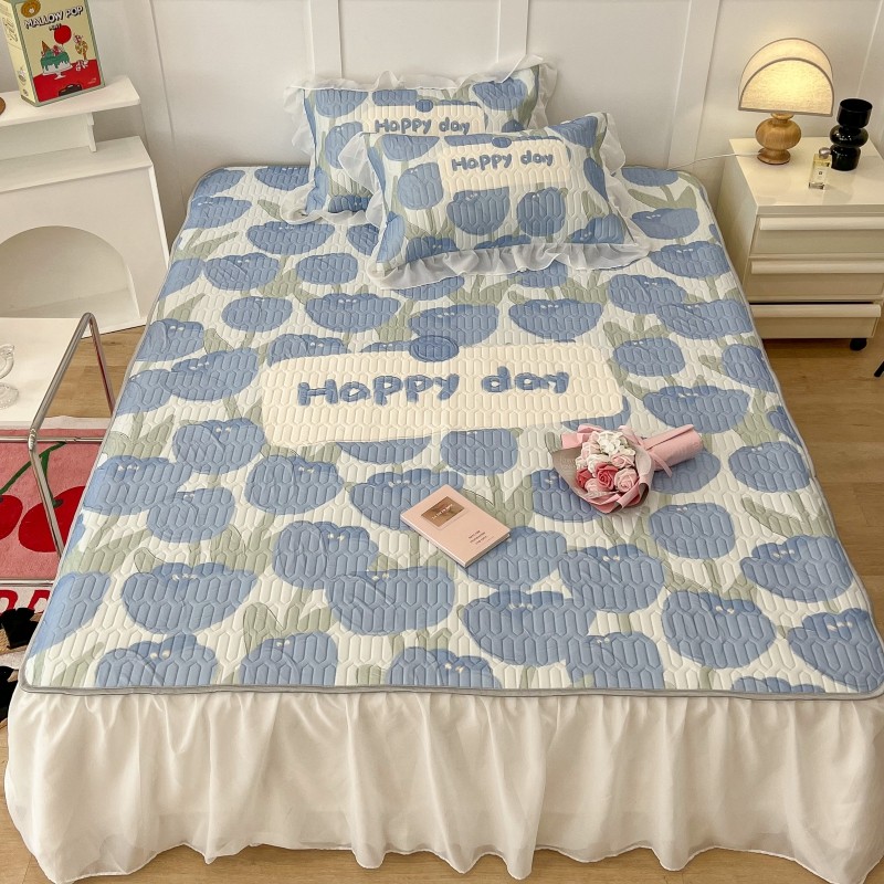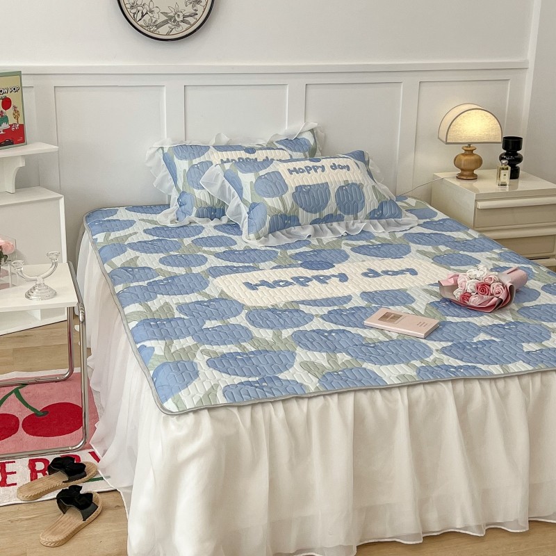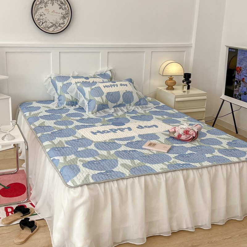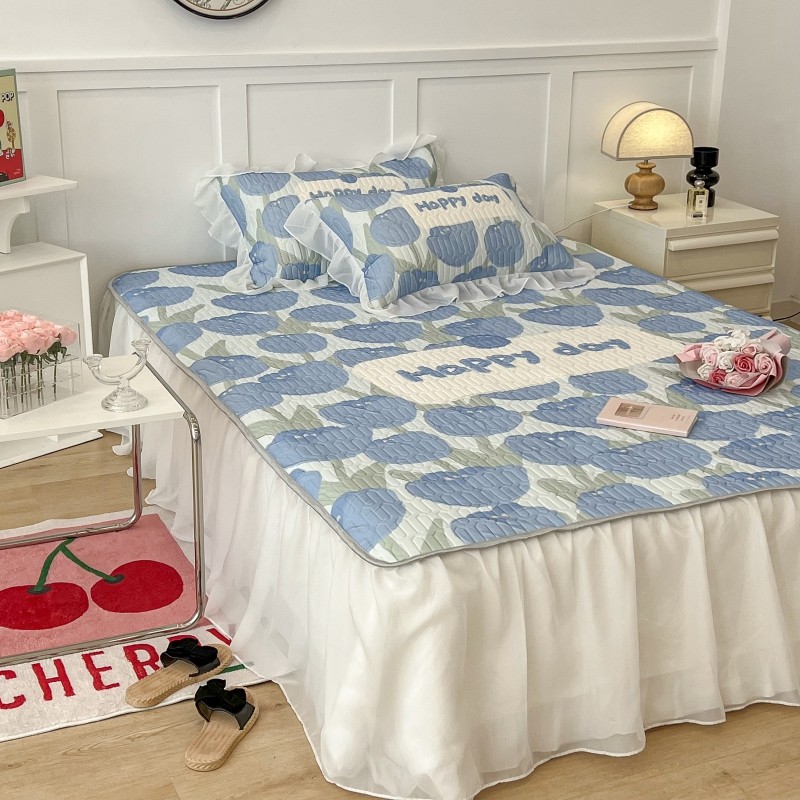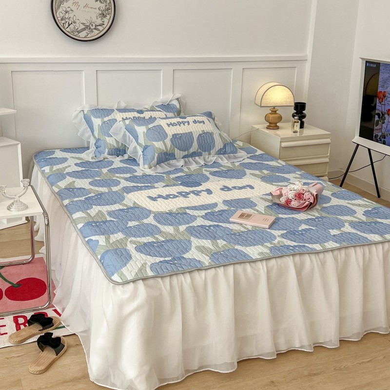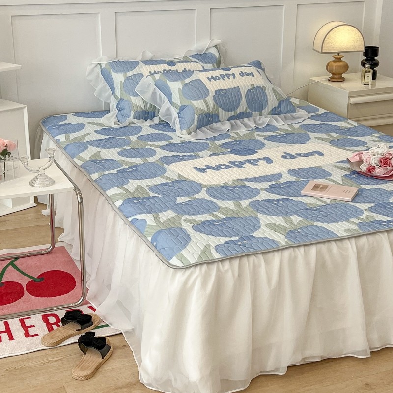 昔可 2022新款ins风小清新床裙款乳胶凉席三件套 床裙款-海德公园