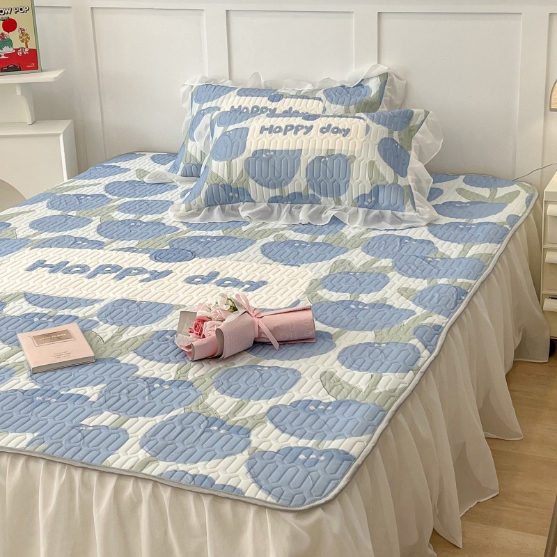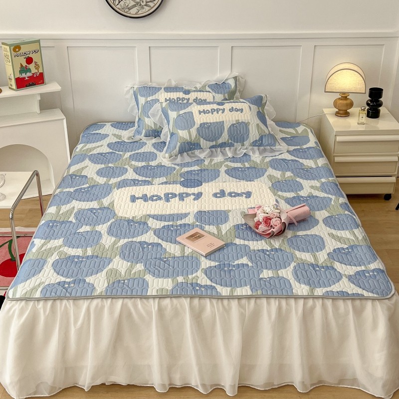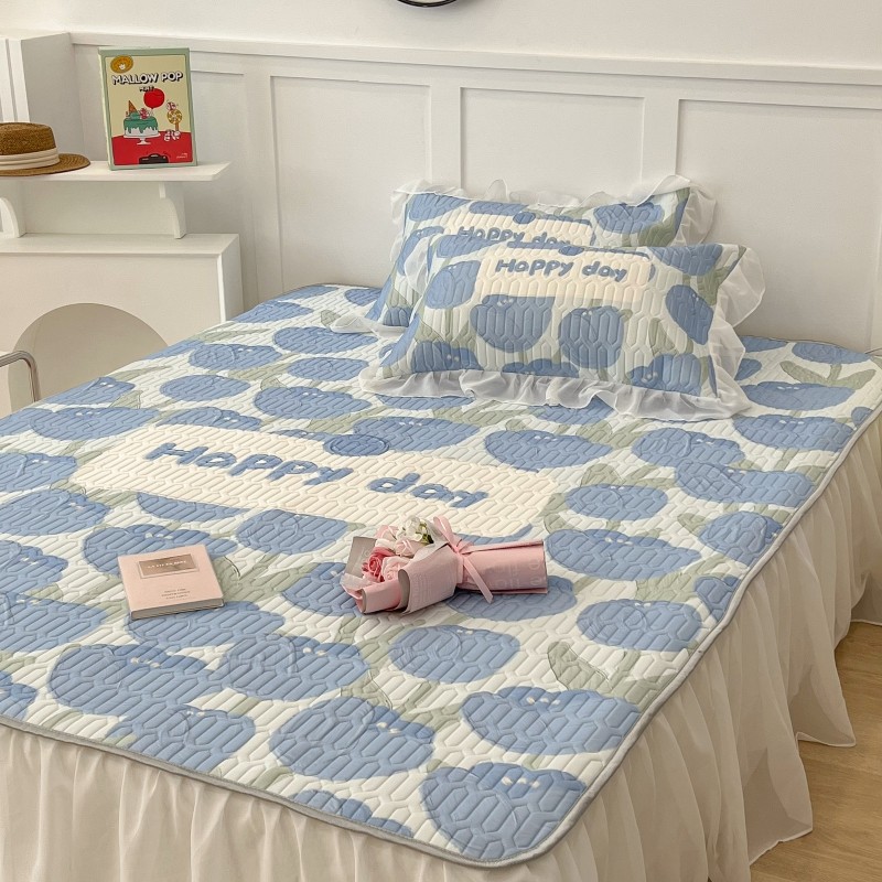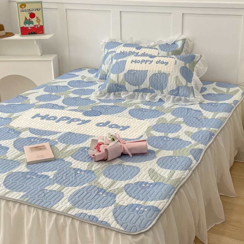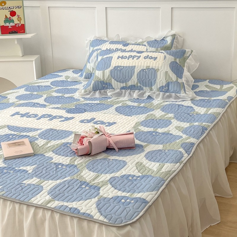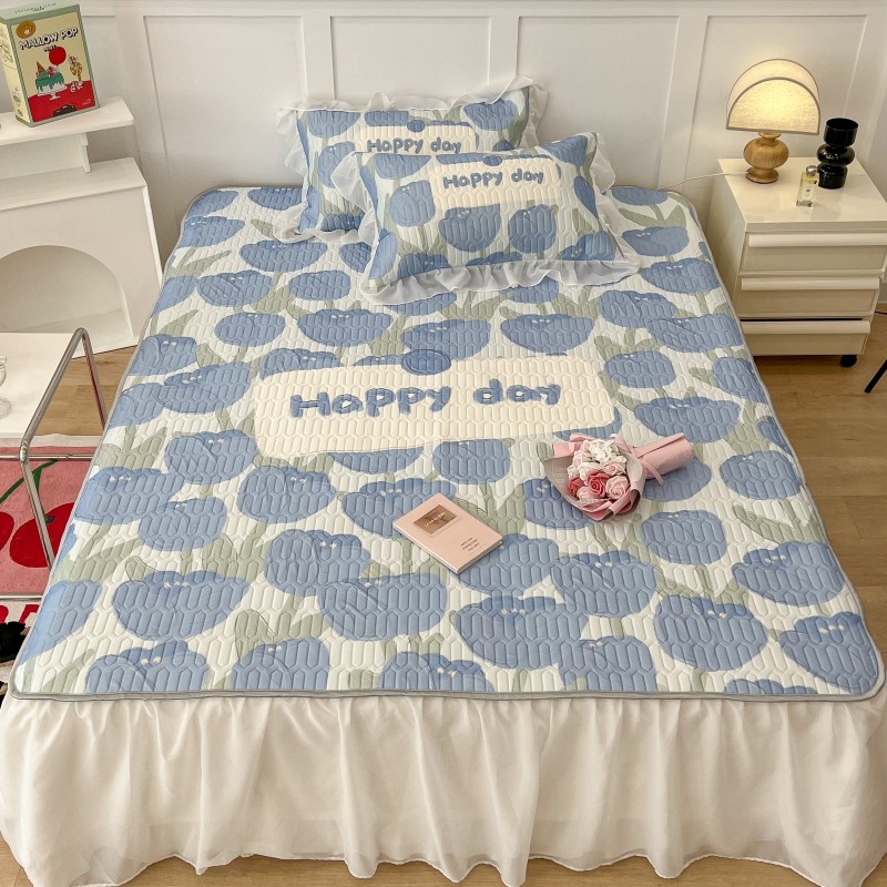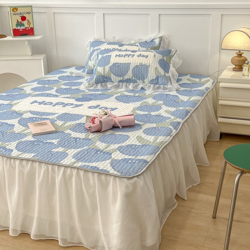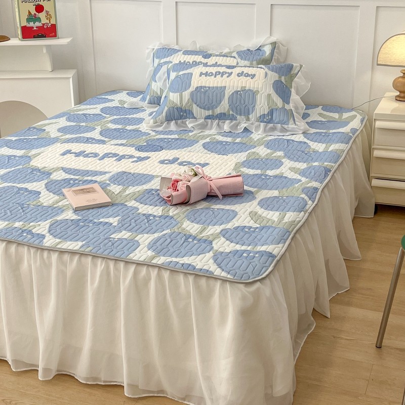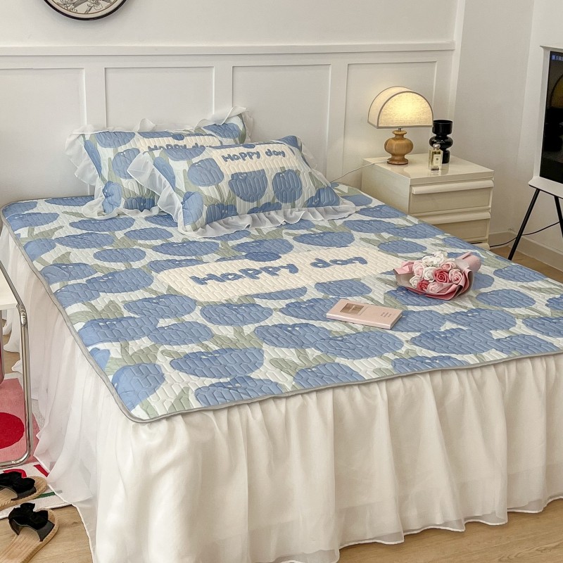 昔可 2022新款ins风小清新床裙款乳胶凉席三件套 床裙款-海德公园