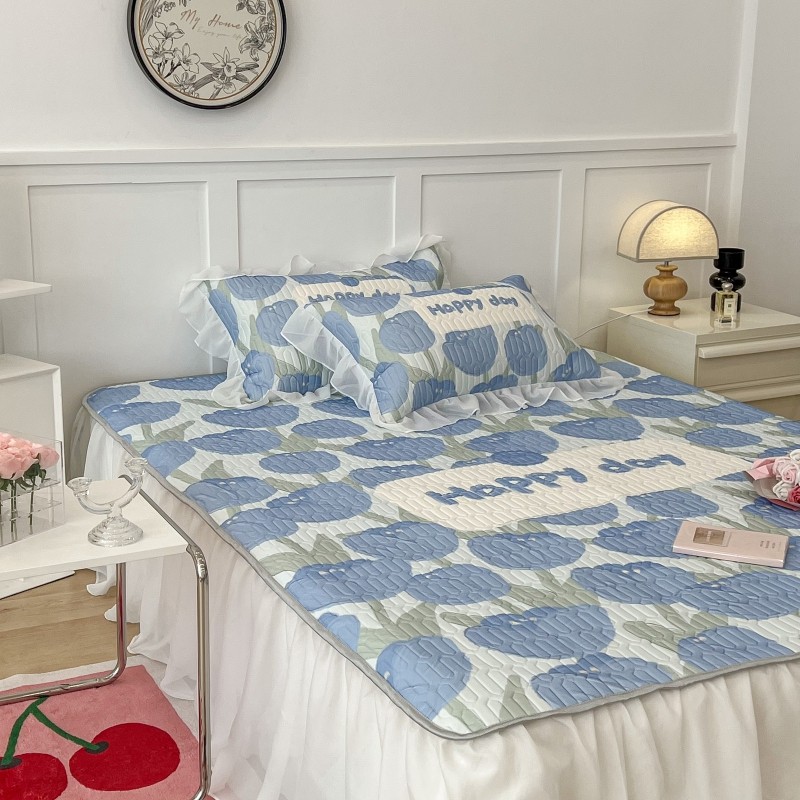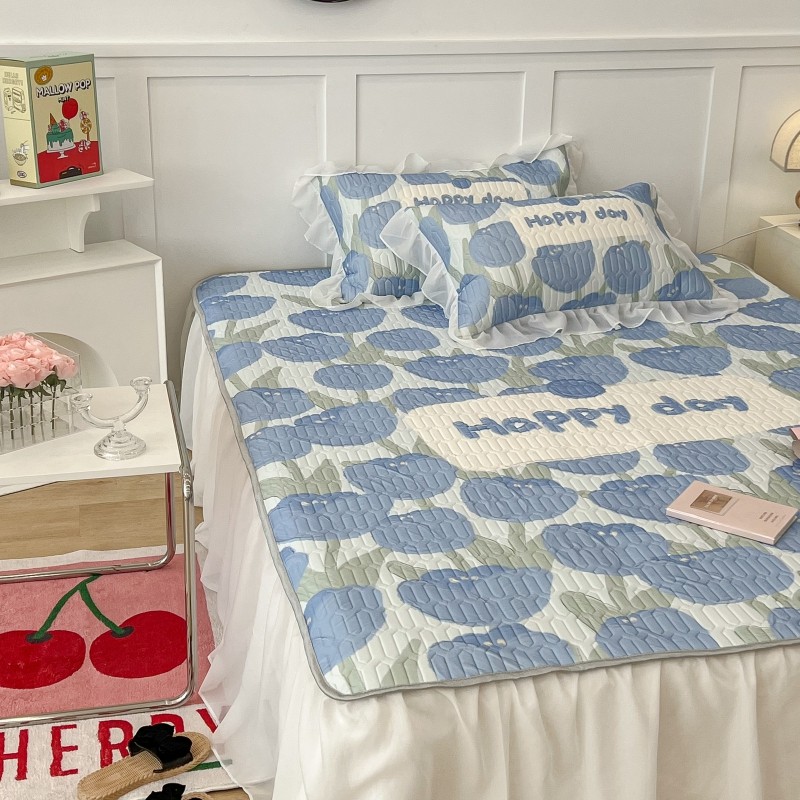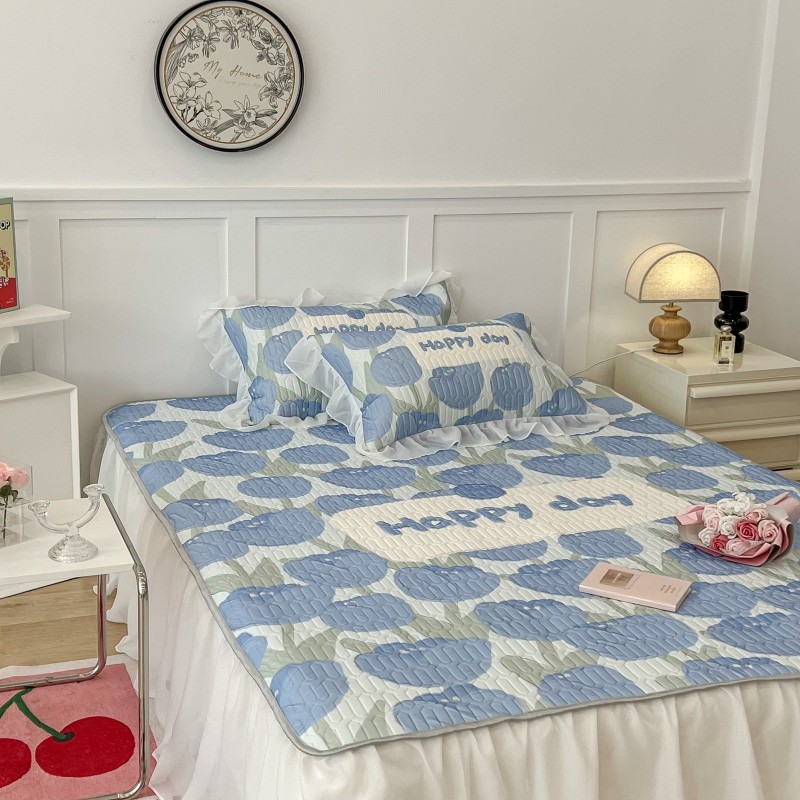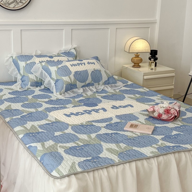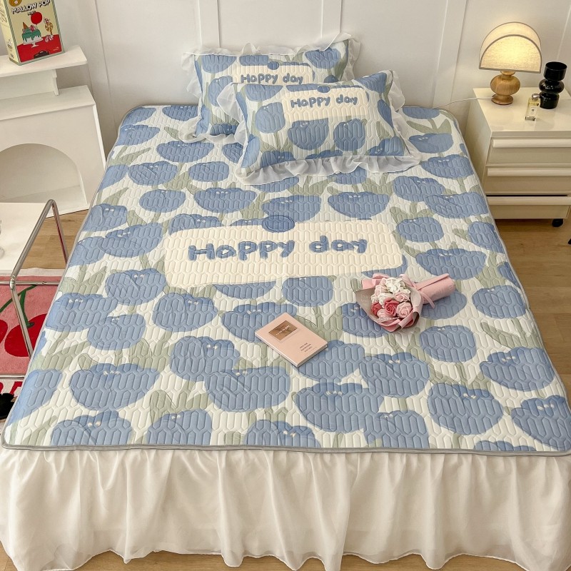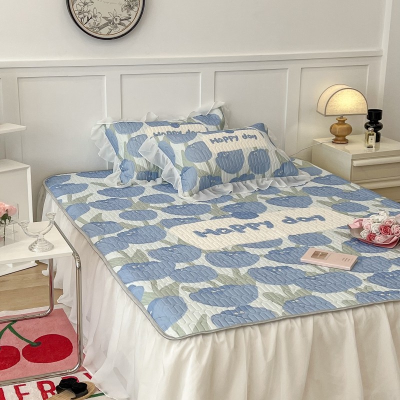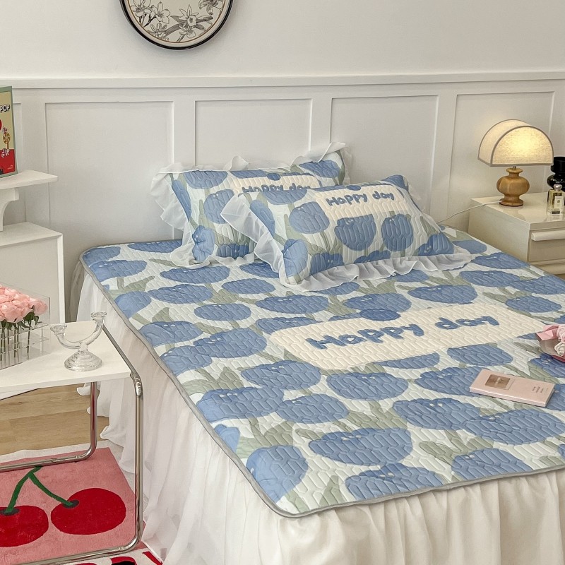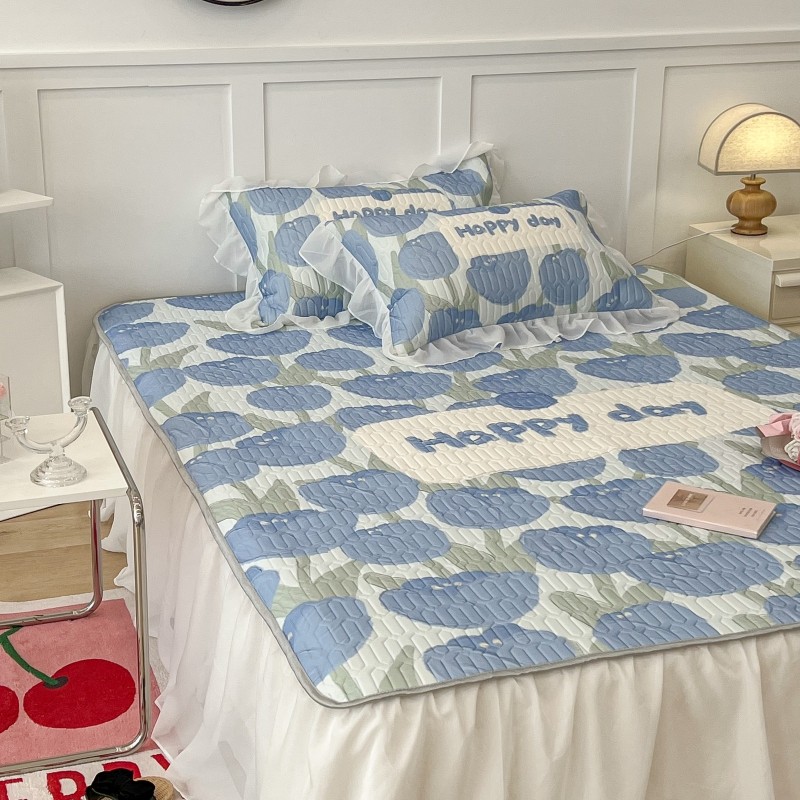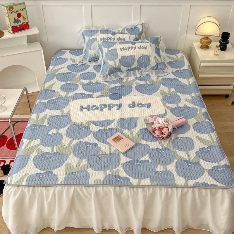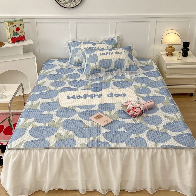昔可 2022新款ins风小清新床裙款乳胶凉席三件套 床裙款-海德公园