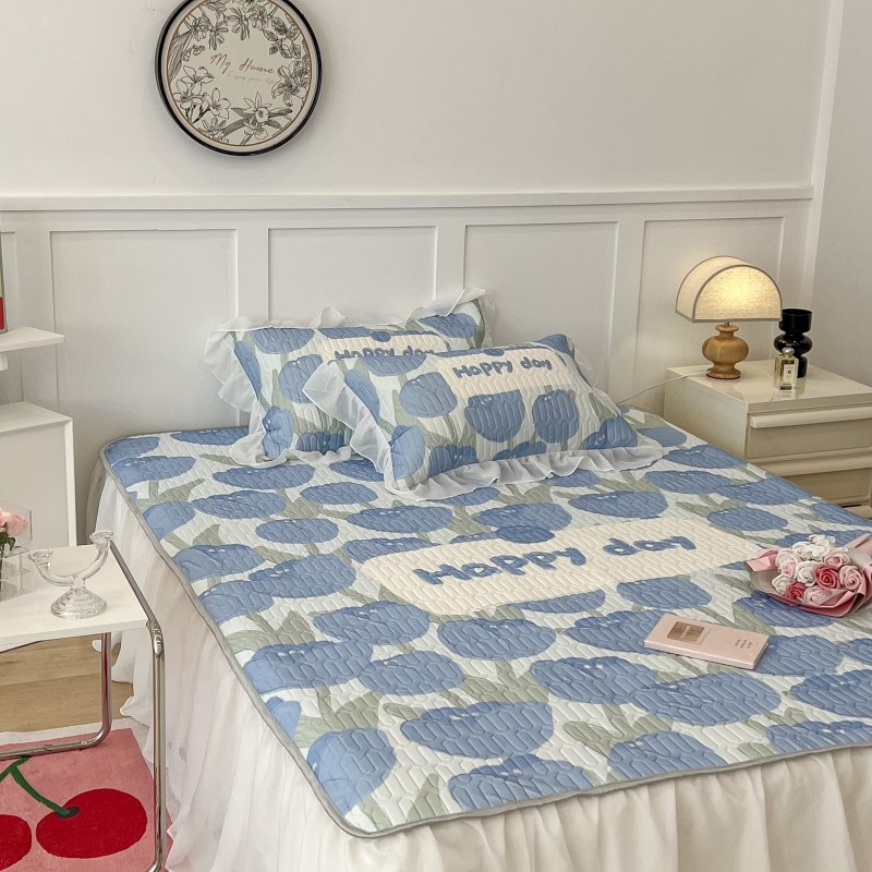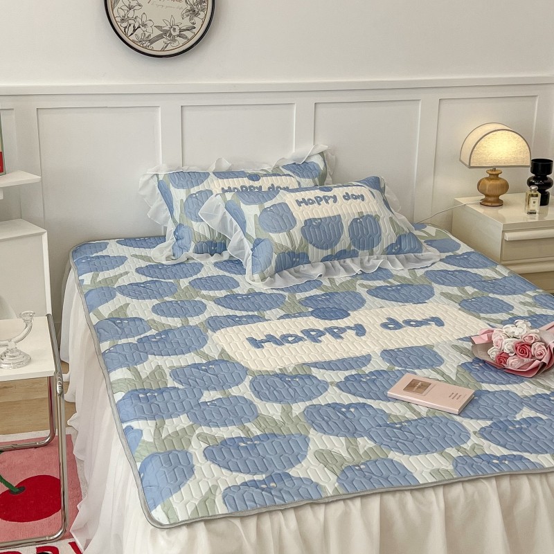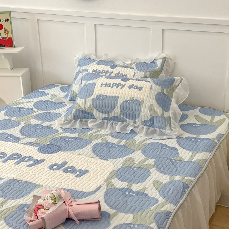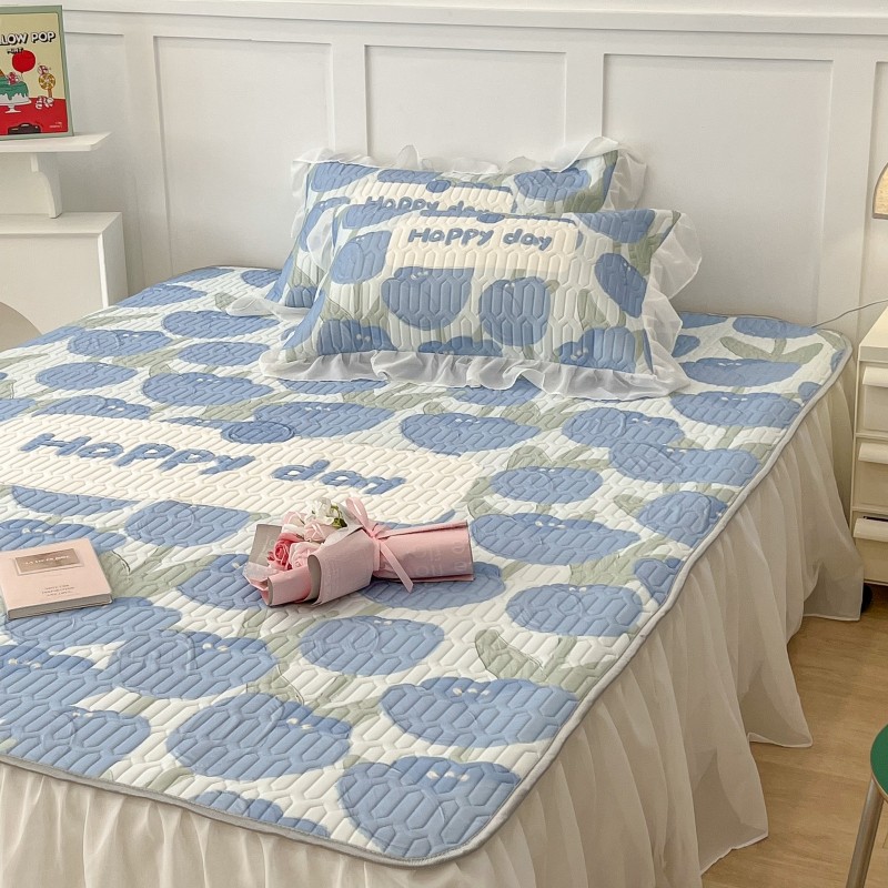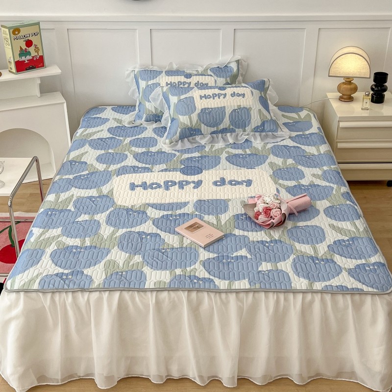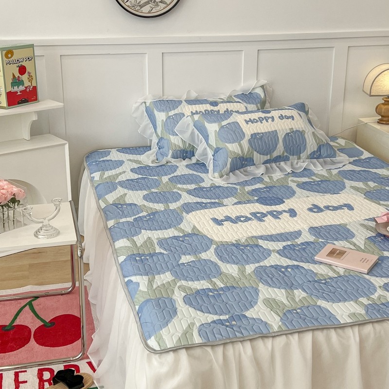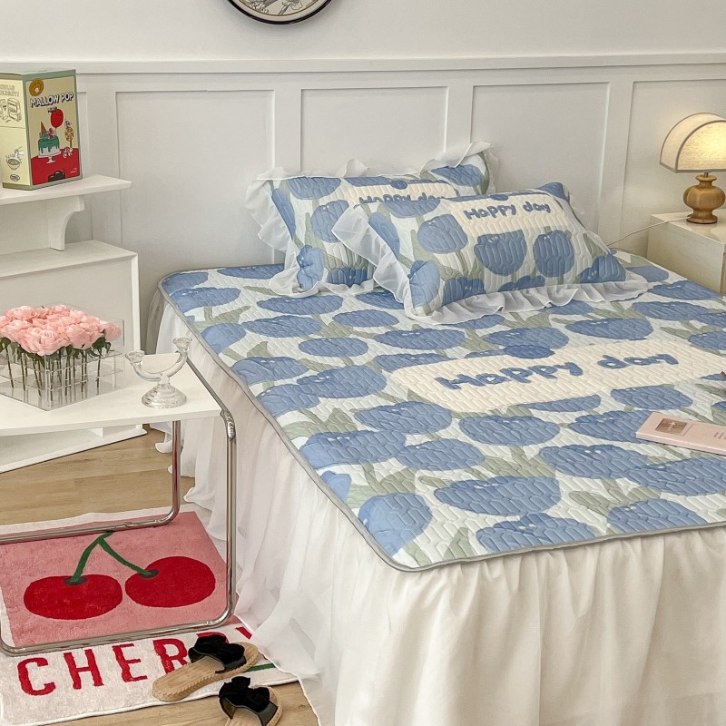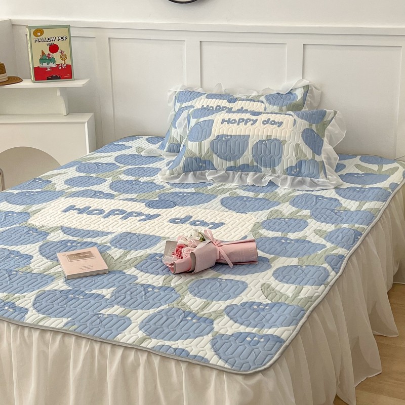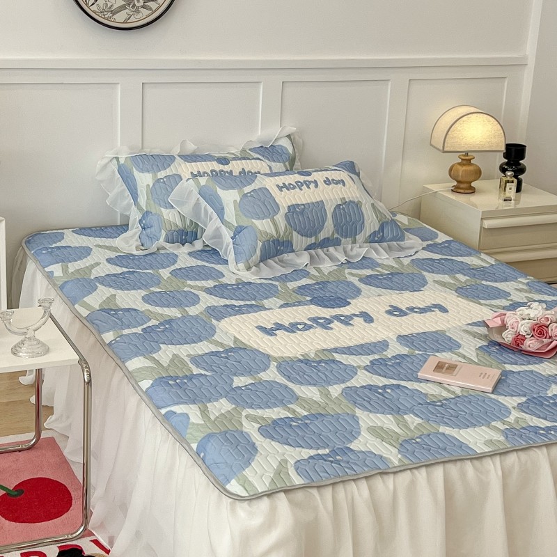 昔可 2022新款ins风小清新床裙款乳胶凉席三件套 床裙款-海德公园