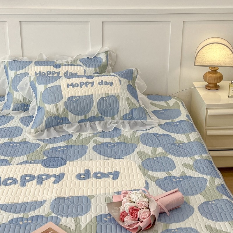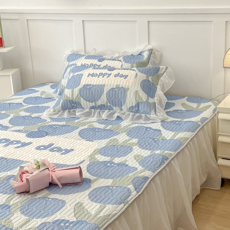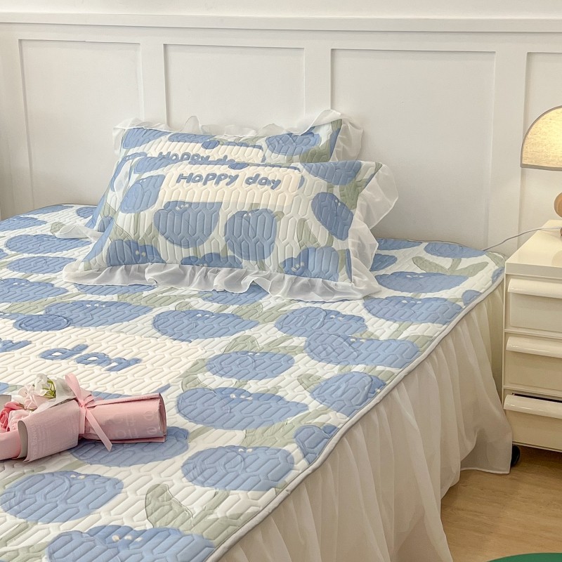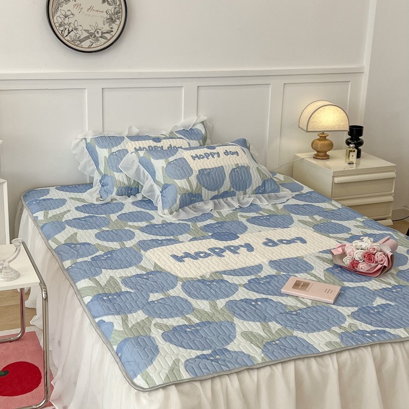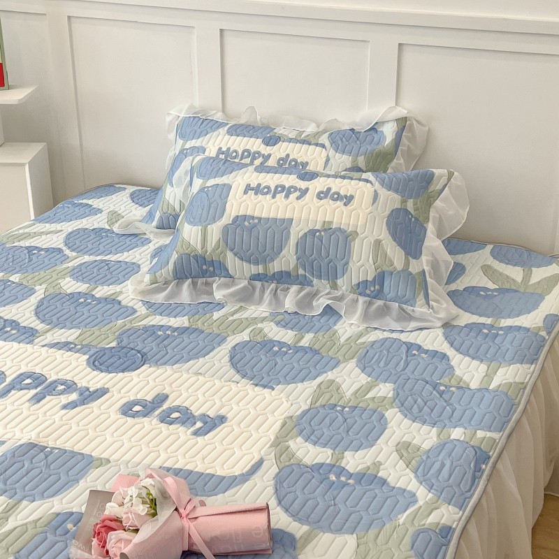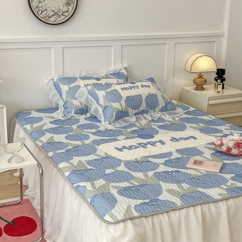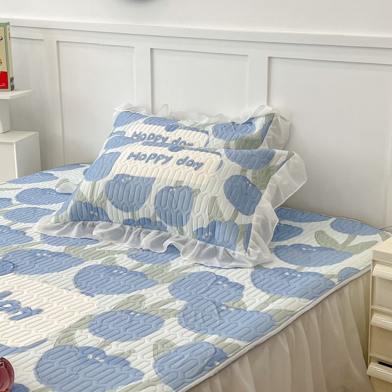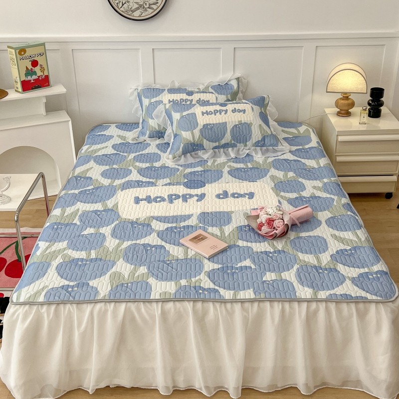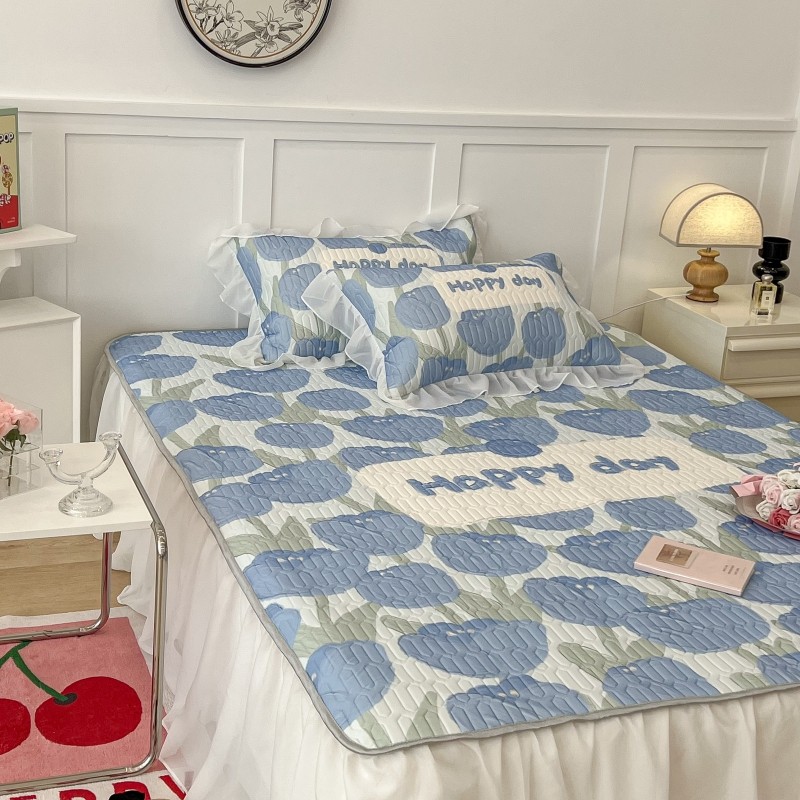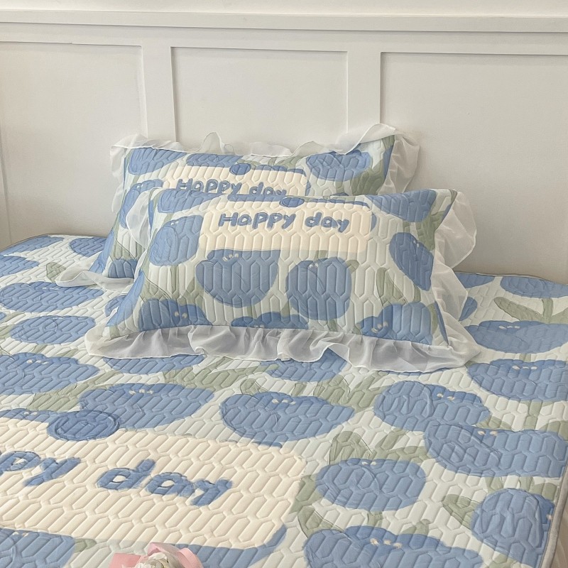 昔可 2022新款ins风小清新床裙款乳胶凉席三件套 床裙款-海德公园