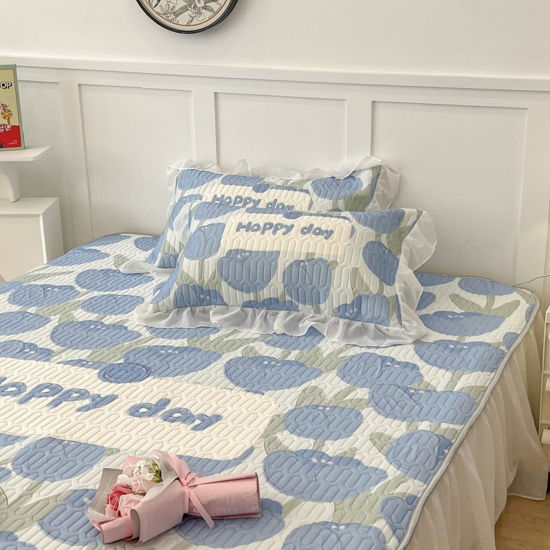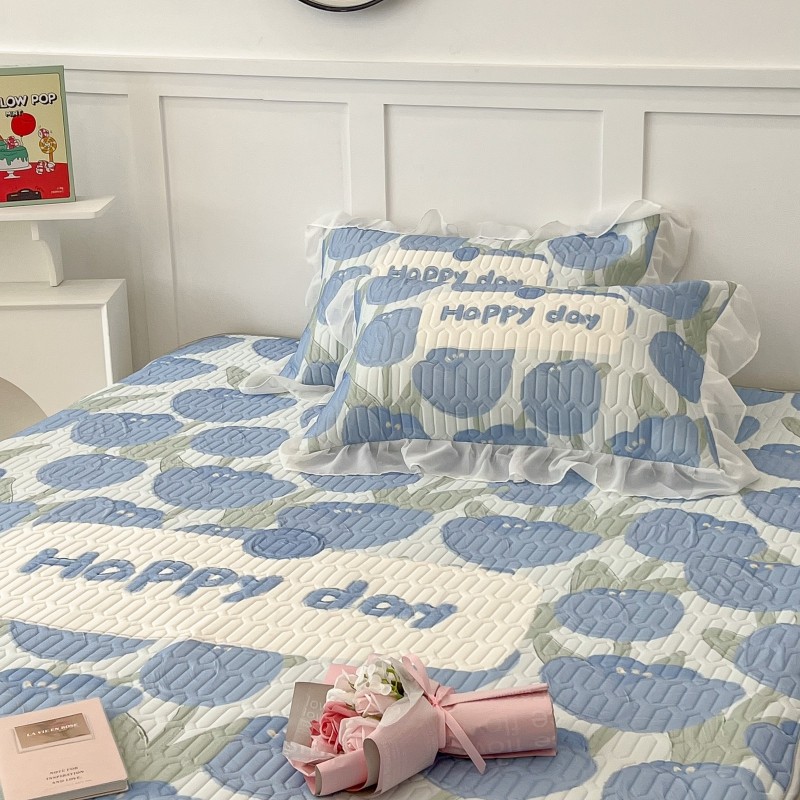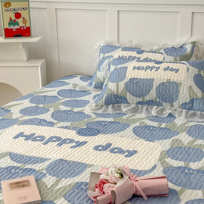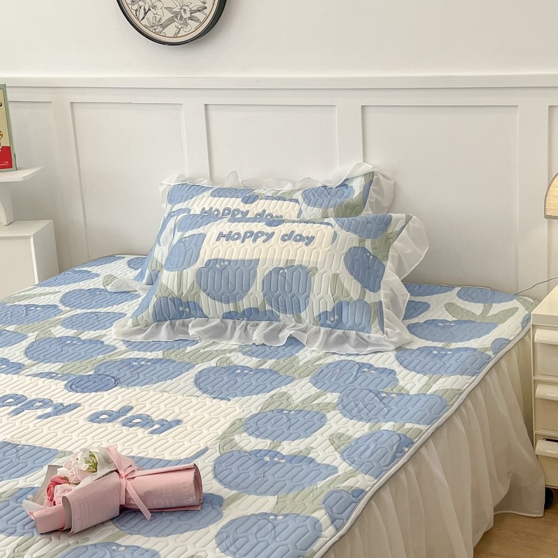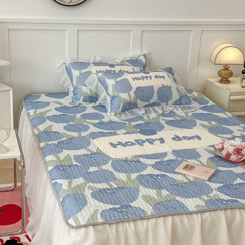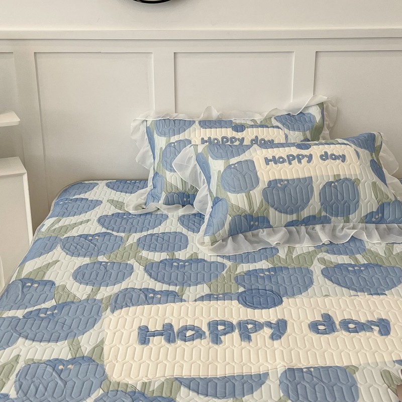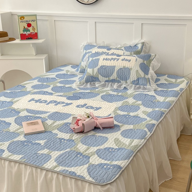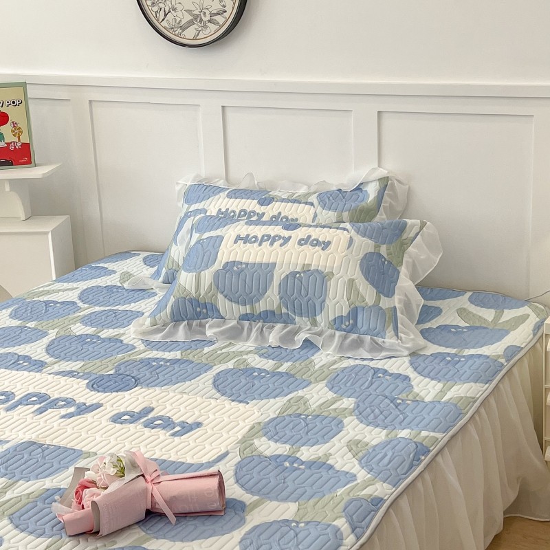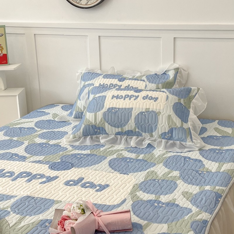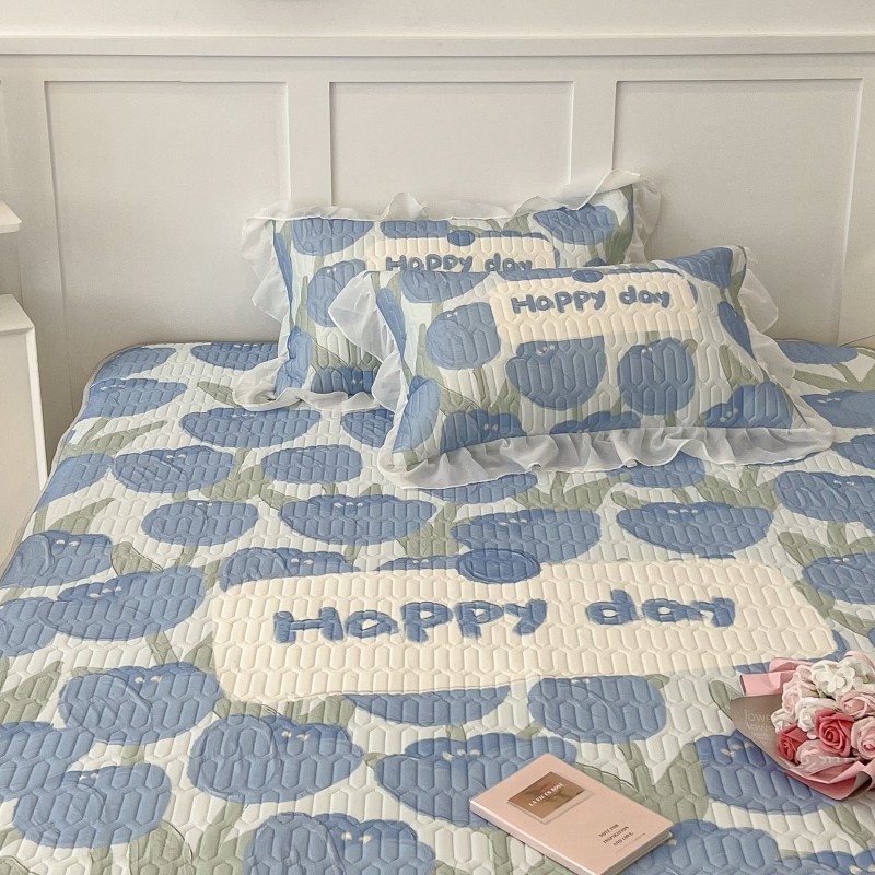 昔可 2022新款ins风小清新床裙款乳胶凉席三件套 床裙款-海德公园