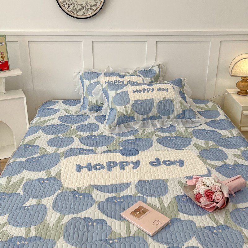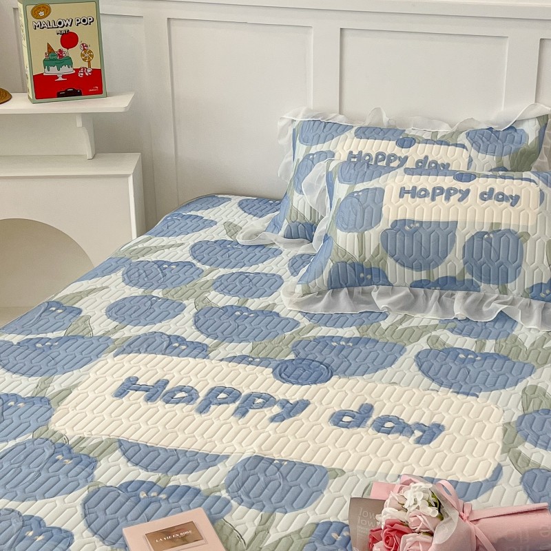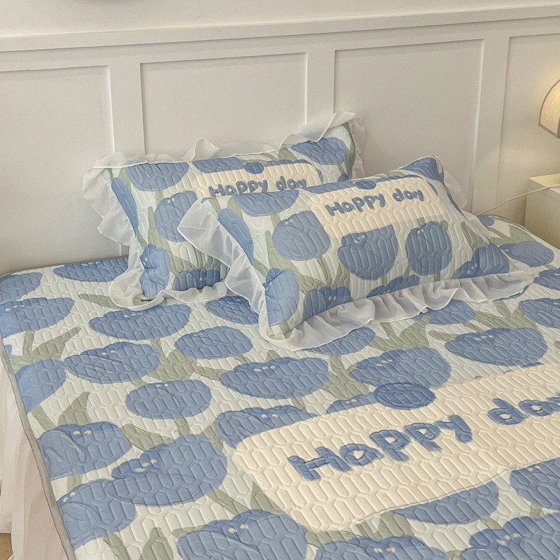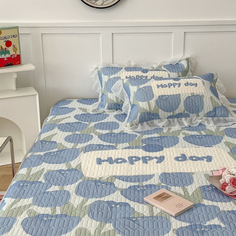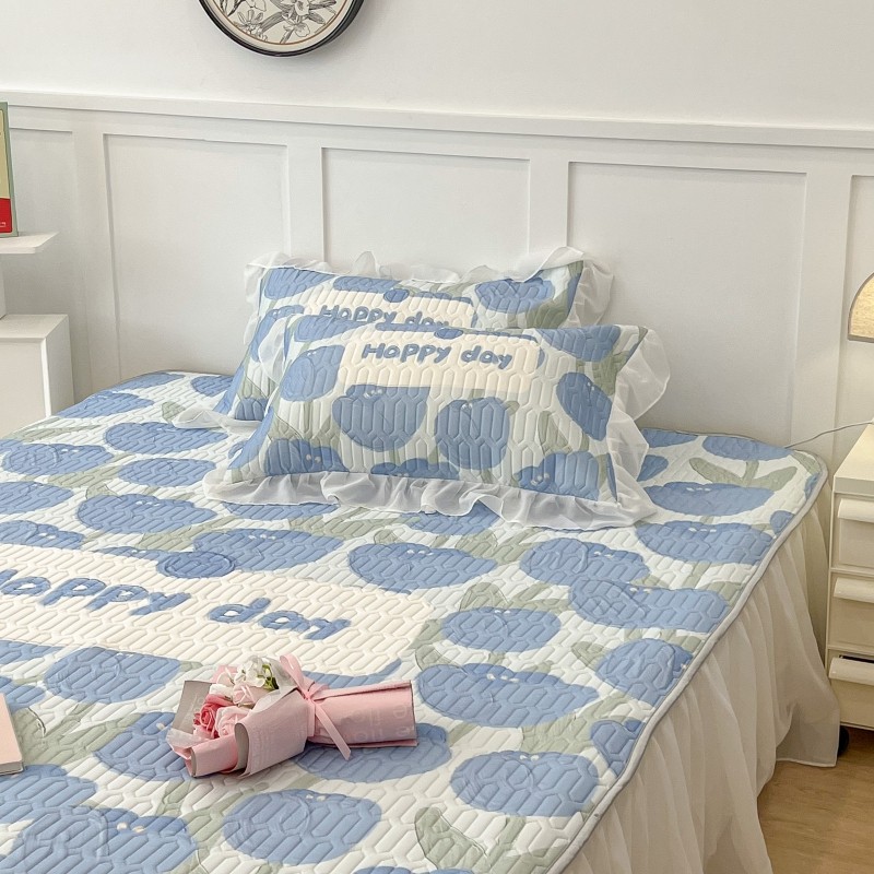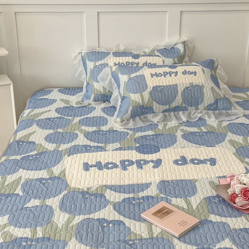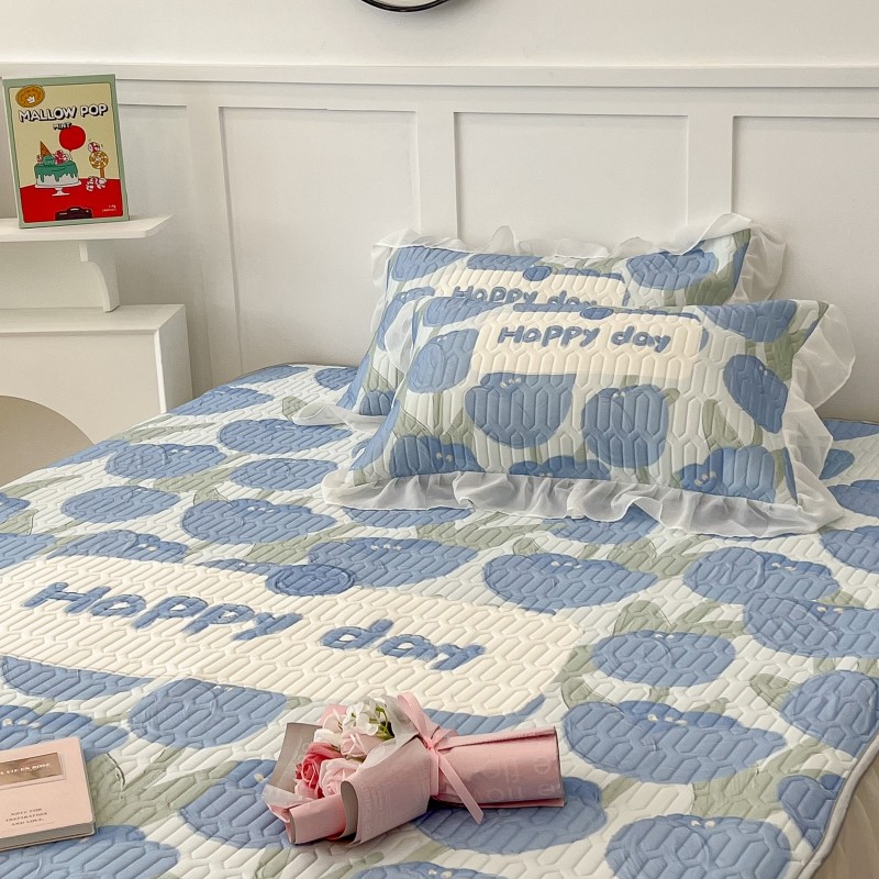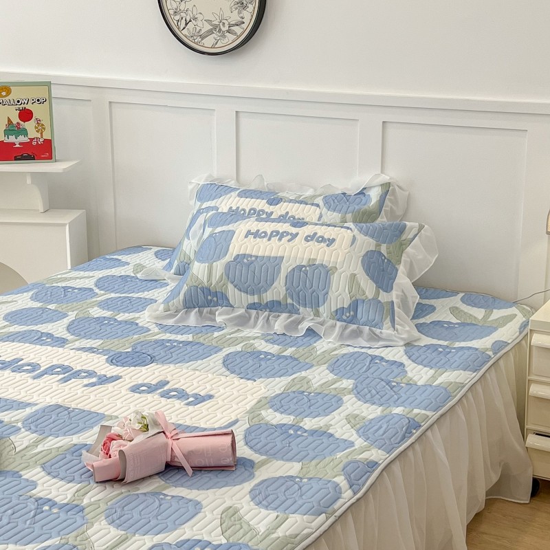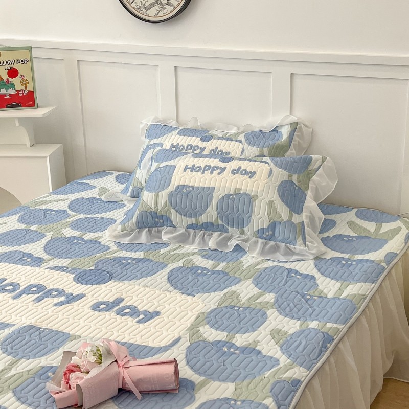 昔可 2022新款ins风小清新床裙款乳胶凉席三件套 床裙款-海德公园