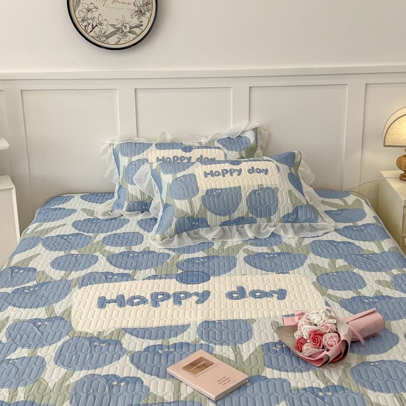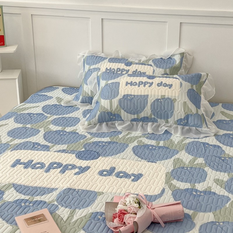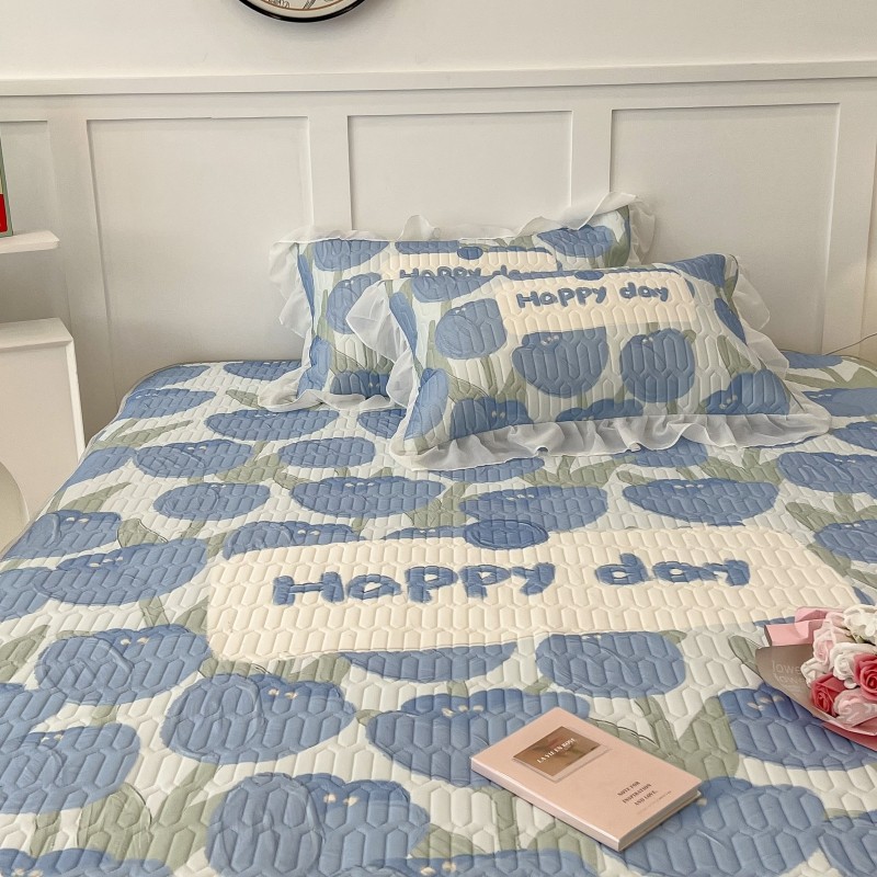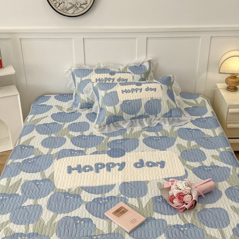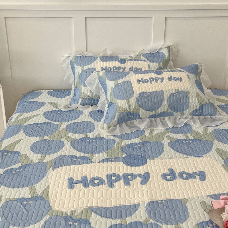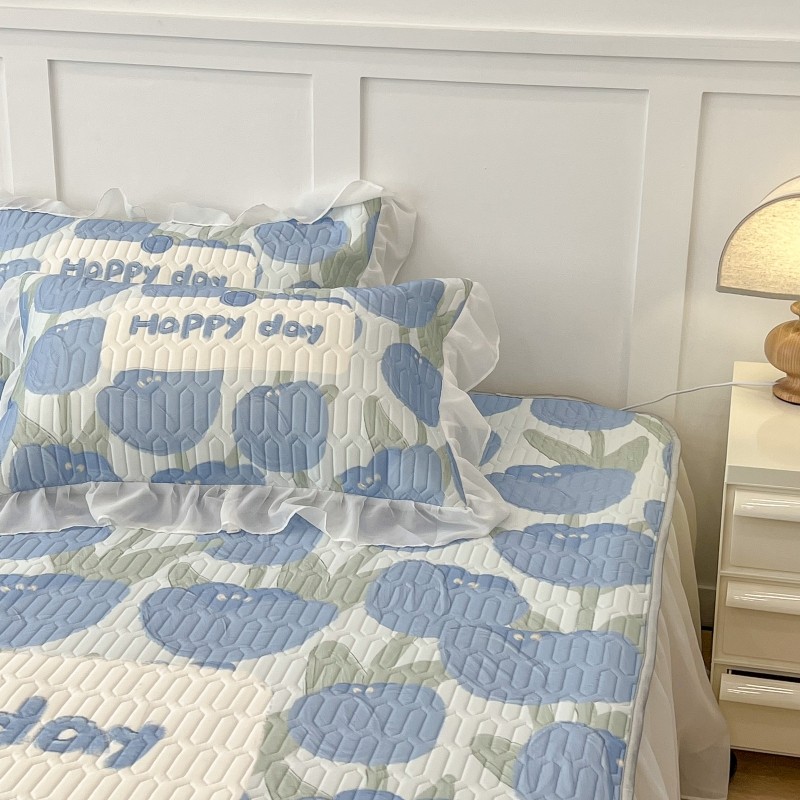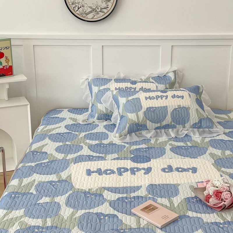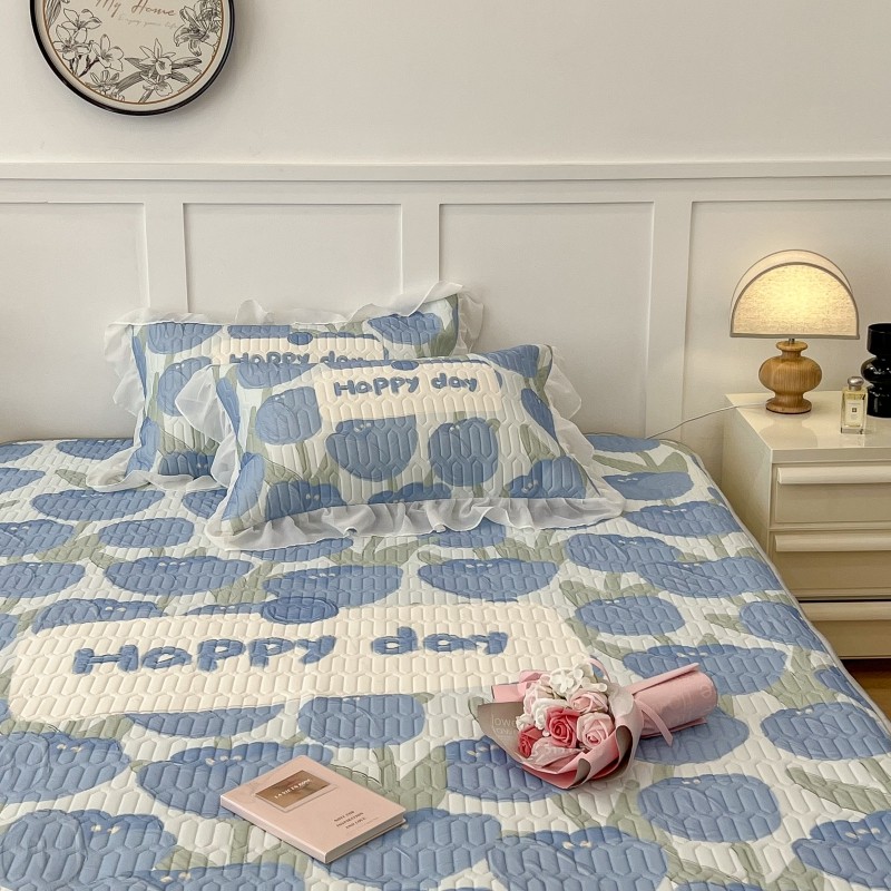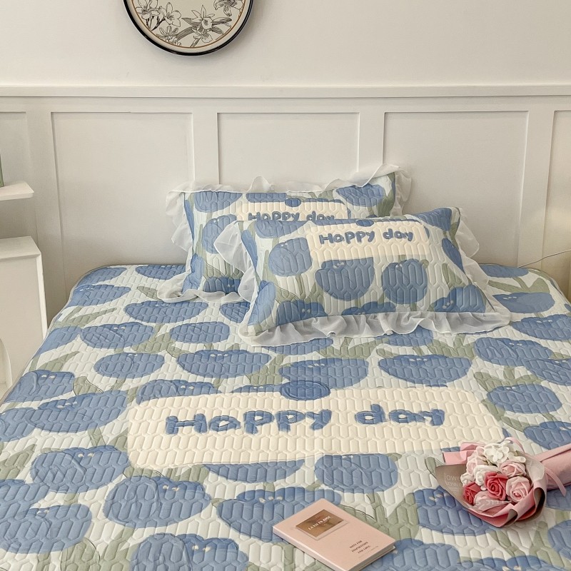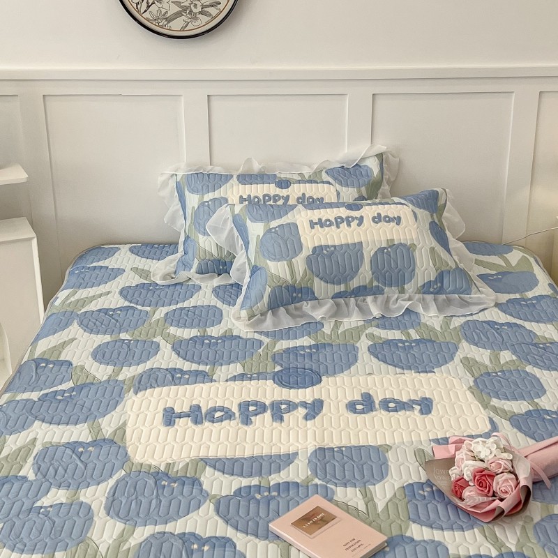 昔可 2022新款ins风小清新床裙款乳胶凉席三件套 床裙款-海德公园