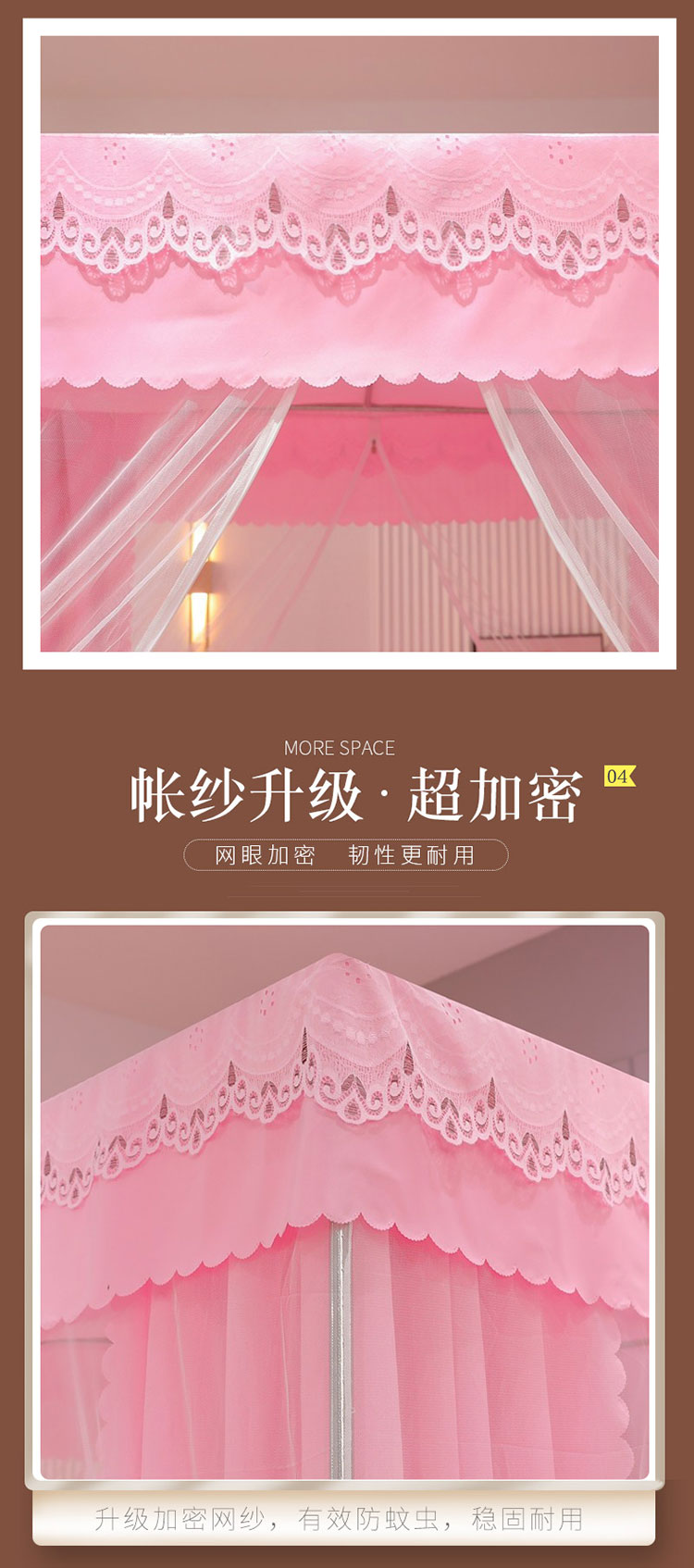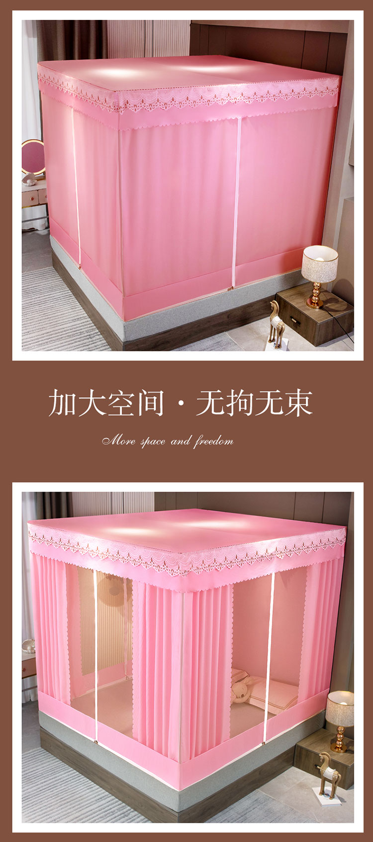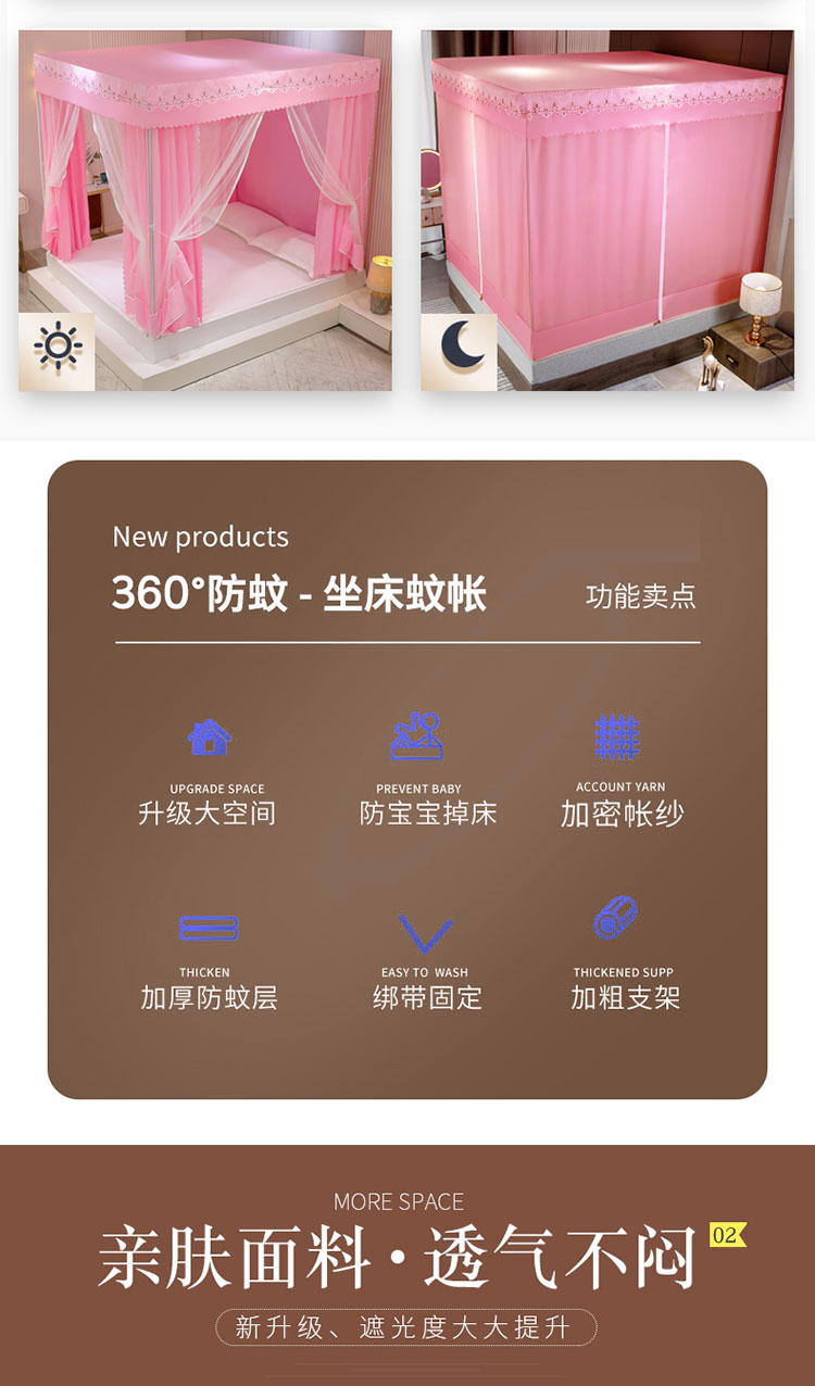 商品名称:千逸虹 2024新款坐床全底纱 遮光蚊帐 胭脂粉