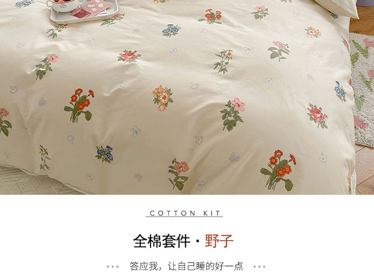 当前位置: 91家纺网 > 商品网购 > 床品套件 > 四件套 > 全棉普通四件套 > 麦伦 2022新款全棉40支13372纯棉斜纹田园碎花四件套 野子