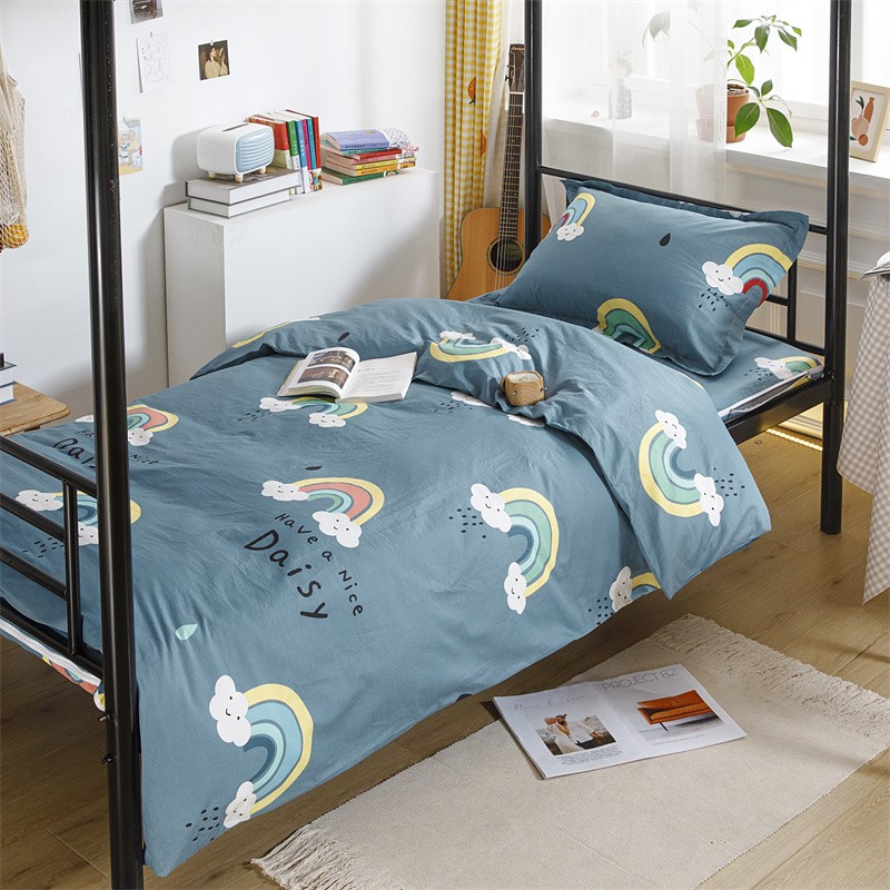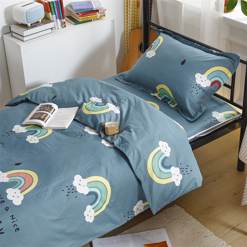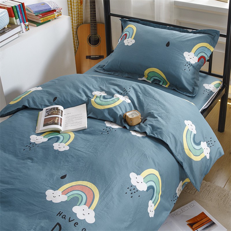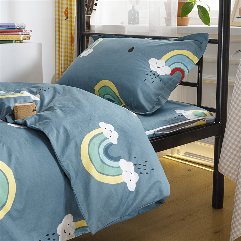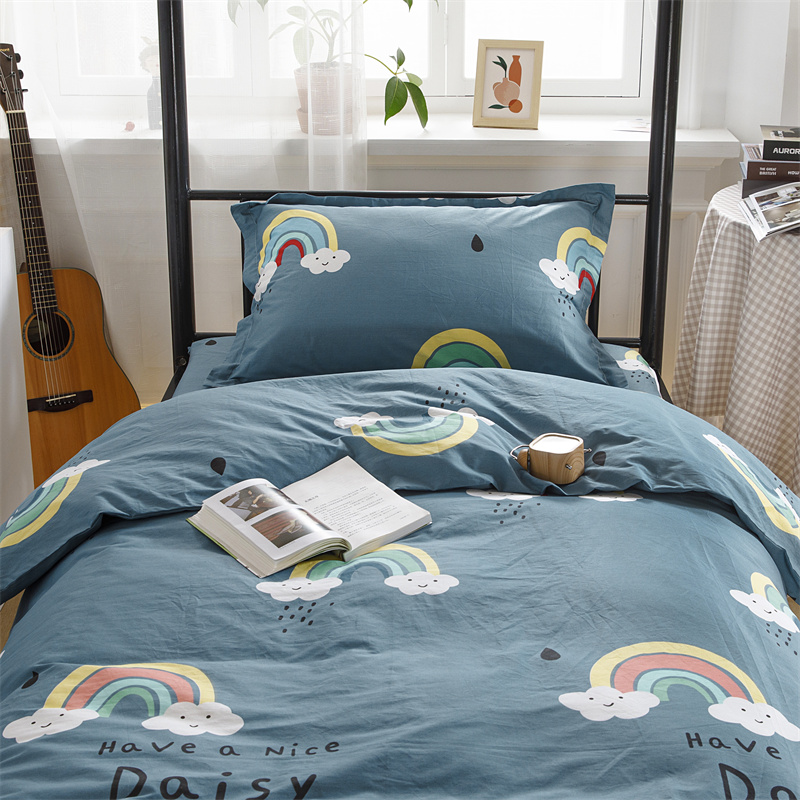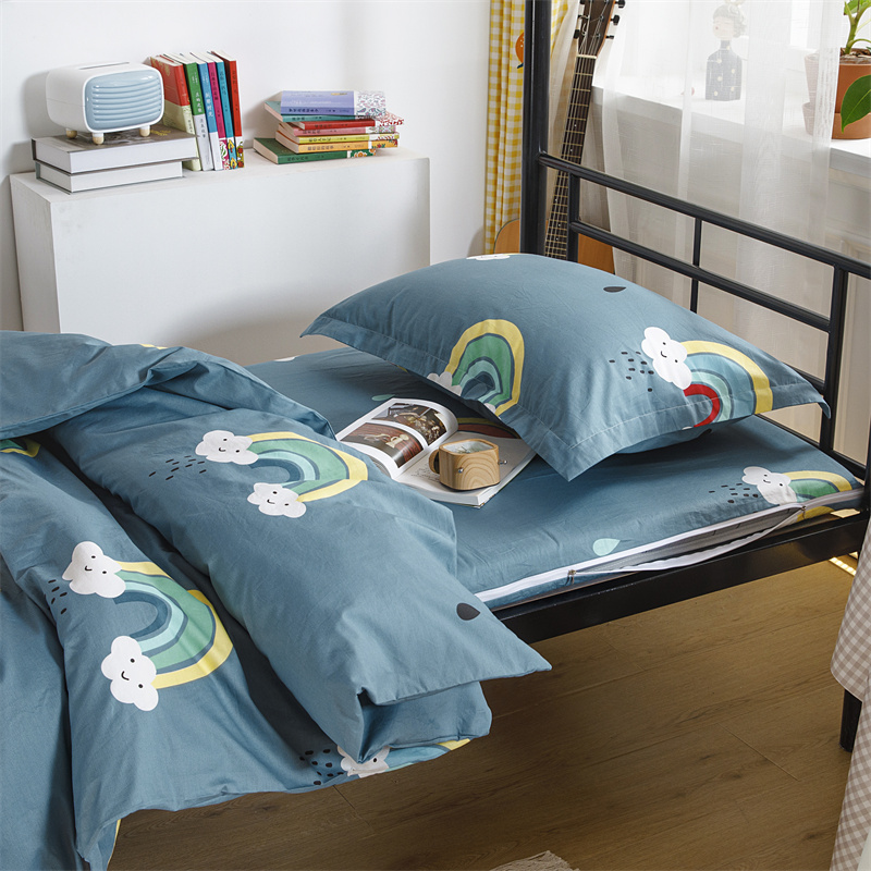 当前位置: 91家纺网 > 商品网购 > 床品套件 > 三件套 > 凌云家纺 2025新款全棉学生全包床笠三件套 雨后彩虹蓝