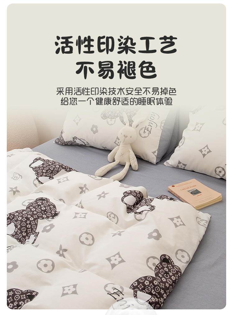 黑马家居2023新款全棉印花喷气12868套件-单被套 蜜桔兔,蜜桔兔