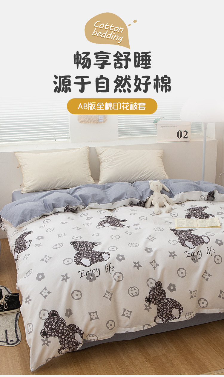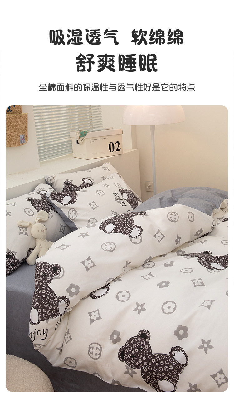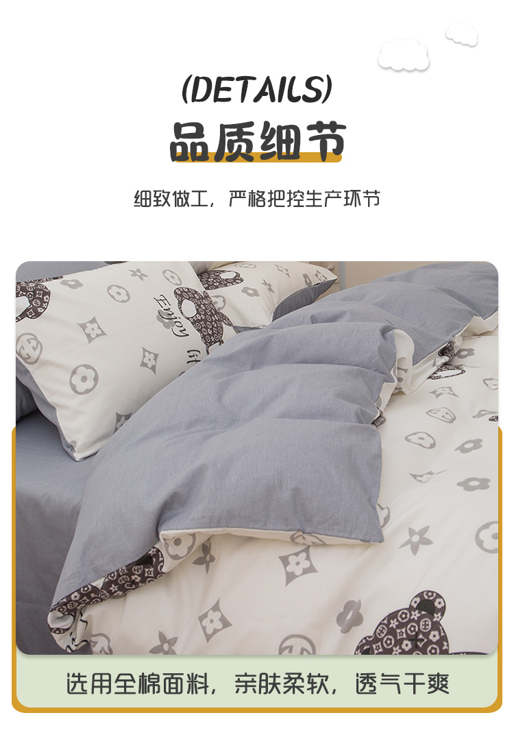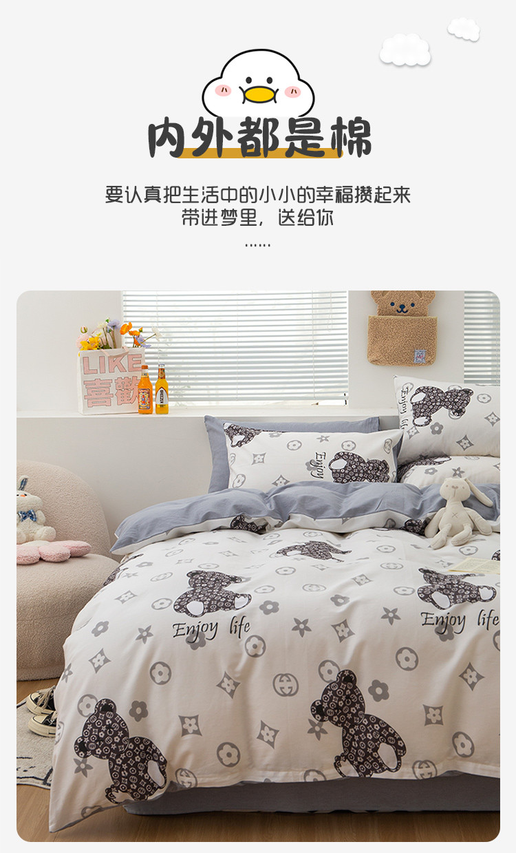 (总)黑马家居 2023新款喷气全棉斜纹四件套,爱意绵绵,贝尔熊,春意,六叶草,梦游仙境,蜜桔兔,七色花语,油画小兔,月桂幽香