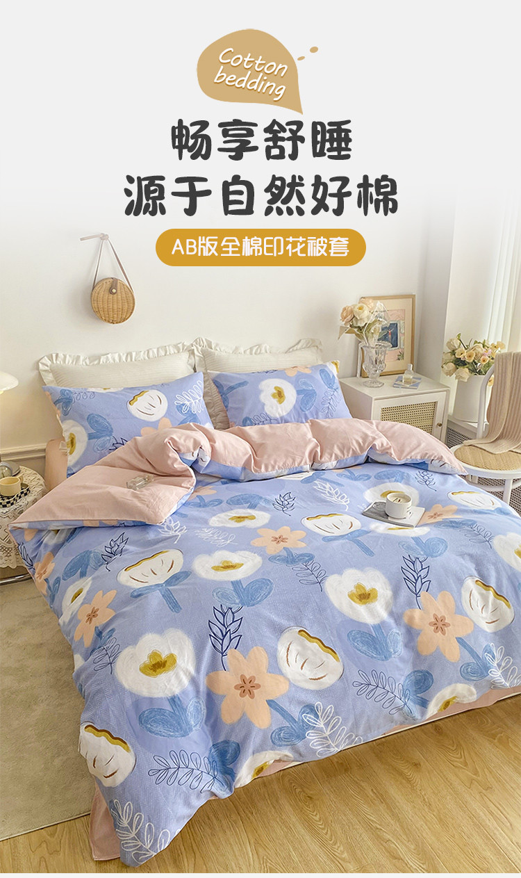 黑马家居2024新款全棉印花喷气12868套件-单被套 悠兰,悠兰