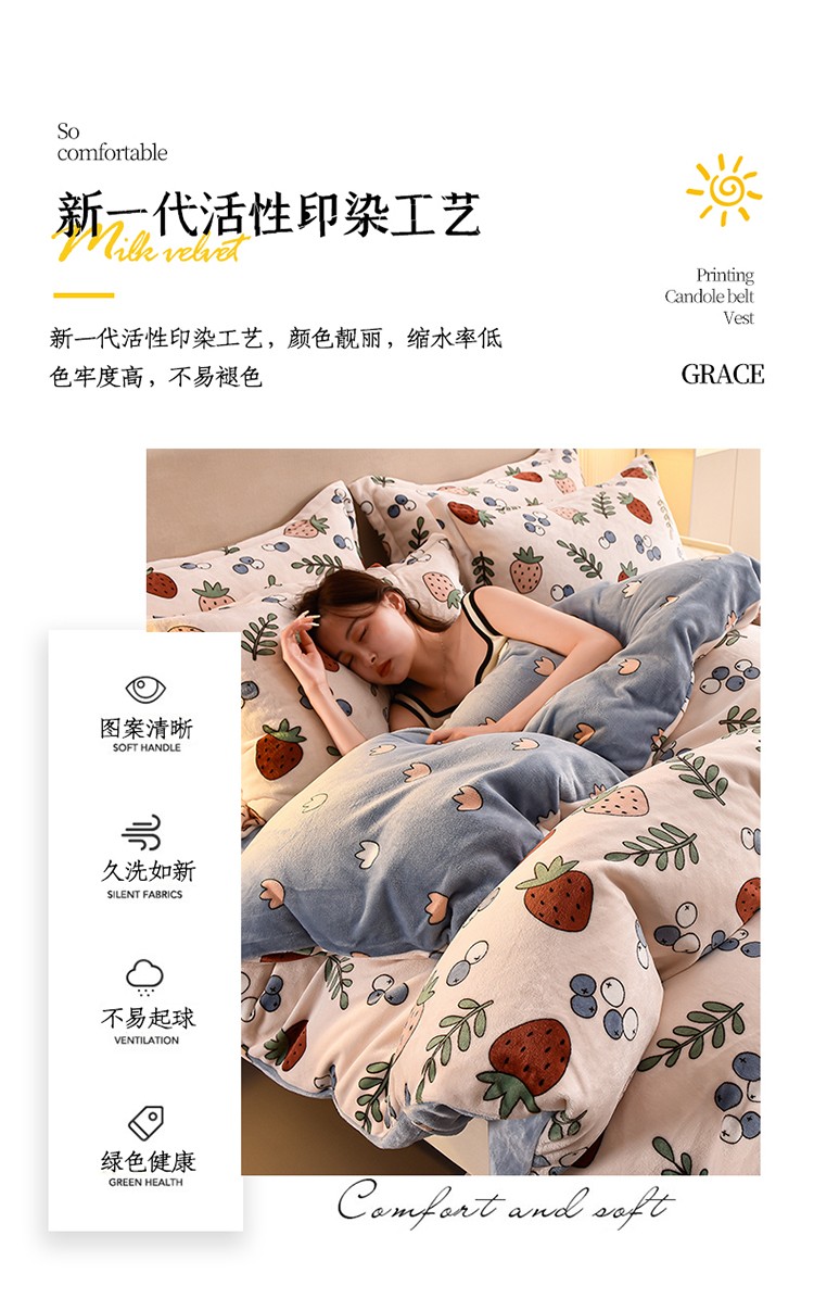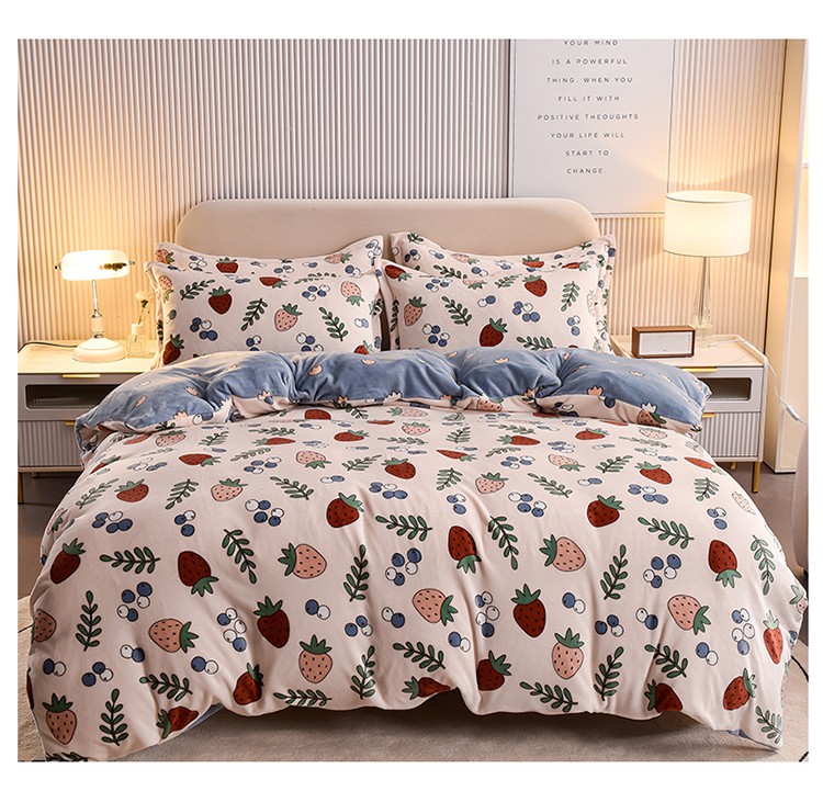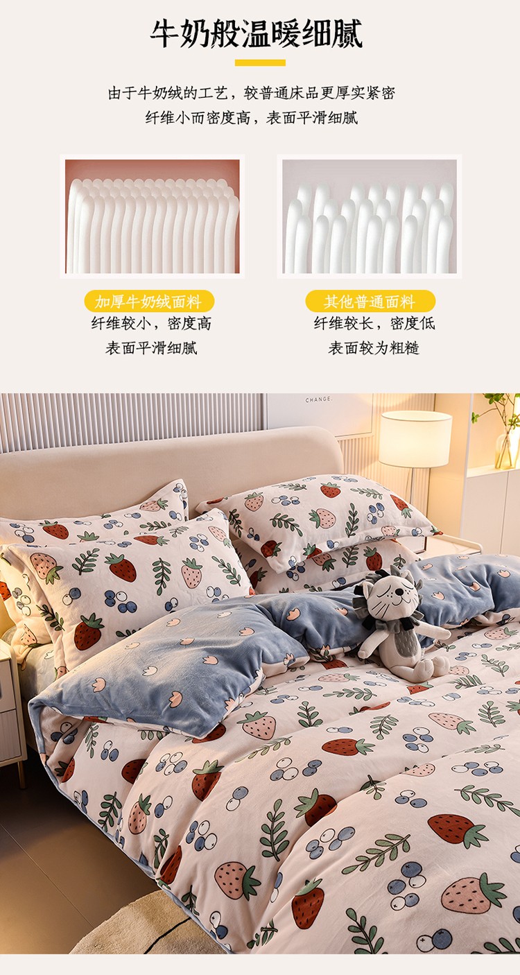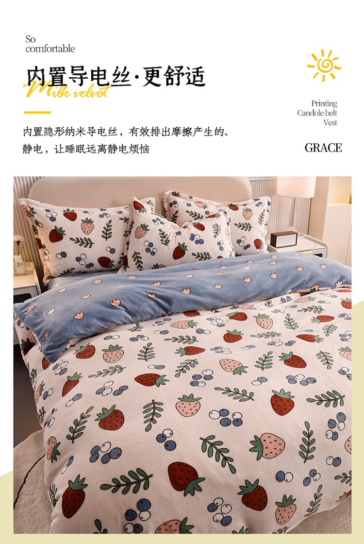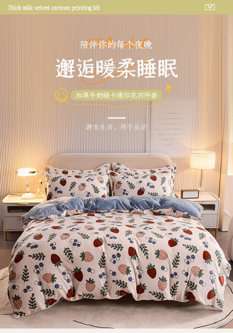 商品名称:同田 2023新款牛奶金貂绒四件套印花保暖法莱水晶绒 草莓树