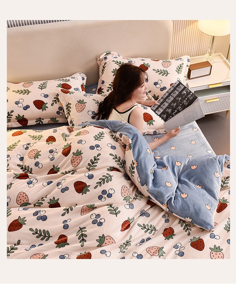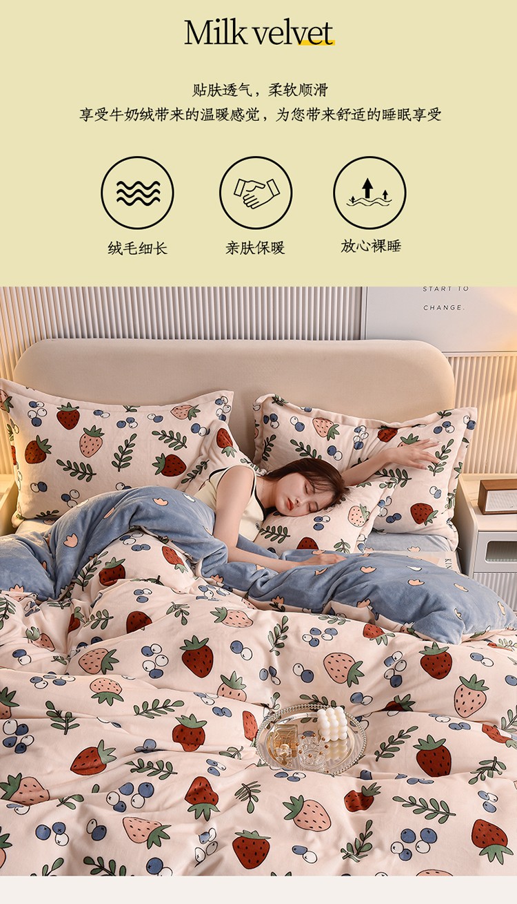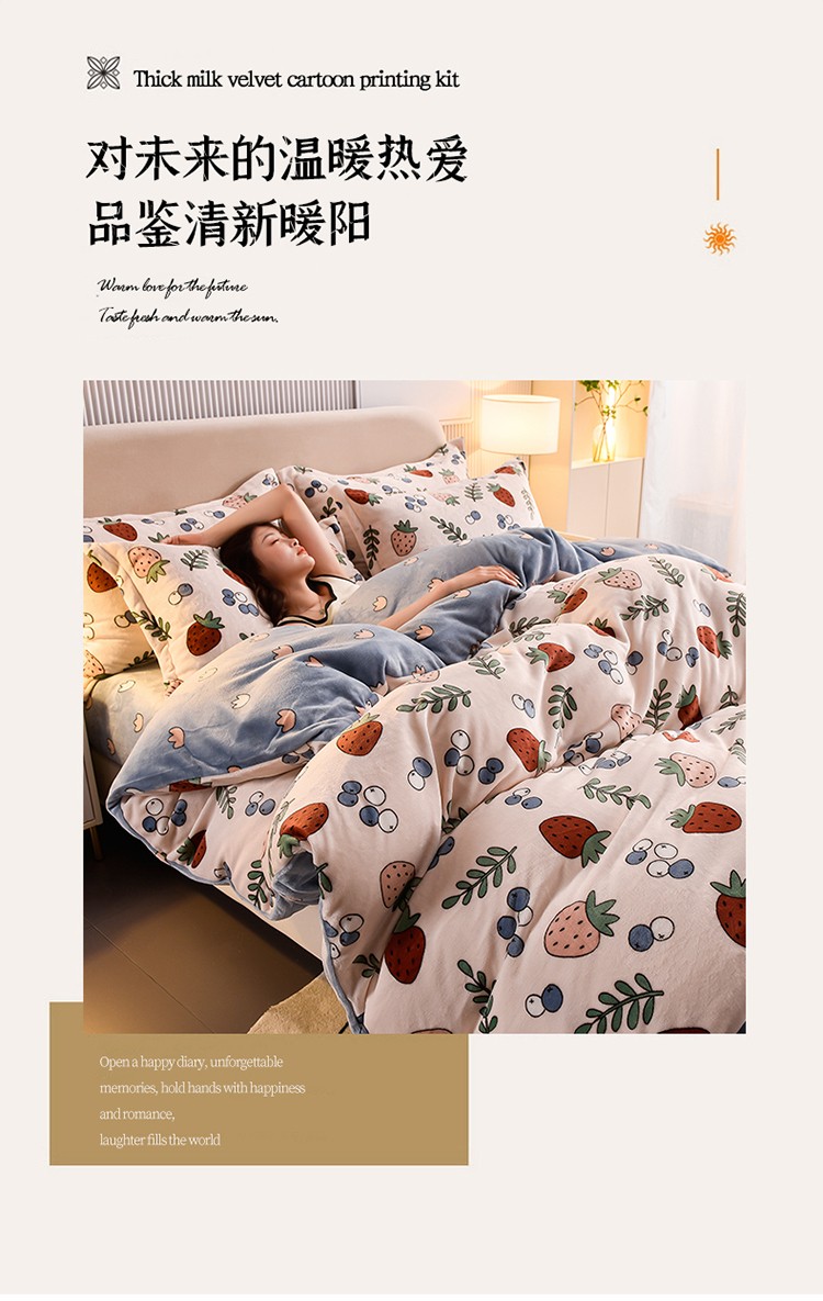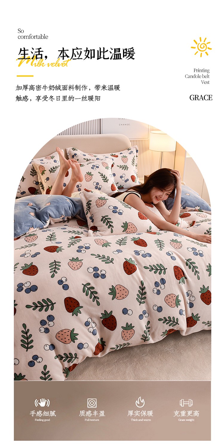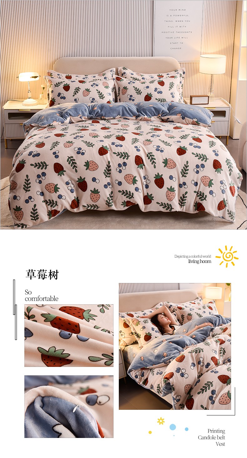 同田 2023新款牛奶金貂绒四件套印花保暖法莱水晶绒 草莓树