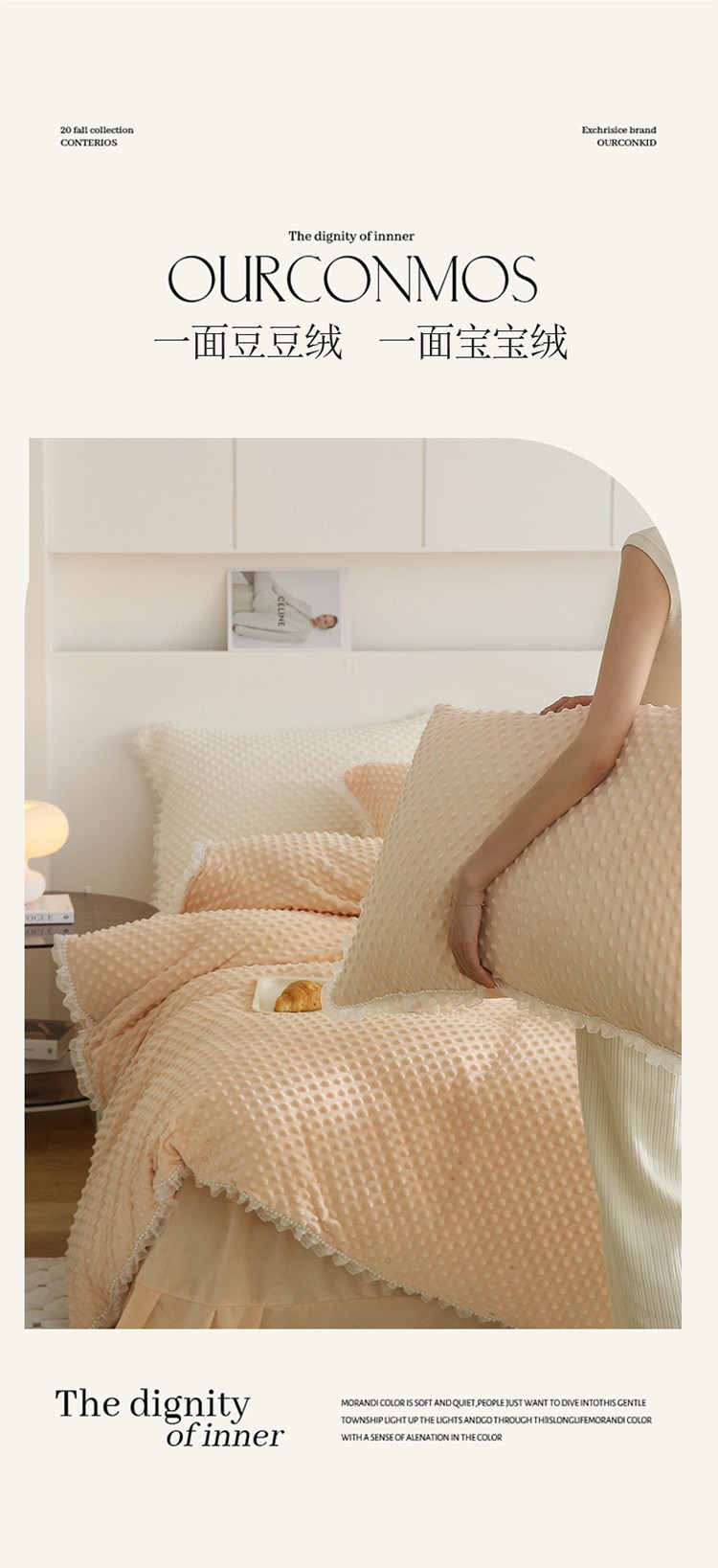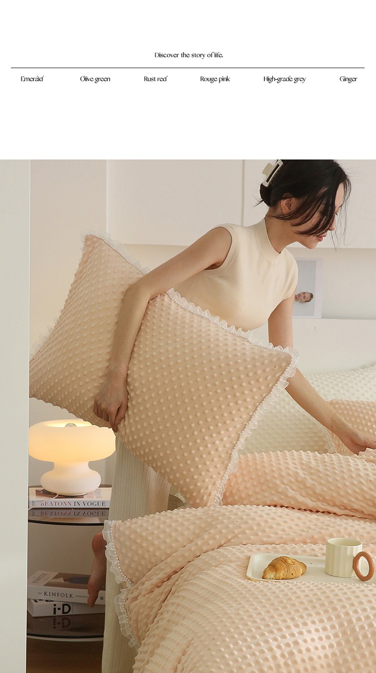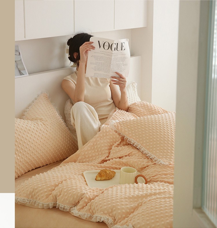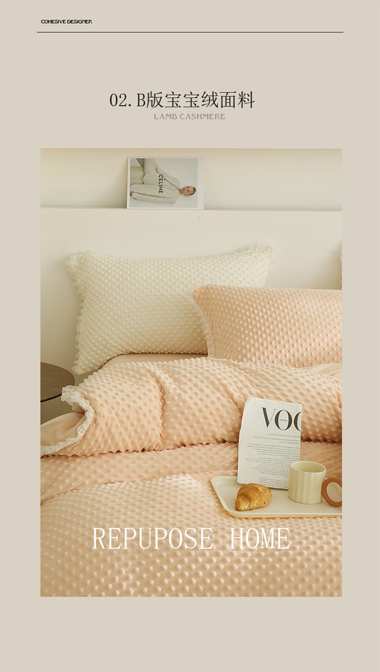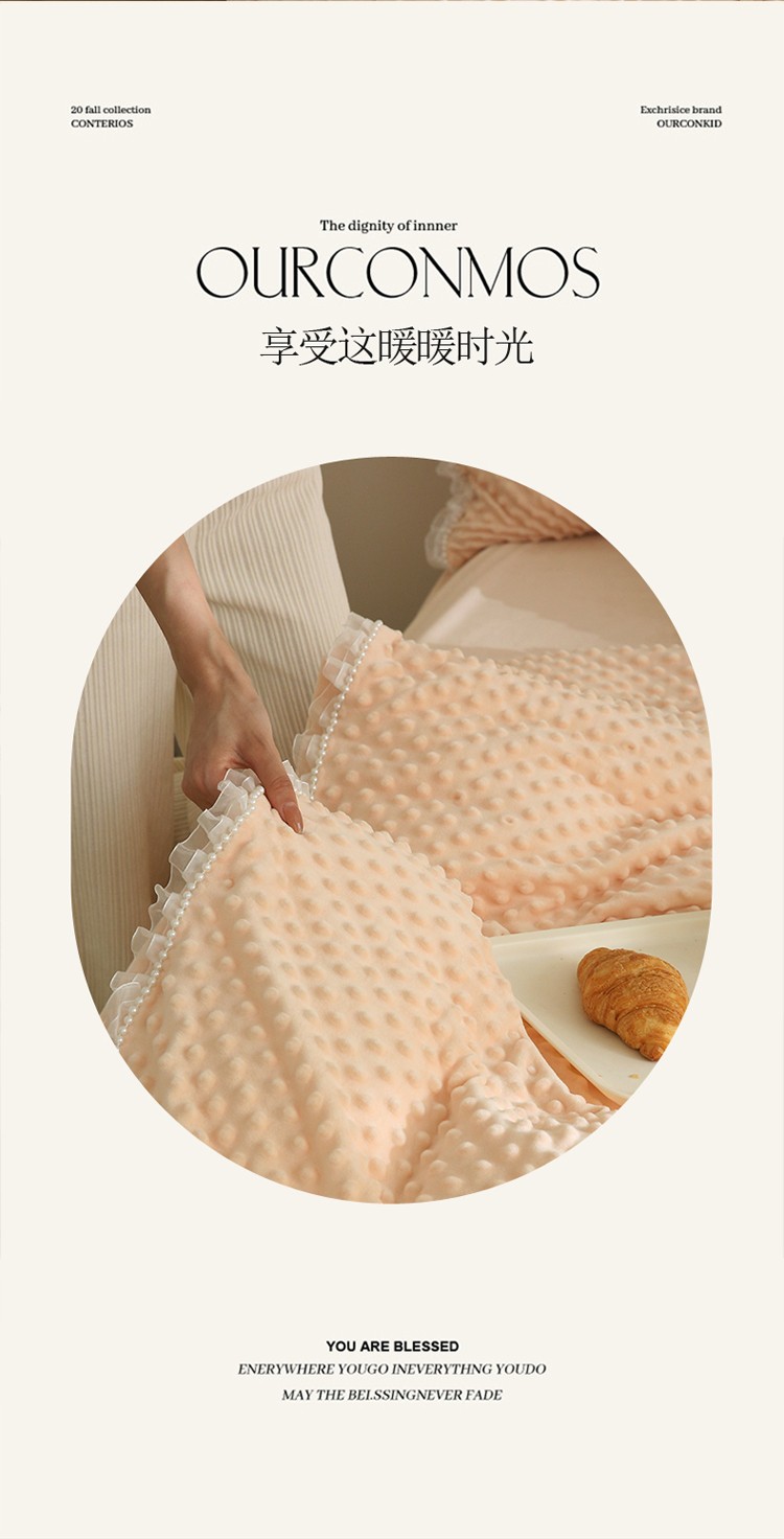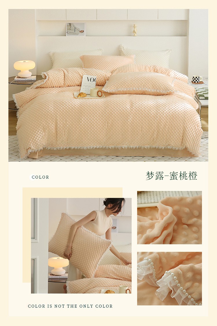 商品名称:玛奇朵 2022升级版A类豆豆绒梦露系列四件套 梦露-蜜桃橙