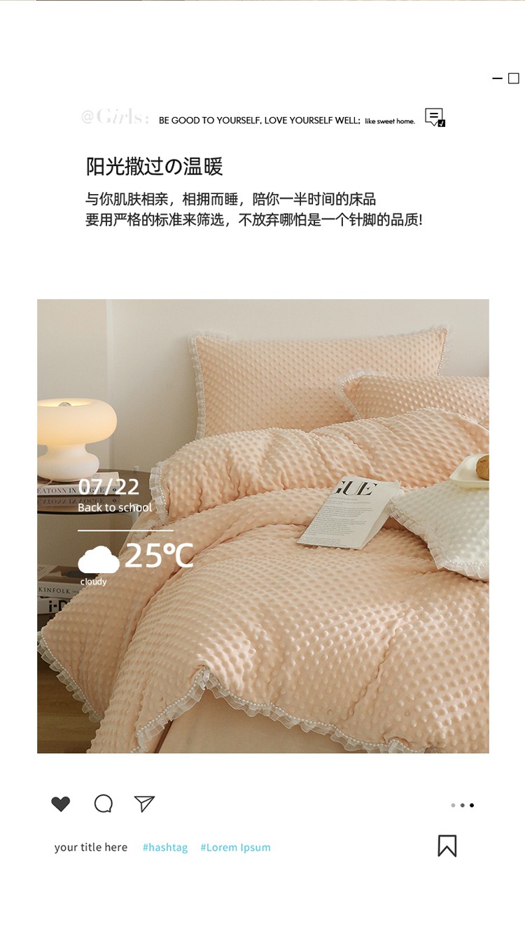 (总)玛奇朵 2025新款韩系少女全棉立体提花四件套-,青纱粉黛