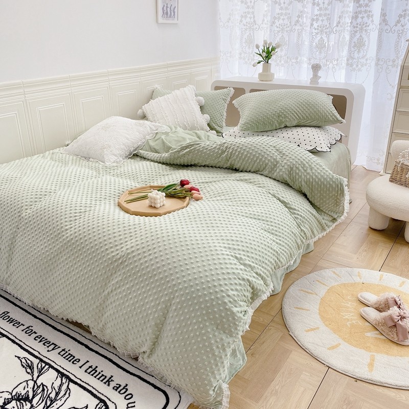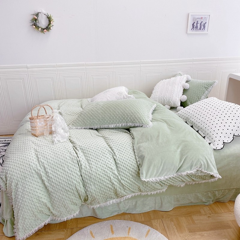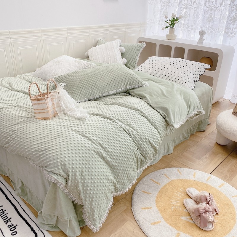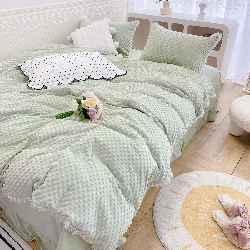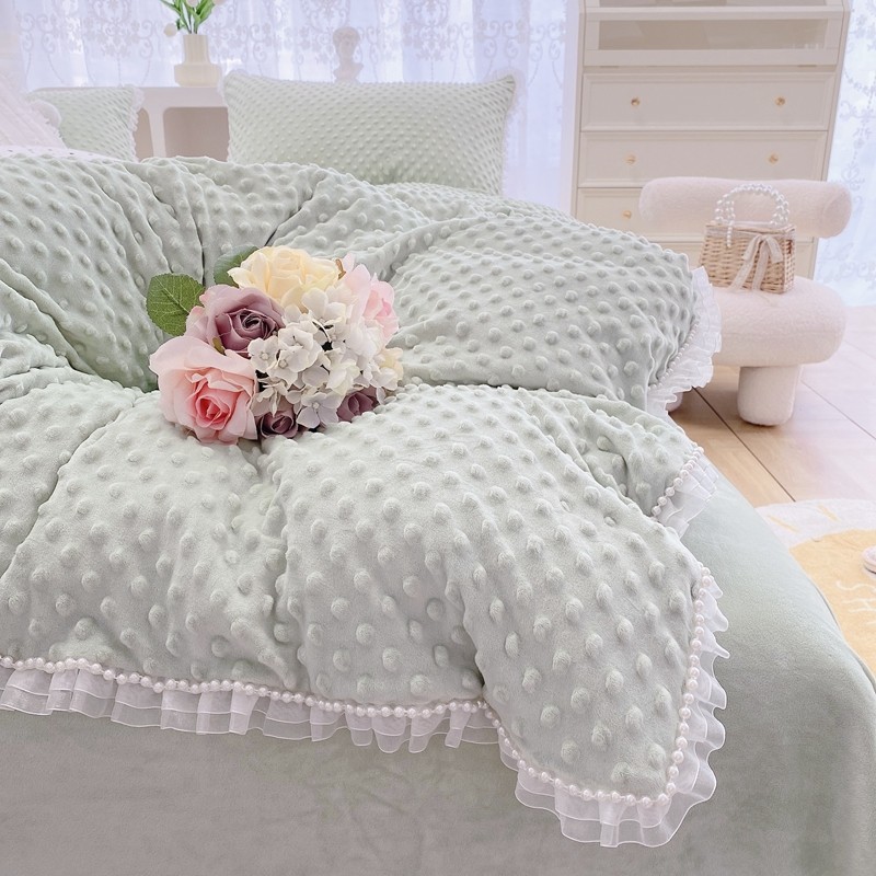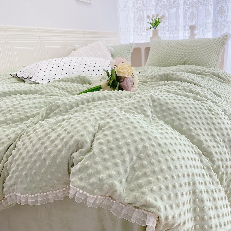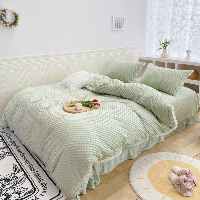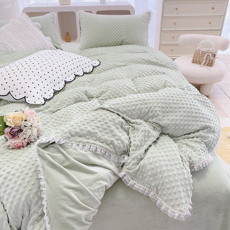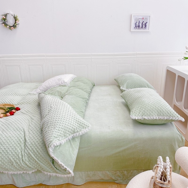 商品名称:玛奇朵 2022升级版A类豆豆绒梦露系列四件套 梦露-薄荷绿