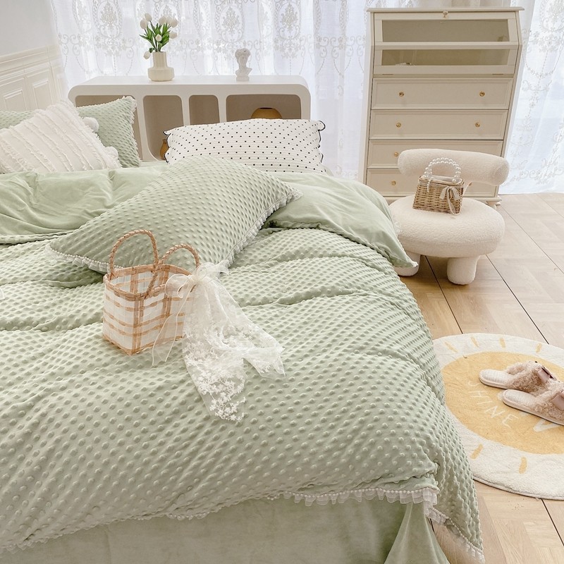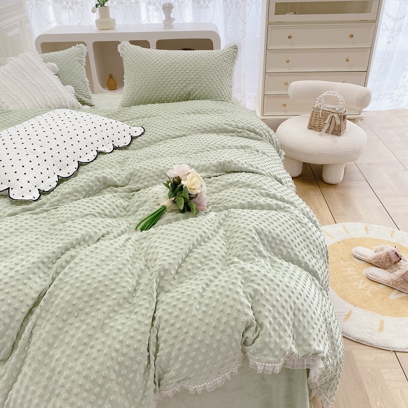 (总)玛奇朵 2025新款韩系少女全棉立体提花四件套-,青纱粉黛