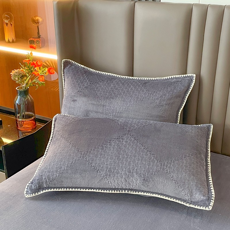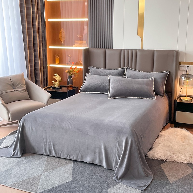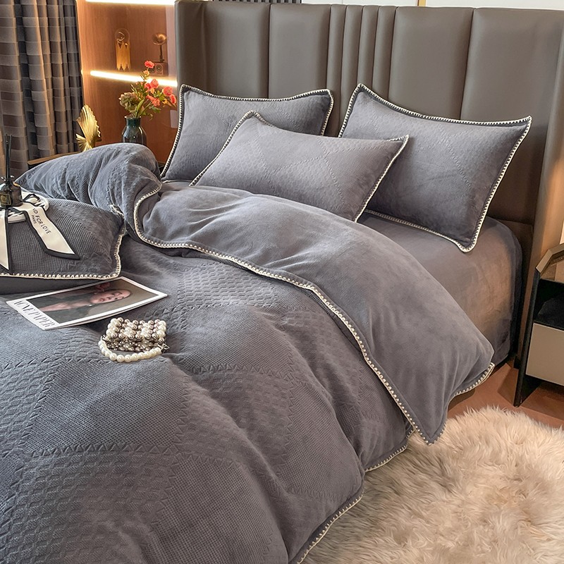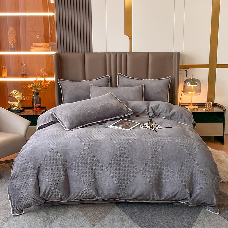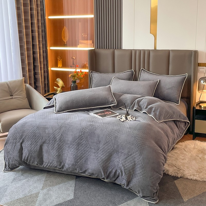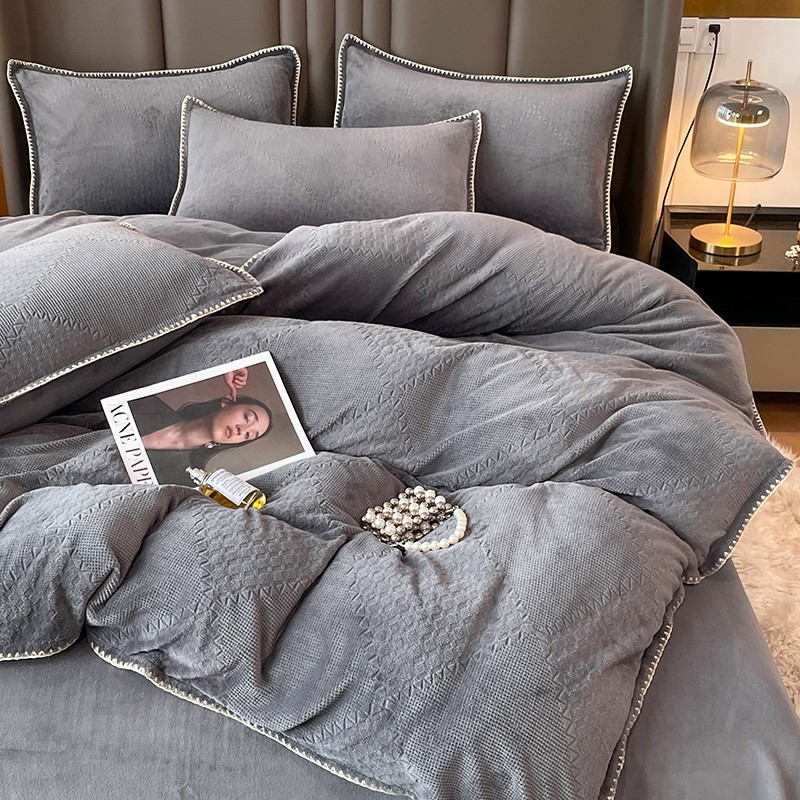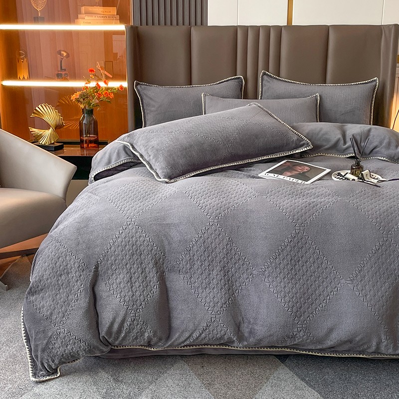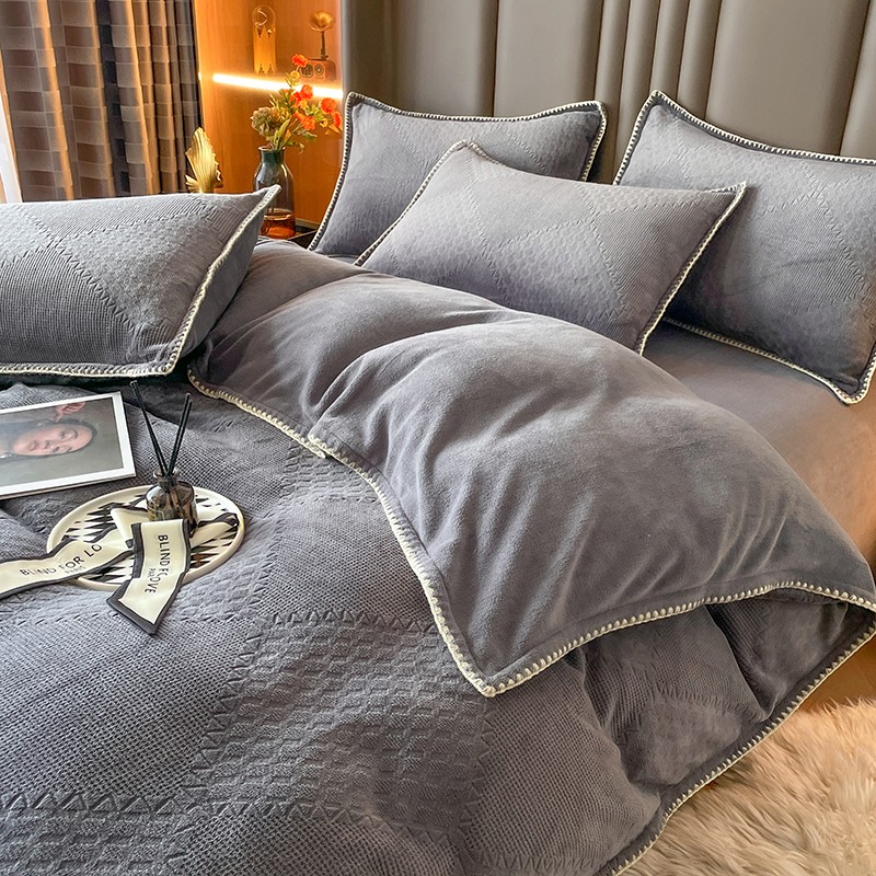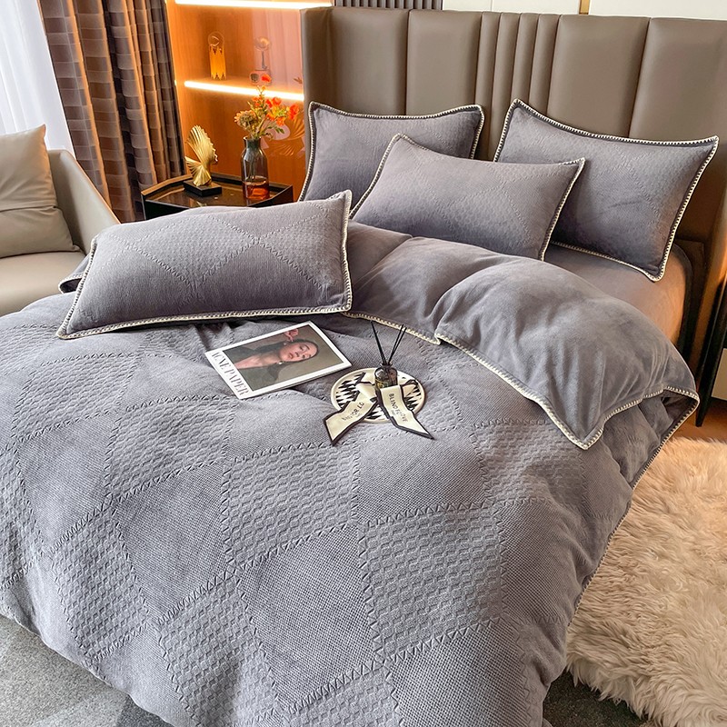 商品名称:金丝鸟 2022新款200克华夫格雕花牛奶绒贝壳边四件套 华夫格灰