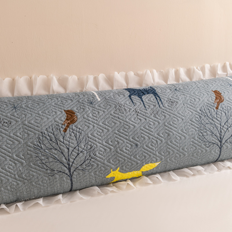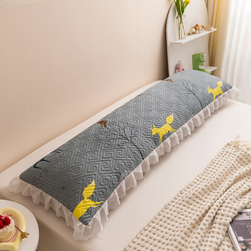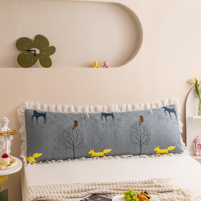新款磨毛夹棉花边双人长枕套 草丛鹿