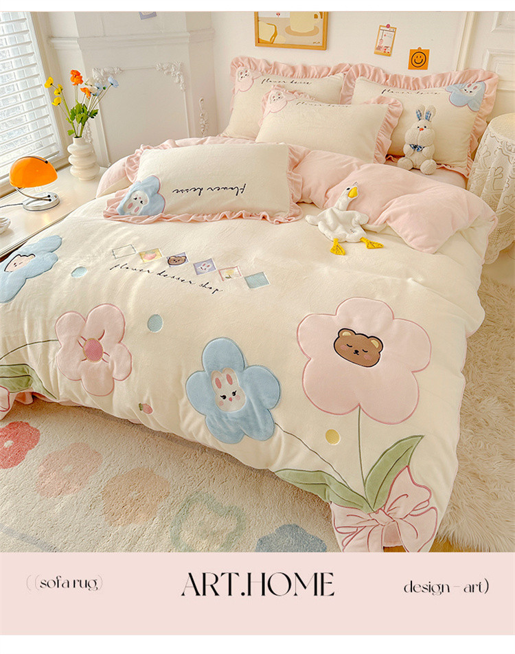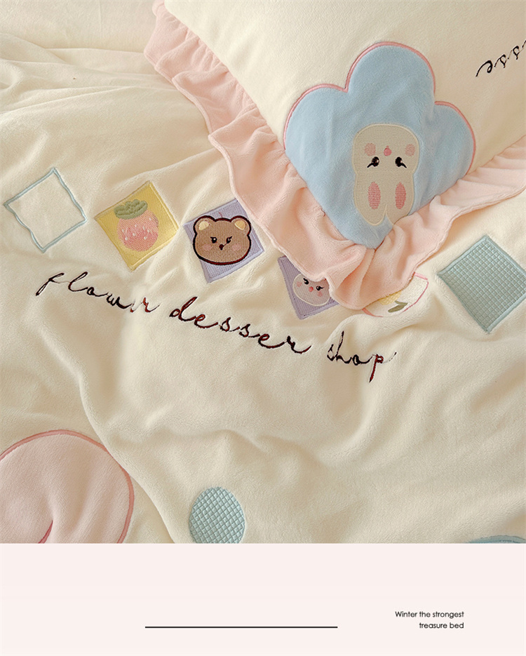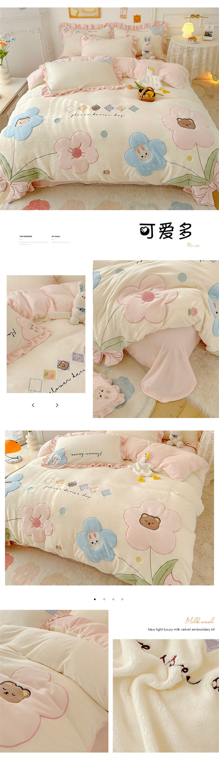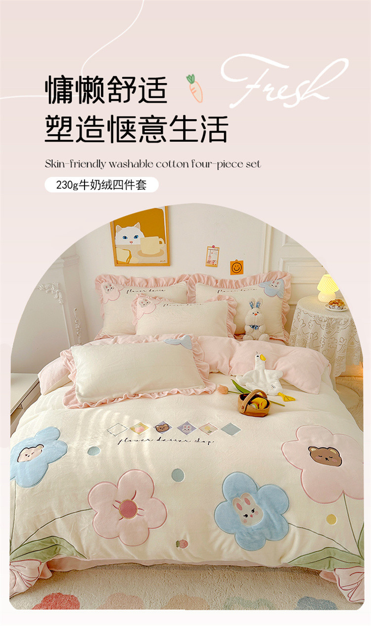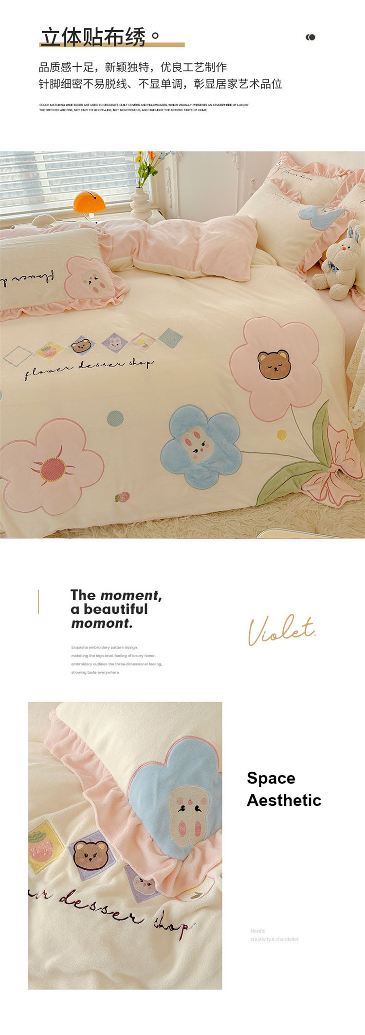 柠馨 2022新款230g牛奶绒贴布绣花可爱卡通四件套可爱多