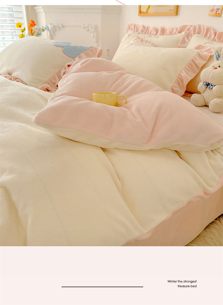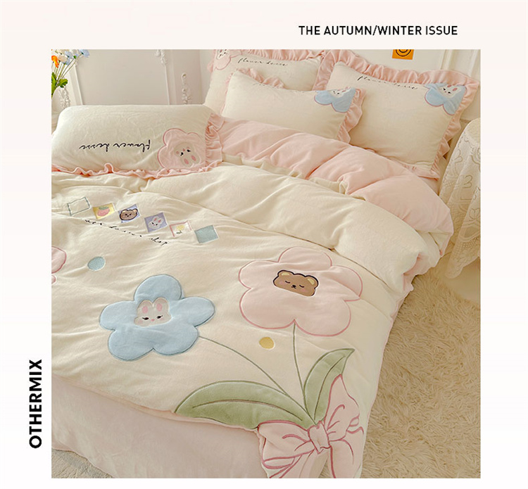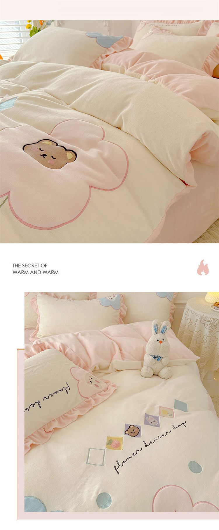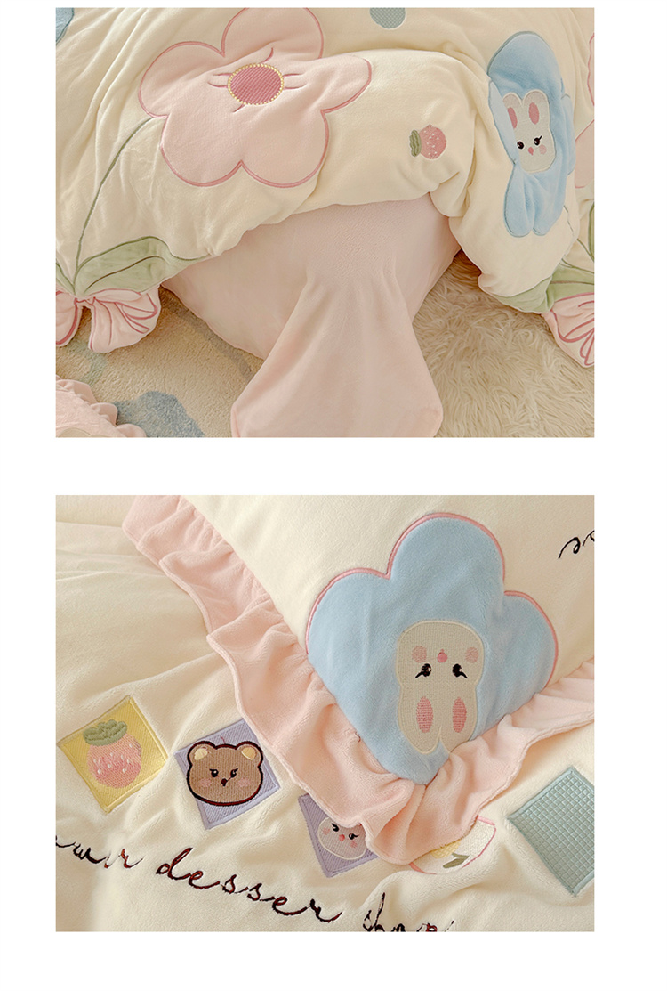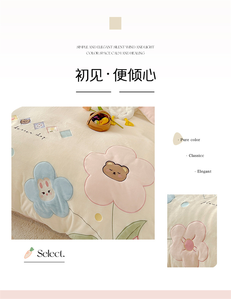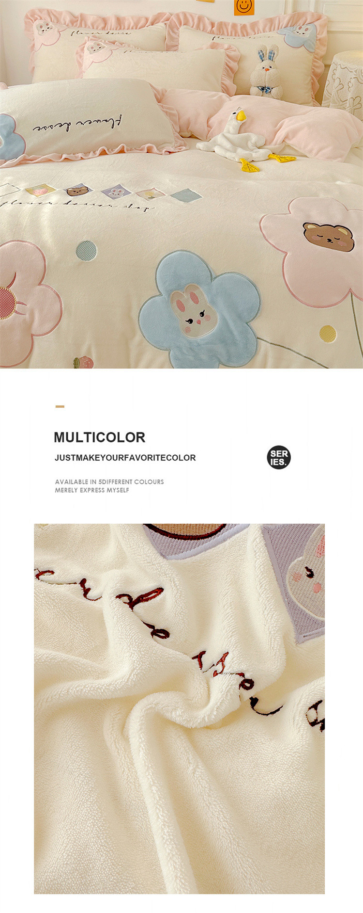 柠馨 2022新款230g牛奶绒贴布绣花可爱卡通四件套可爱多