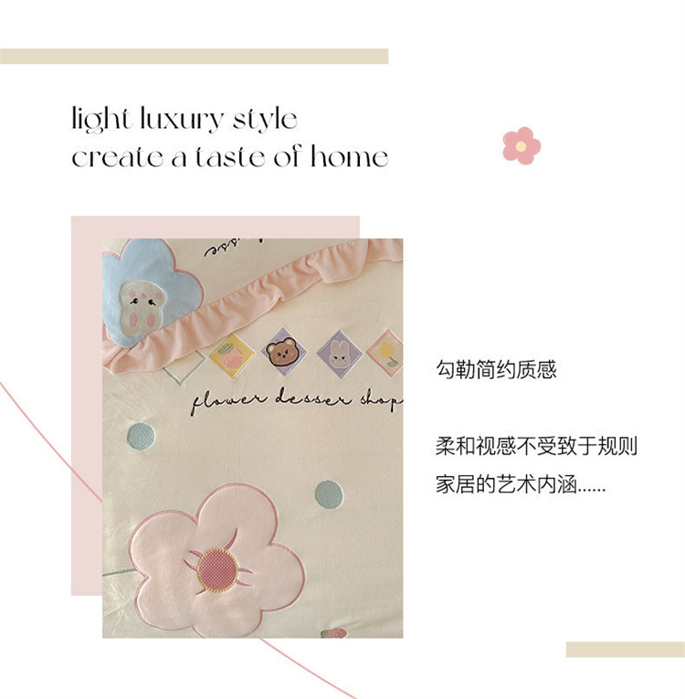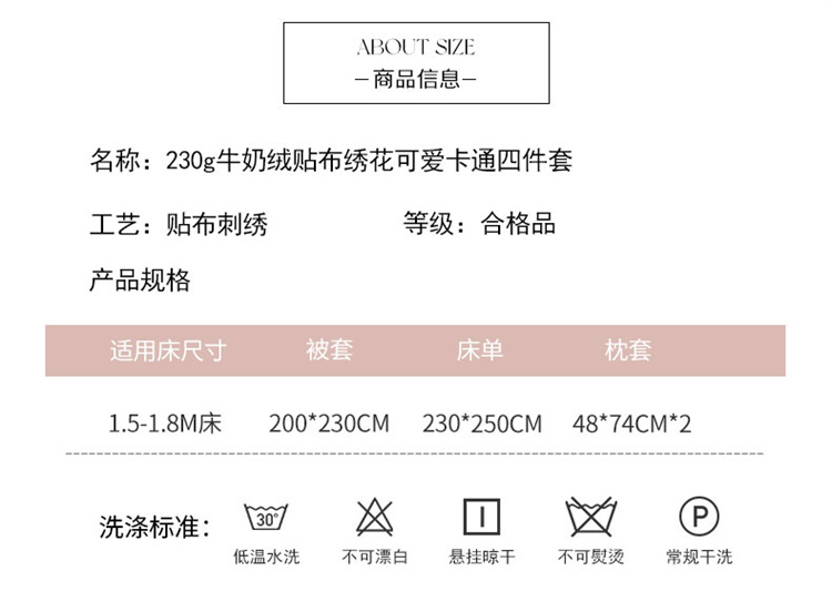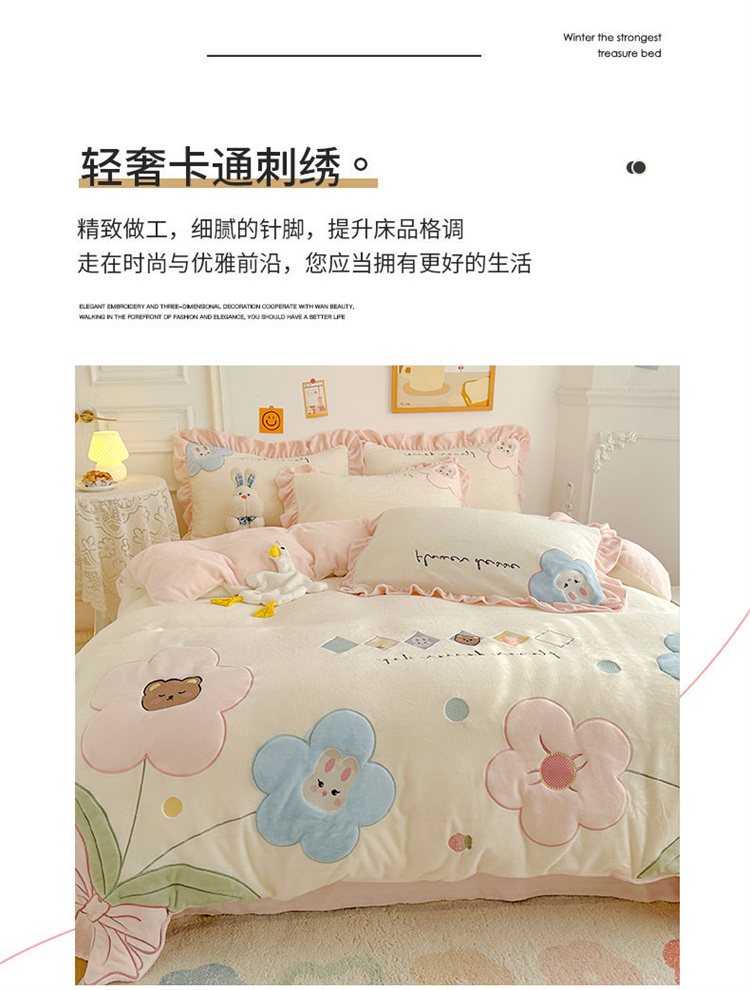 商品名称:柠馨 2022新款230g牛奶绒贴布绣花可爱卡通四件套可爱多