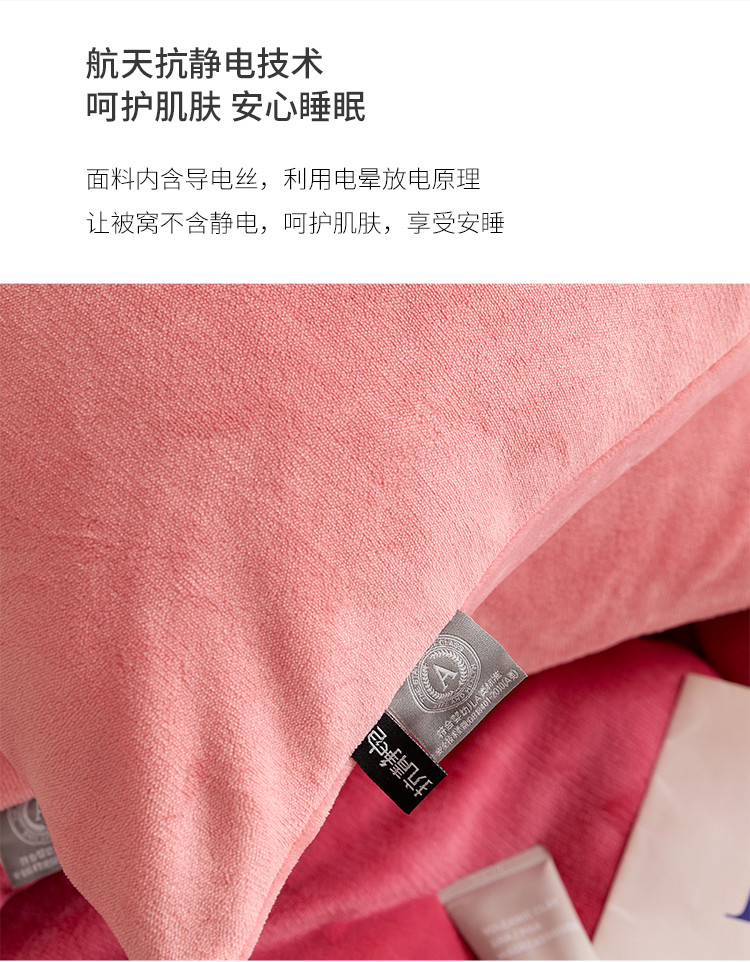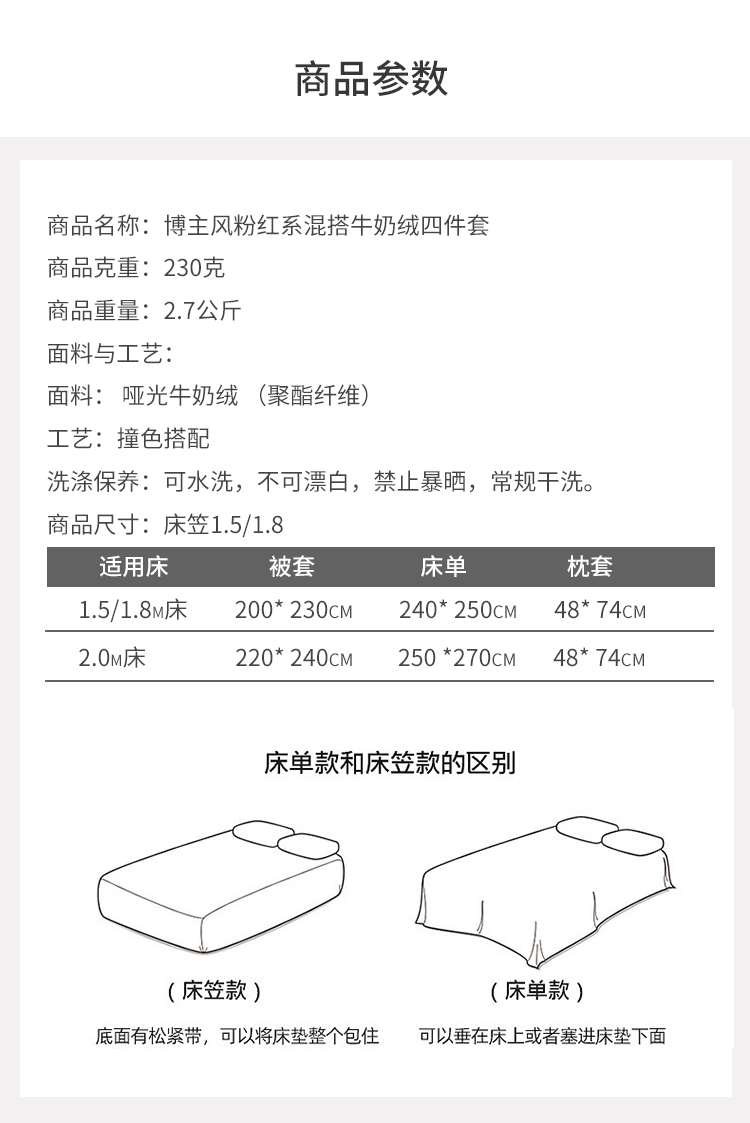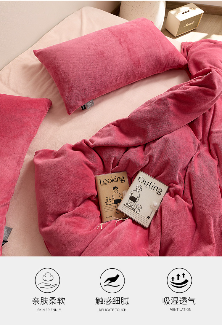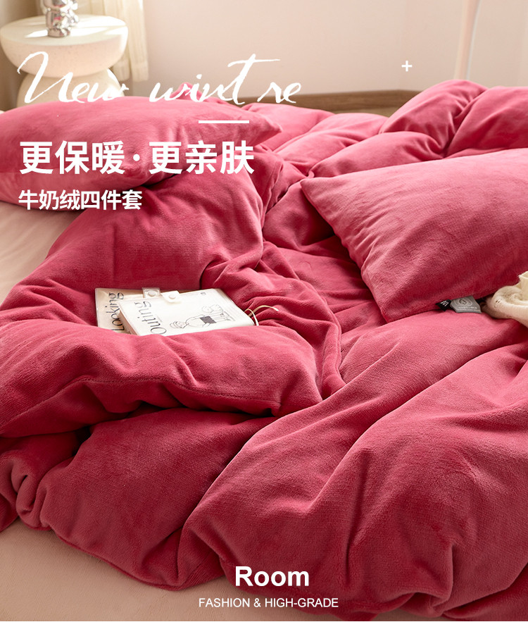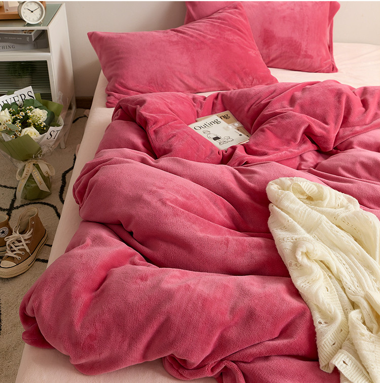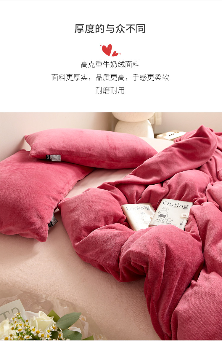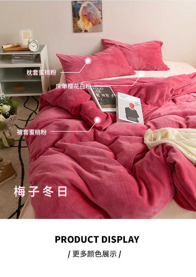 商品名称:花沐 2023新款博主风粉色系混搭牛奶绒四件套 冬日梅子