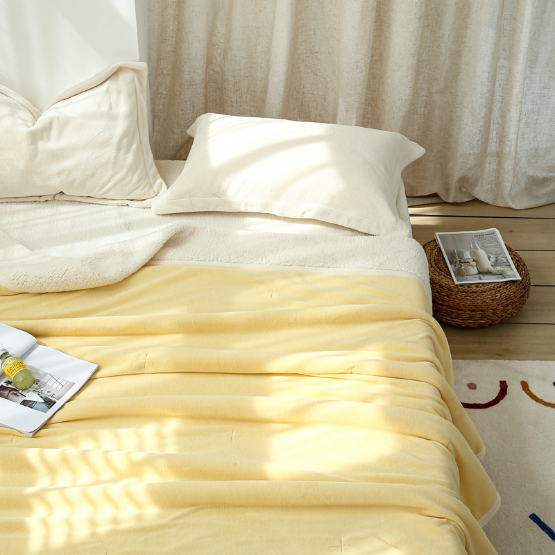 商品名称:总 安莱生活 秋冬新品高克重新品牛奶绒拼羊羔绒毛毯 图二