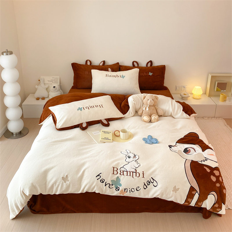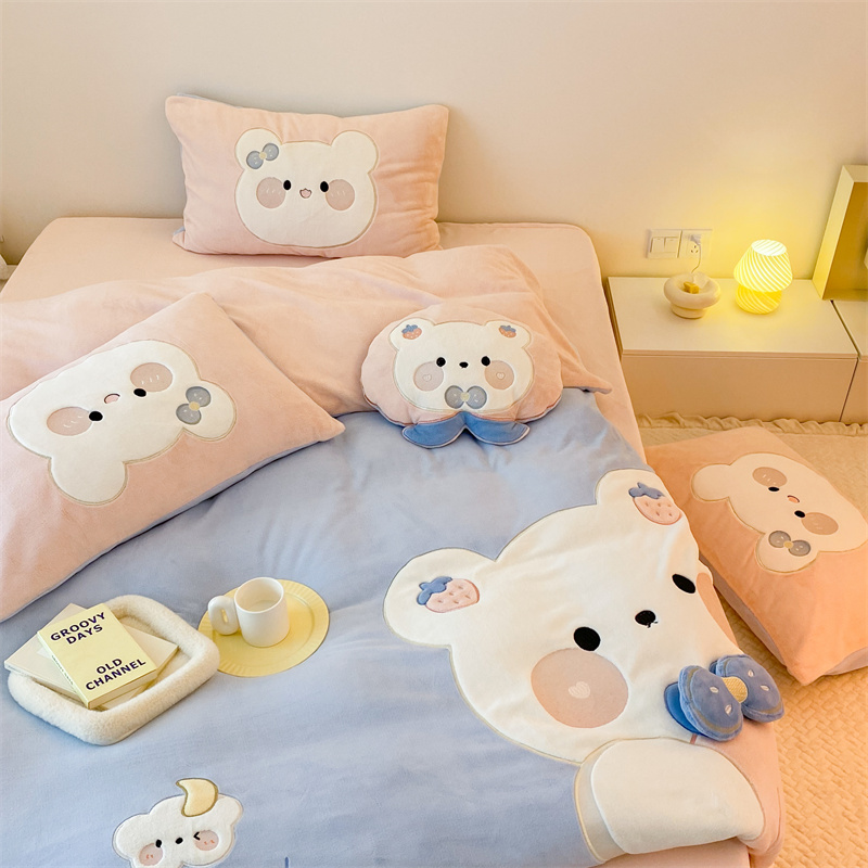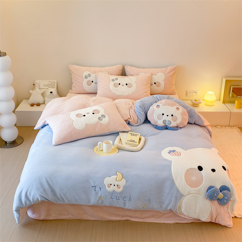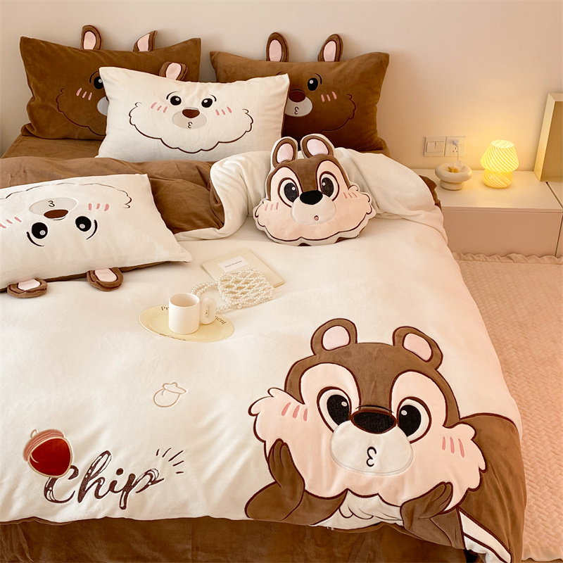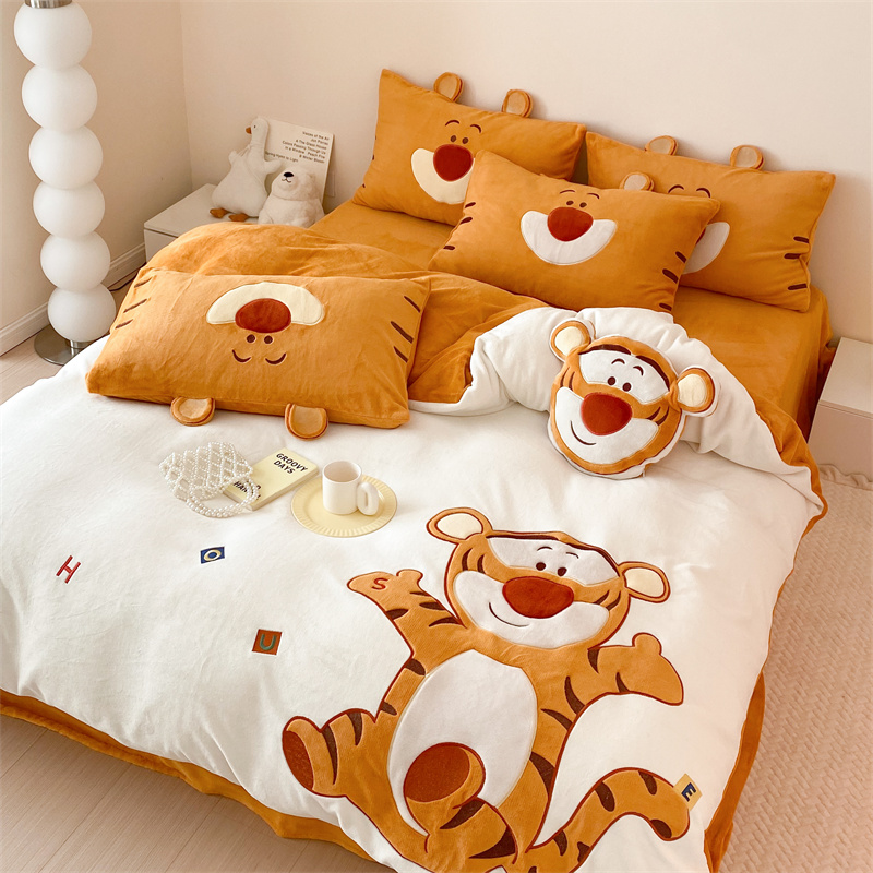 (总)朗莎家纺 2021新款贴布绣牛奶绒四件套,悠悠熊,唐老鸭