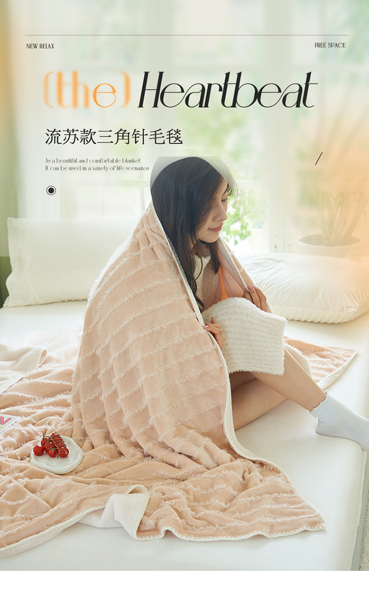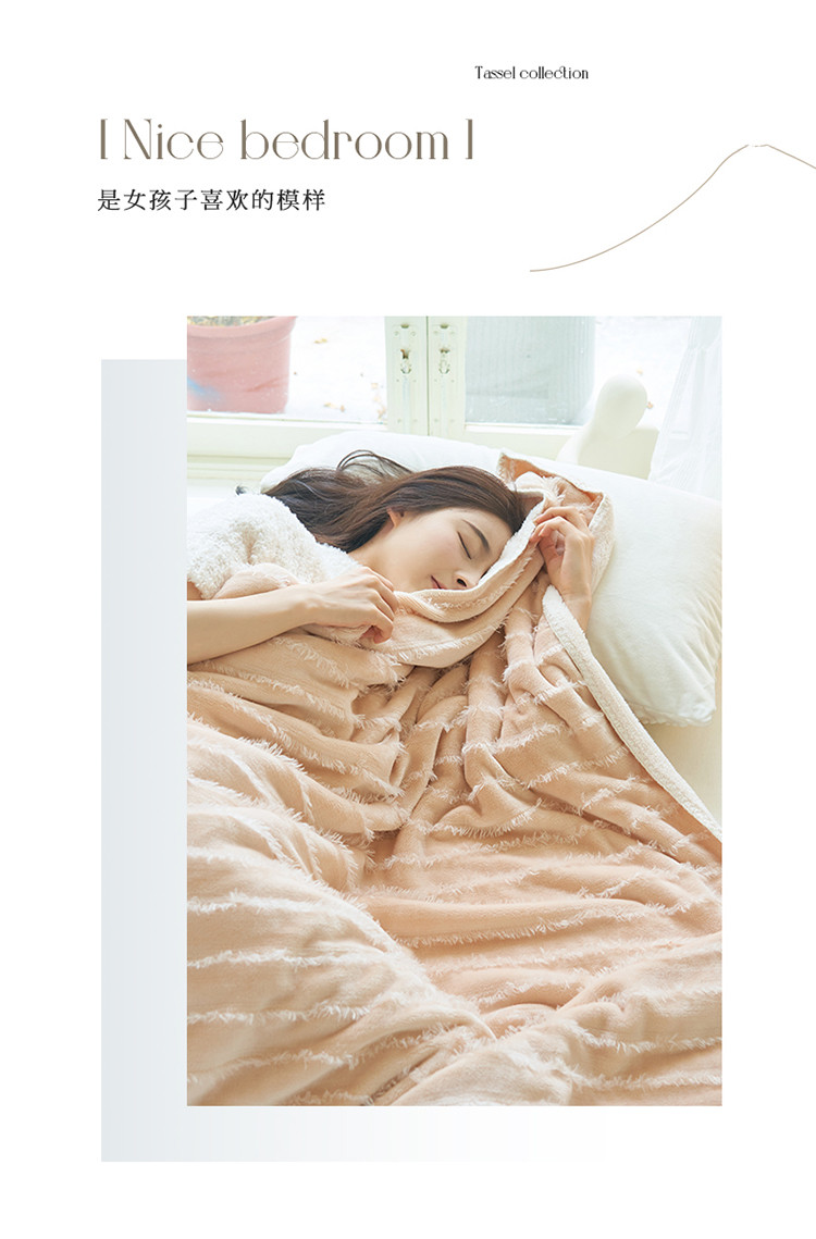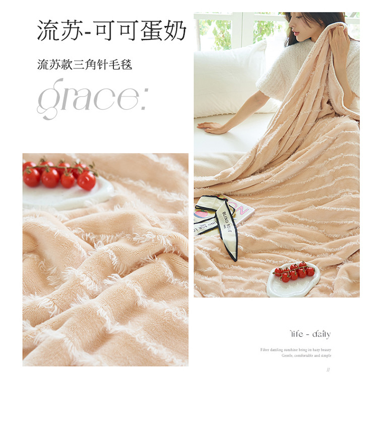 晨曦家纺 2022新款流苏款三角针毛毯 流苏-可可蛋奶