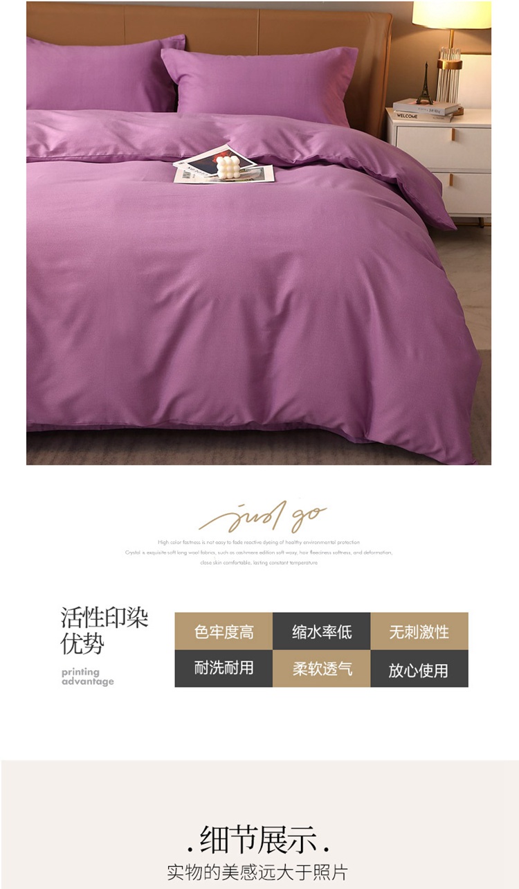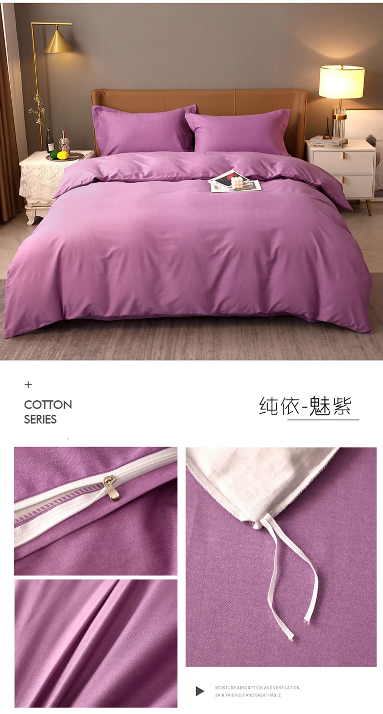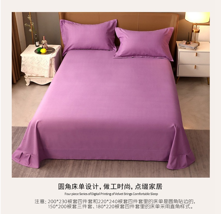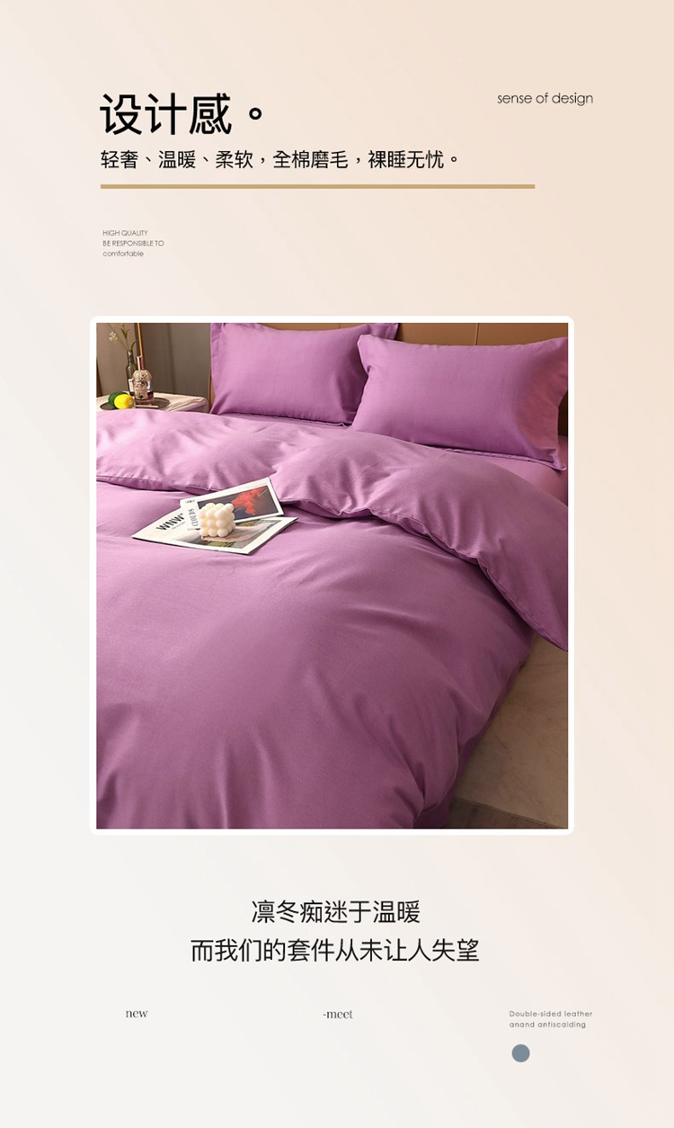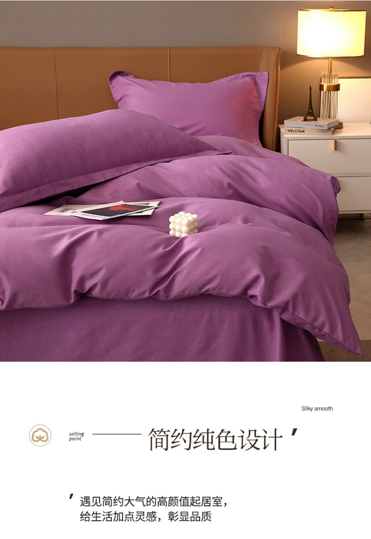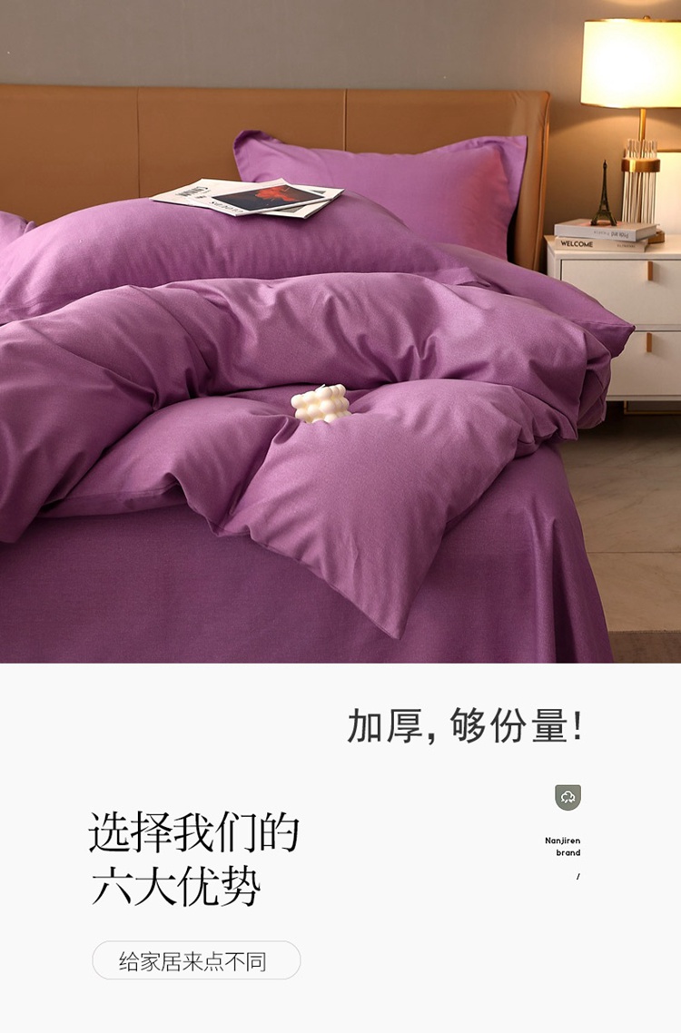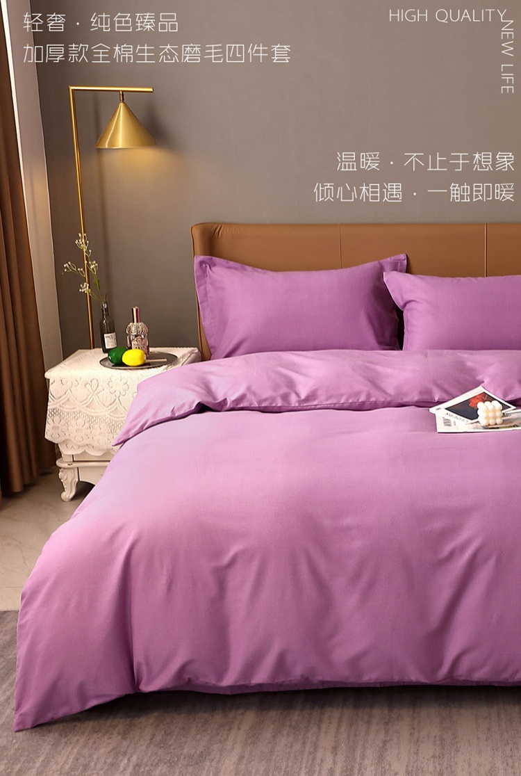 当前位置: 91家纺网 > 商品网购 > 床品套件 > 四件套 > 普通磨毛四件套 > 晶缦家纺 2022新款加厚全棉纯色生态磨毛多规格四件套 纯依-魅紫