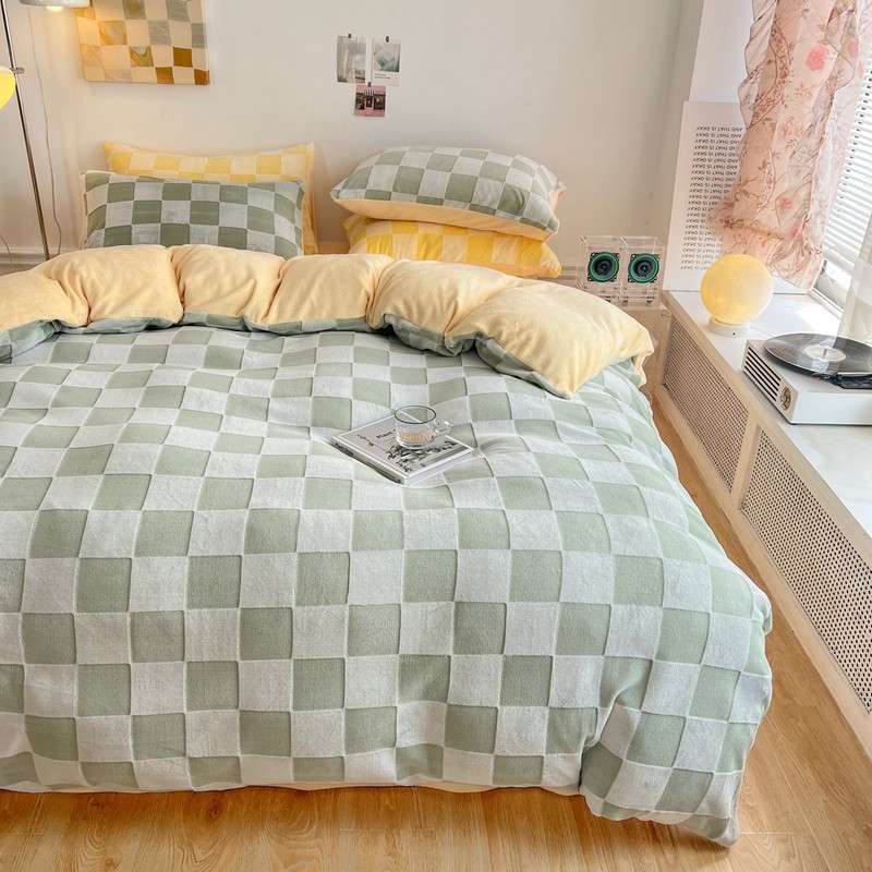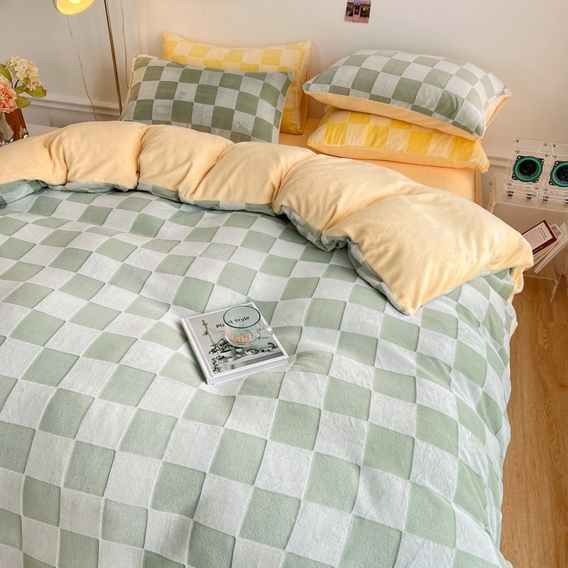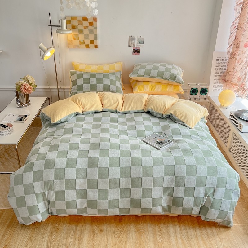 珺柔 2022新款提花格子牛奶绒四件套 绿格子