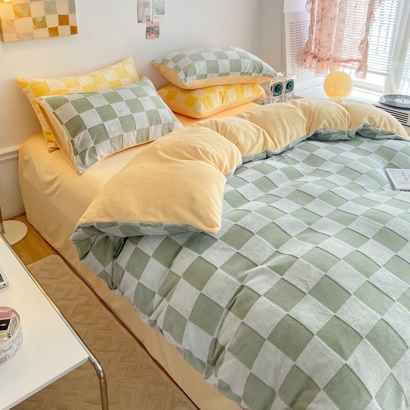 商品名称:珺柔 2022新款提花格子牛奶绒四件套 绿格子