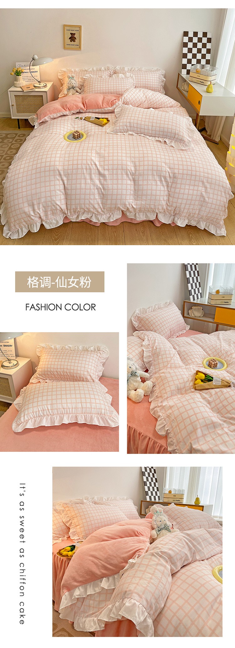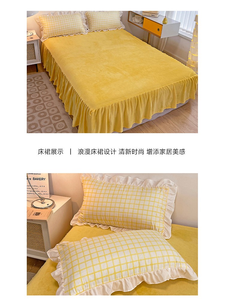 (总)逸尚阁 2025新款高克重牛奶绒纯色床笠系列,床笠-粉色,床笠-黄色,床笠-蓝色,床笠-绿色