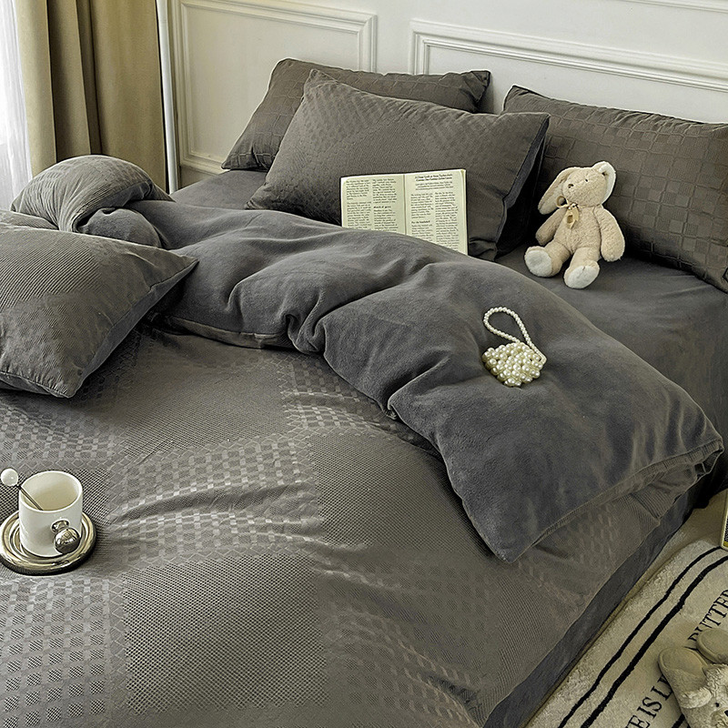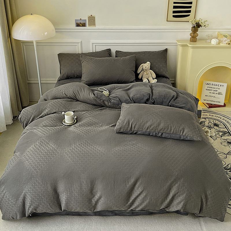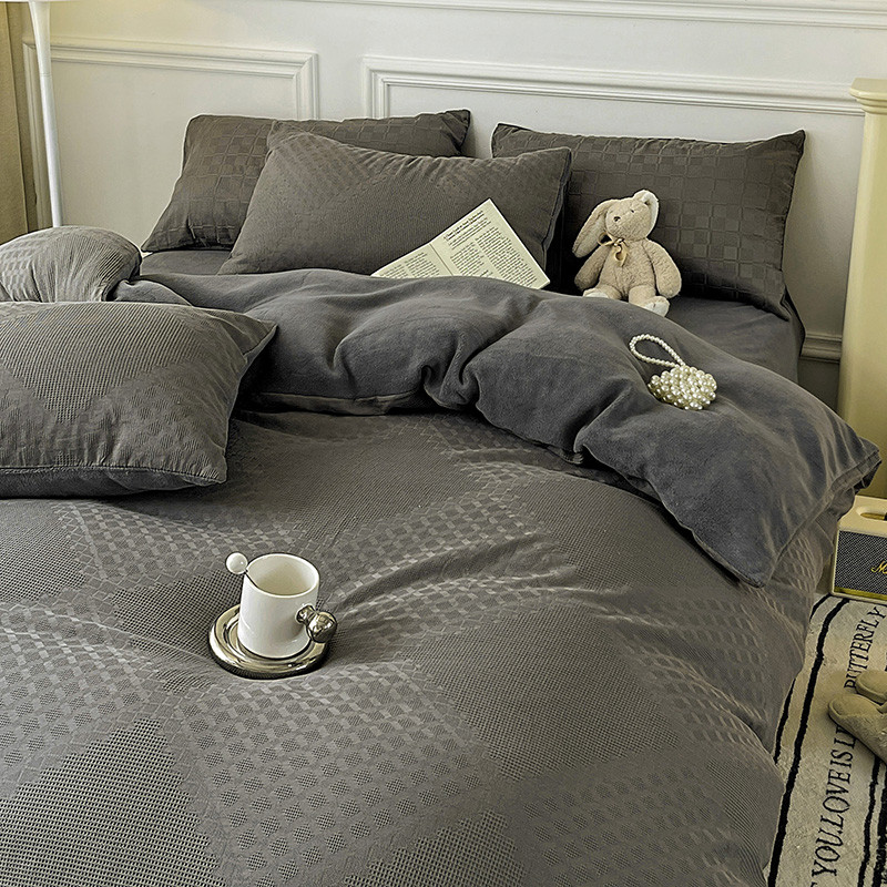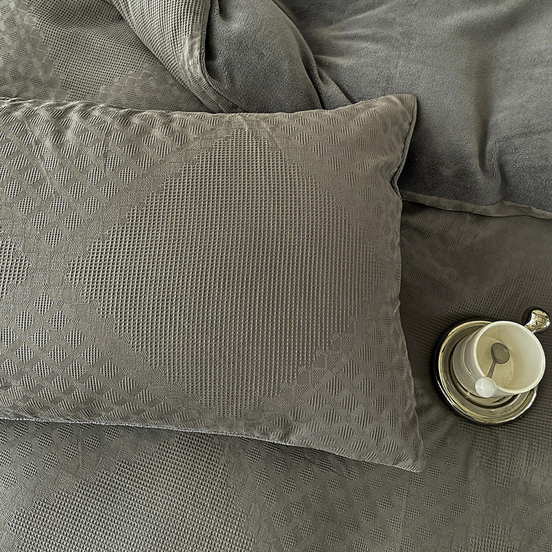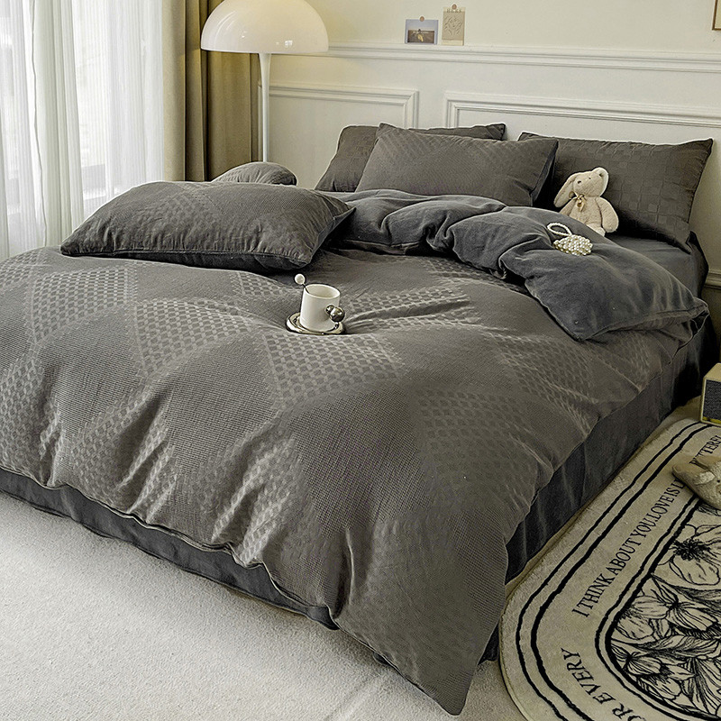 商品名称:金丝鸟 2022全棉华夫格提花加牛奶绒四件套 拉夫格灰