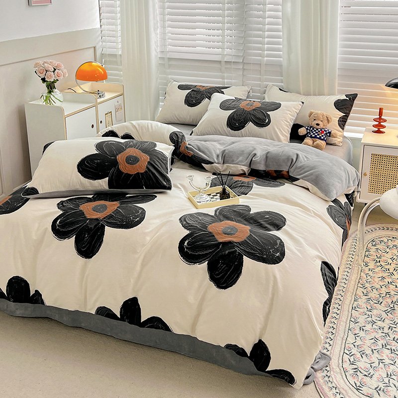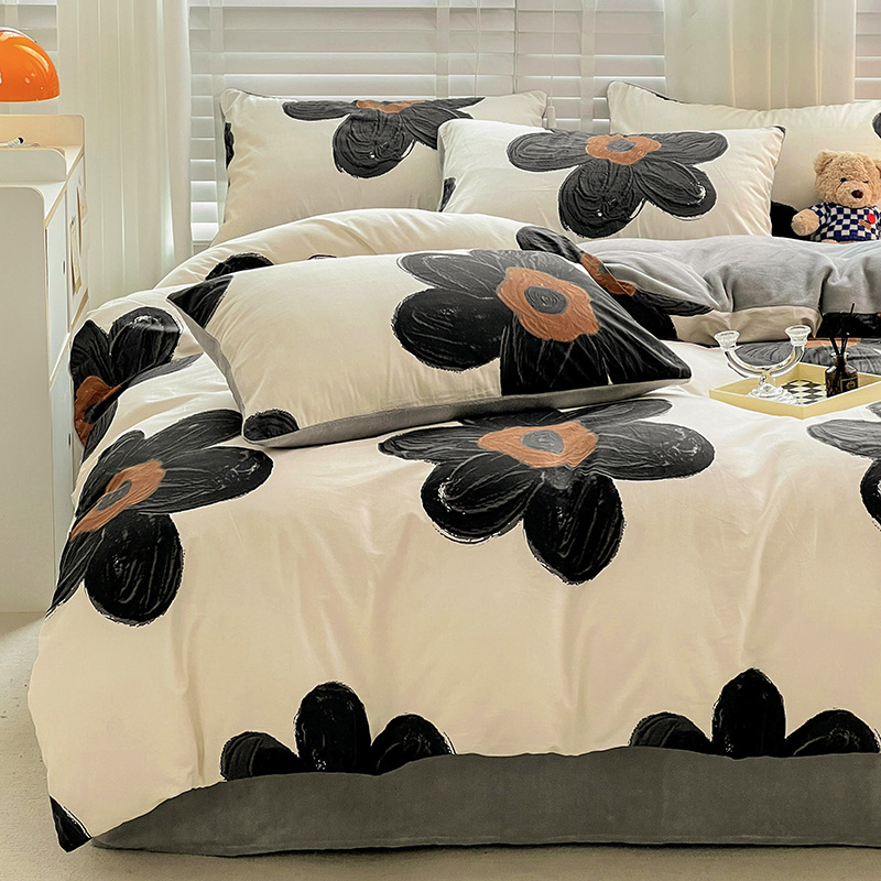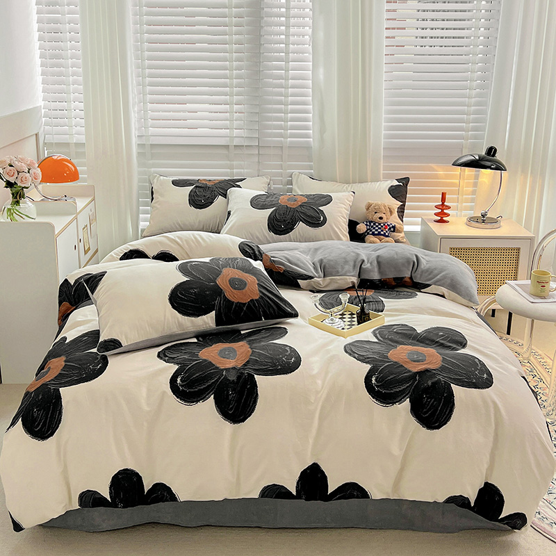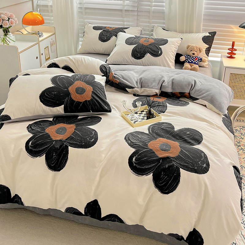 商品名称:金丝鸟 2022全棉印花加牛奶绒四件套 暗影