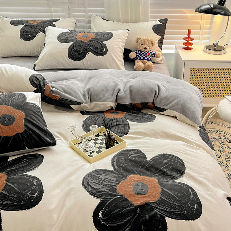金丝鸟 2022全棉印花加牛奶绒四件套 暗影