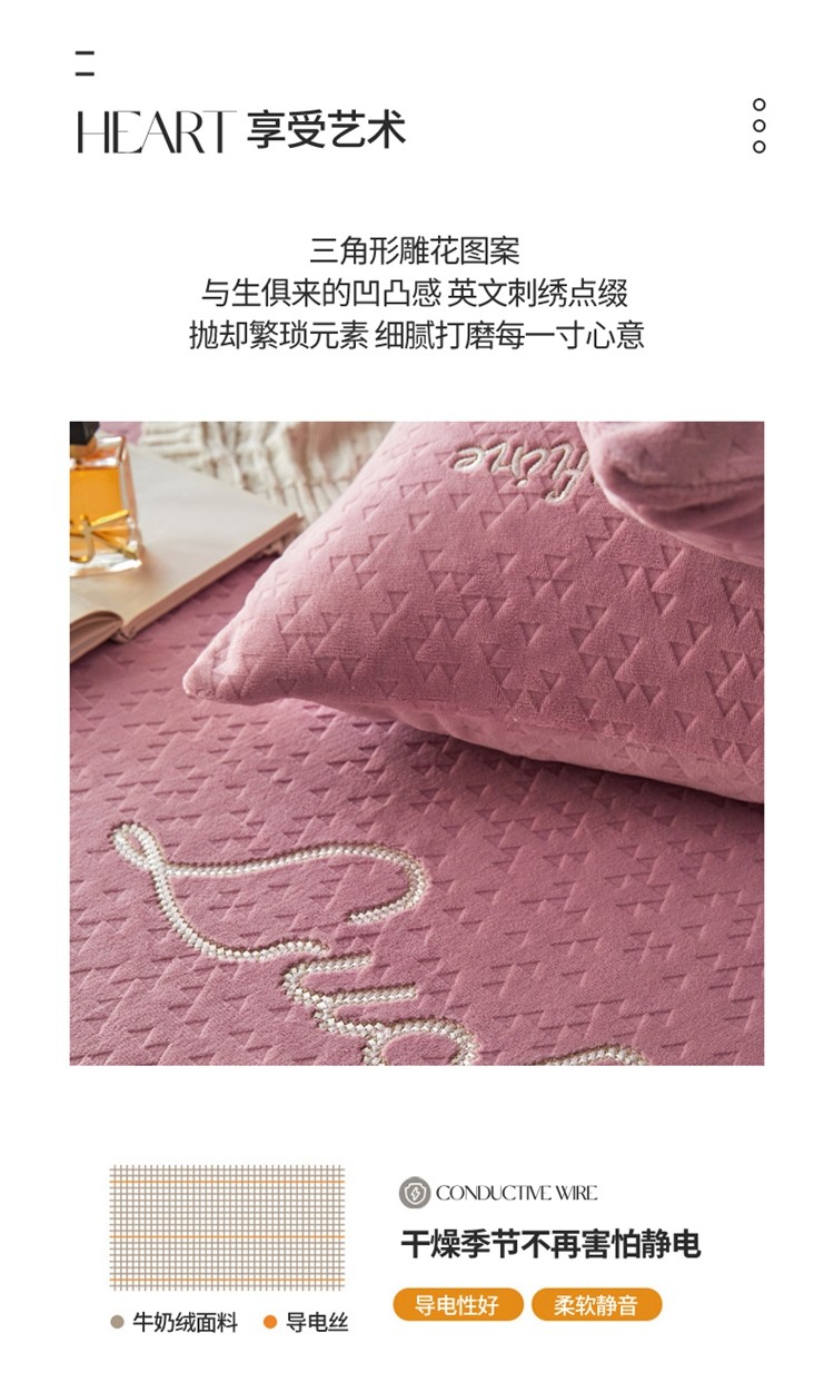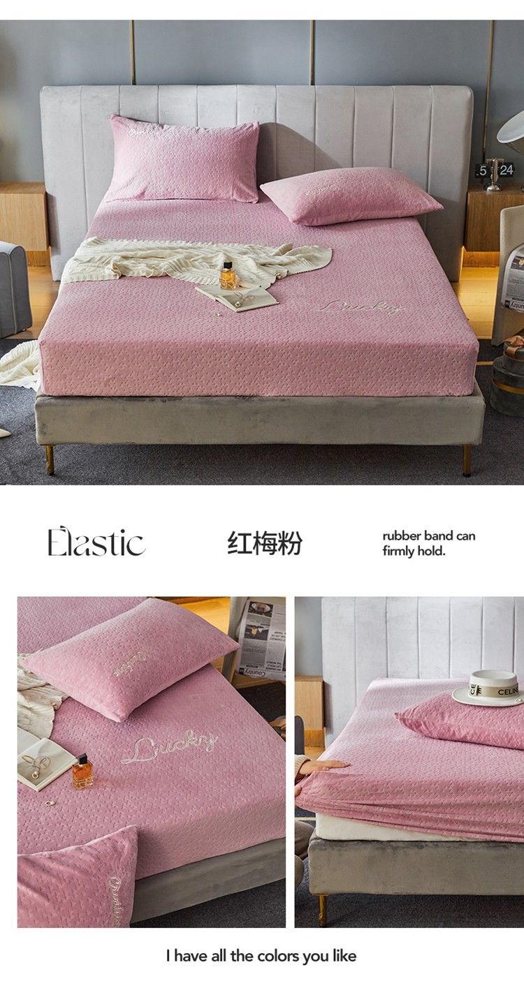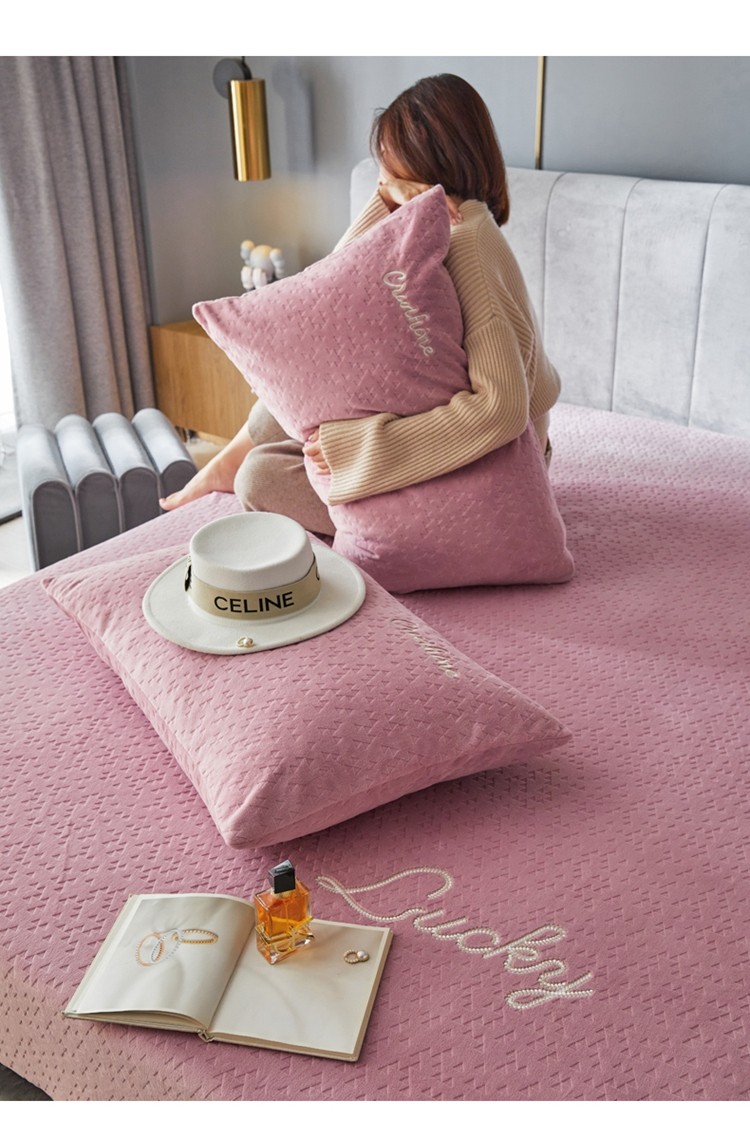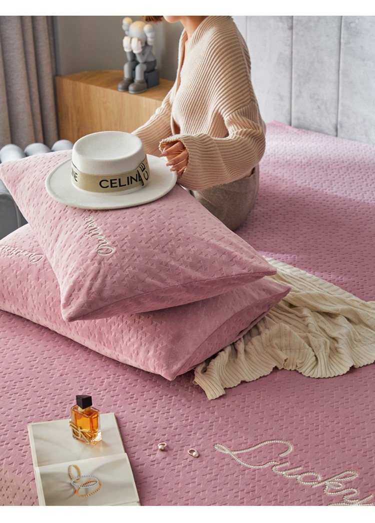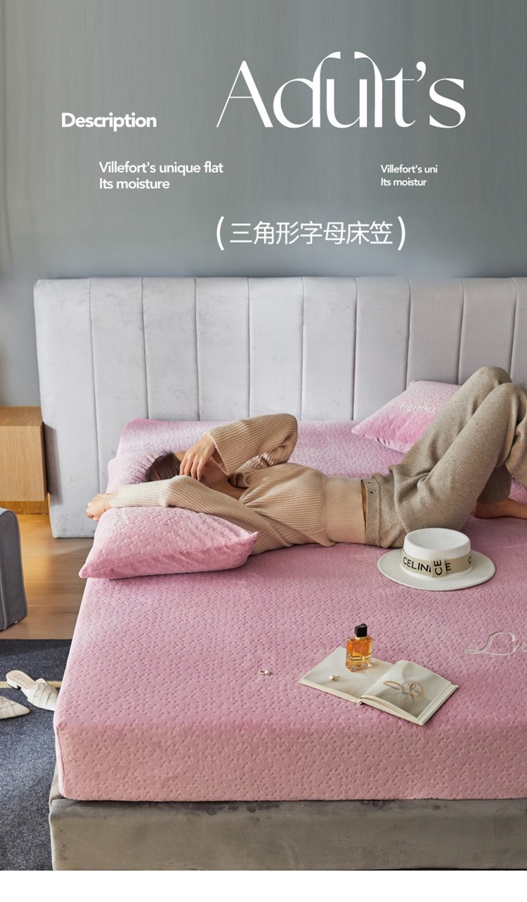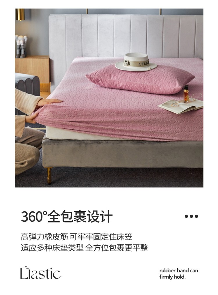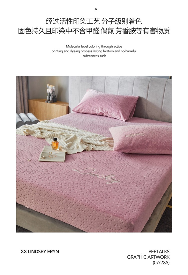 商品名称:铭动 2023新款牛奶绒三角形字母床笠 红梅粉