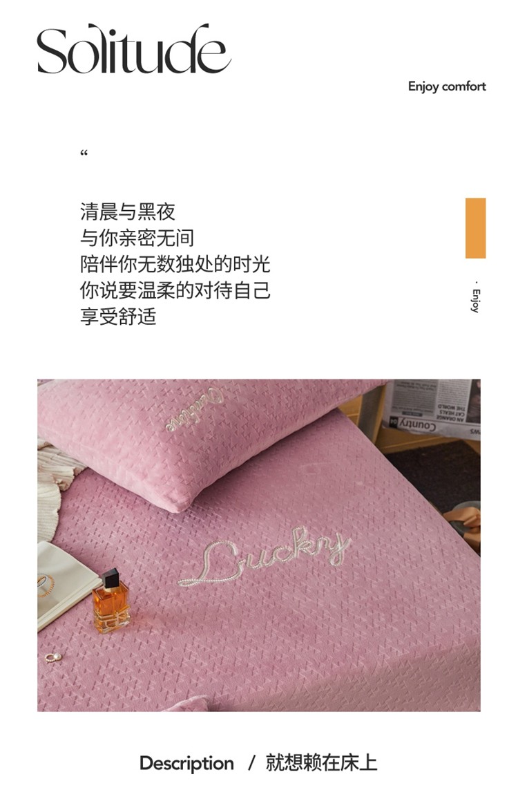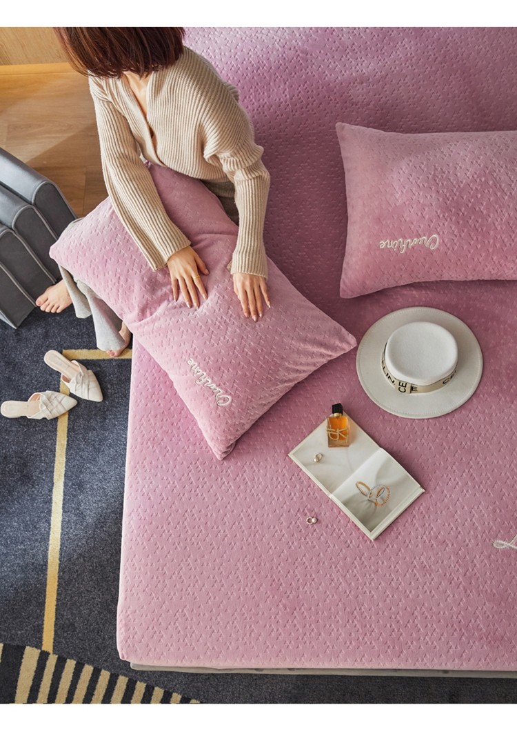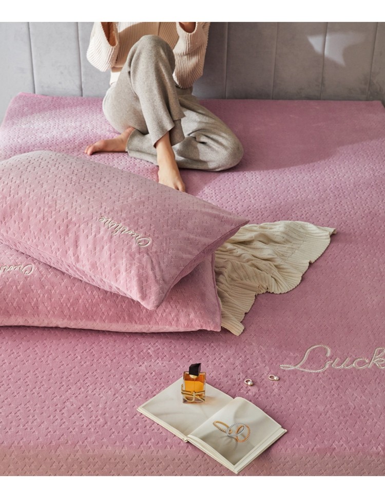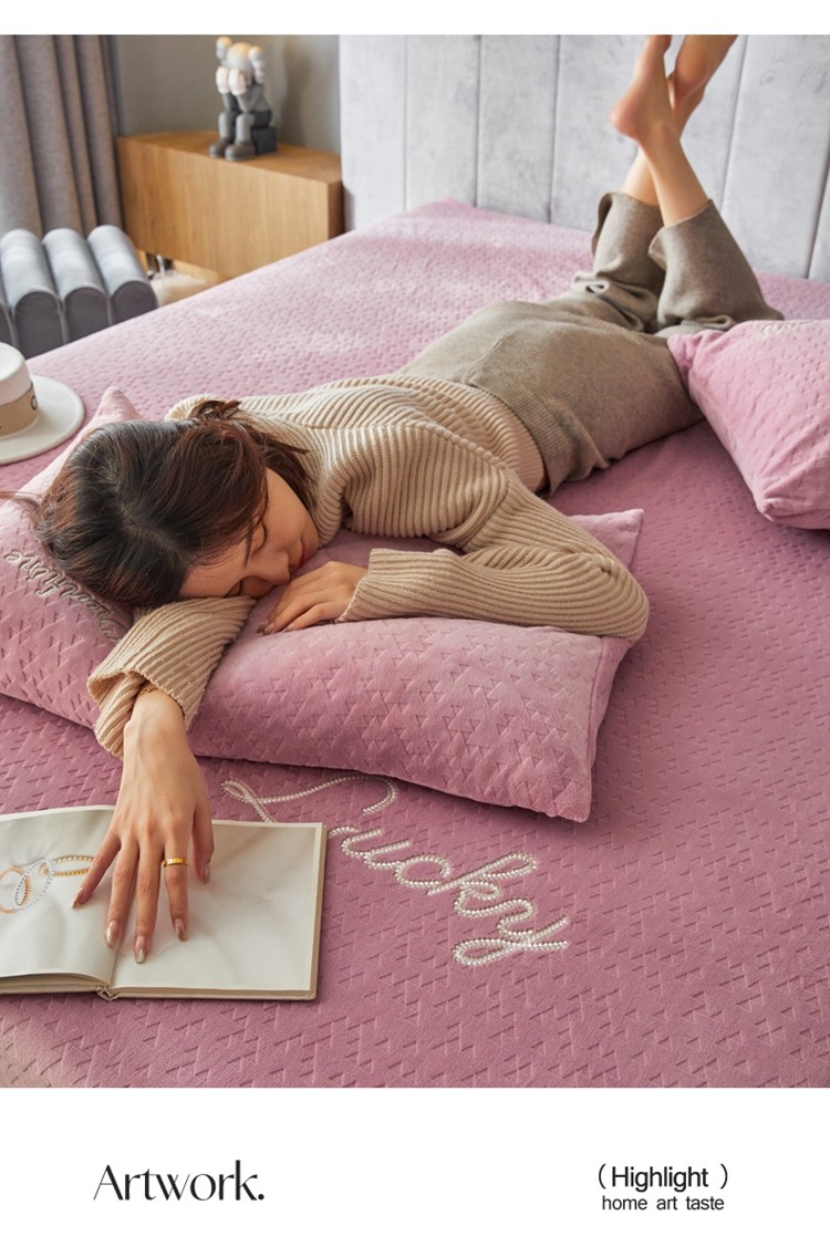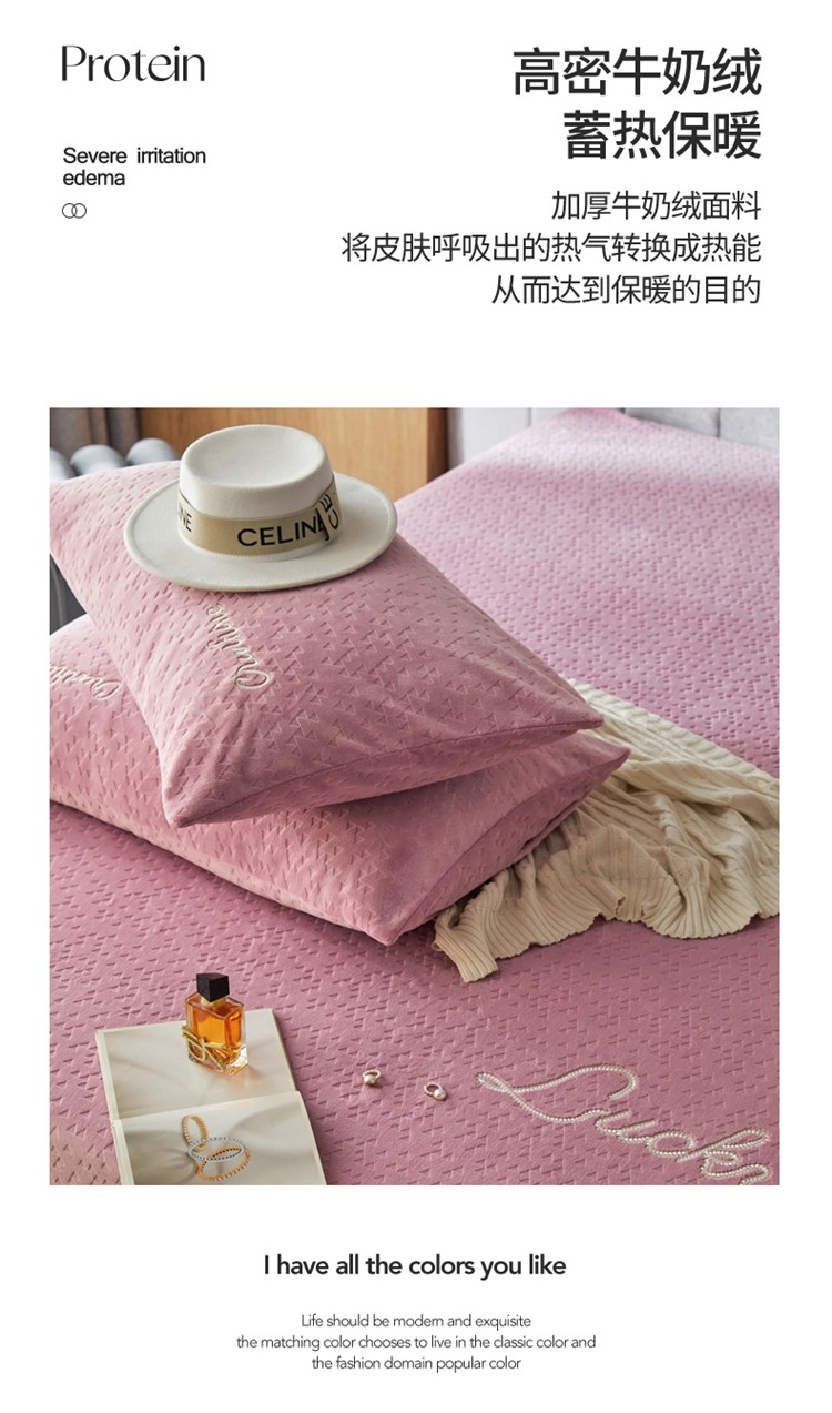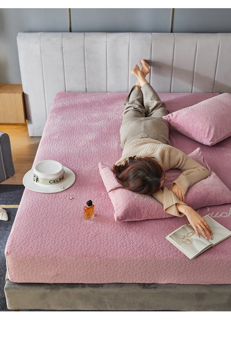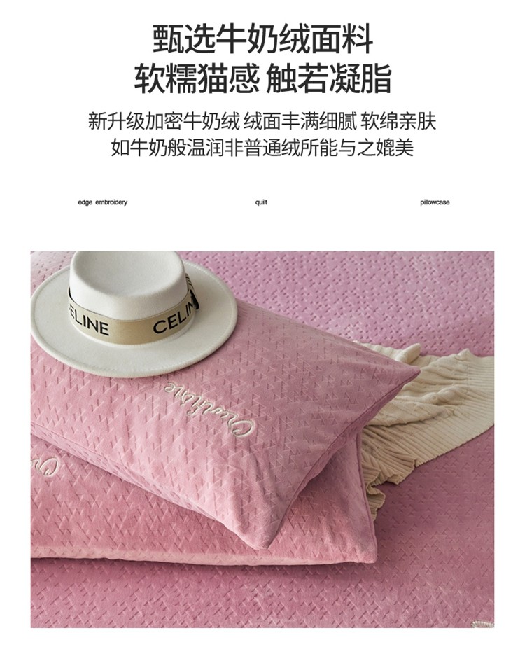 商品名称:铭动 2023新款牛奶绒三角形字母床笠 红梅粉