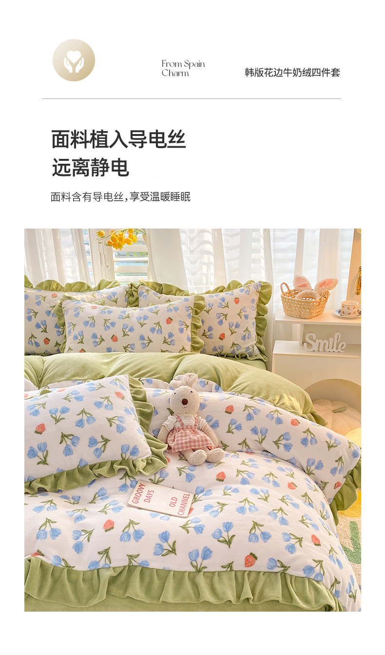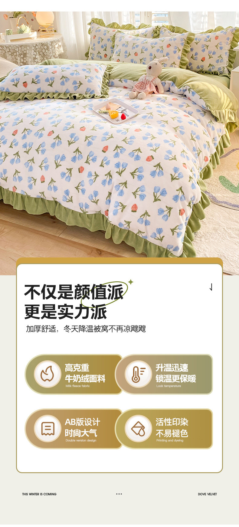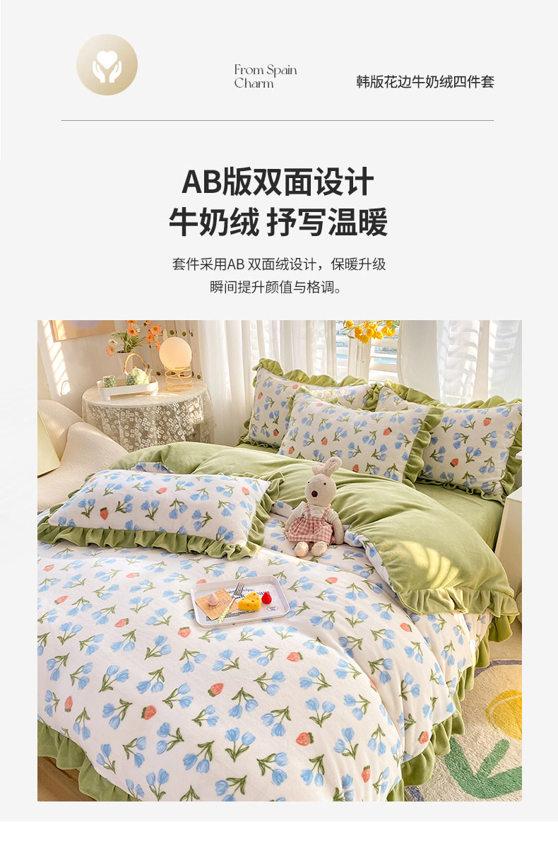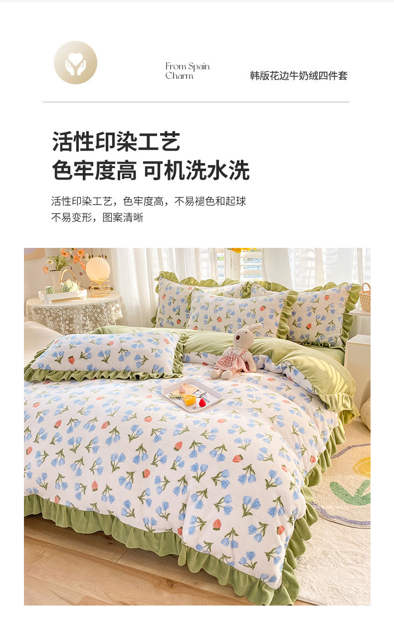 当前位置: 91家纺网 > 商品网购 > 床品套件 > 四件套 > 牛奶绒四件套 > 小主驾到 2023新款高克重韩版牛奶绒花边四件套小幸运