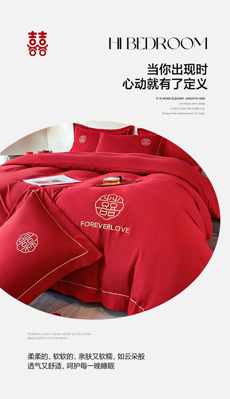(总)花愿(原花纪) 水洗棉刺绣婚庆四件套,喜上加喜,禧悦,永结同心