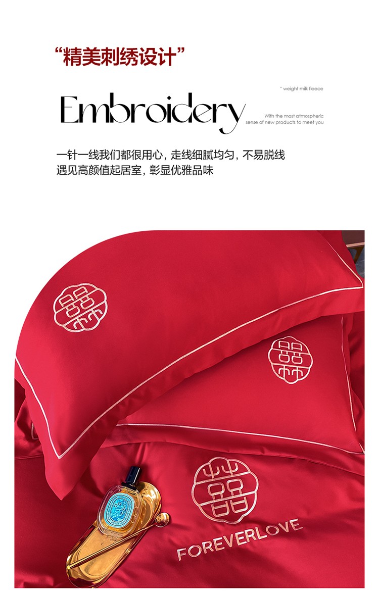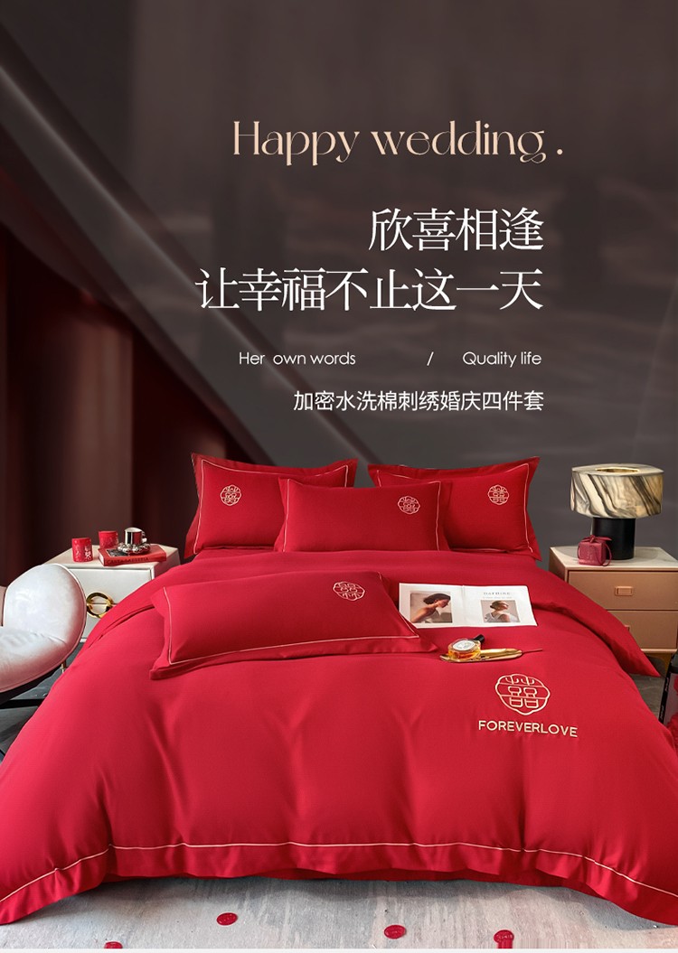 (总)花愿(原花纪) 2025新款水洗棉刺绣婚庆四件套系列,丹枫迎喜,欢喜,良缘,龙凤欢喜,玫瑰之恋,美满,如意,天禧,唯一,喜爱,心心相印,幸福,永恒之恋,钟爱一生