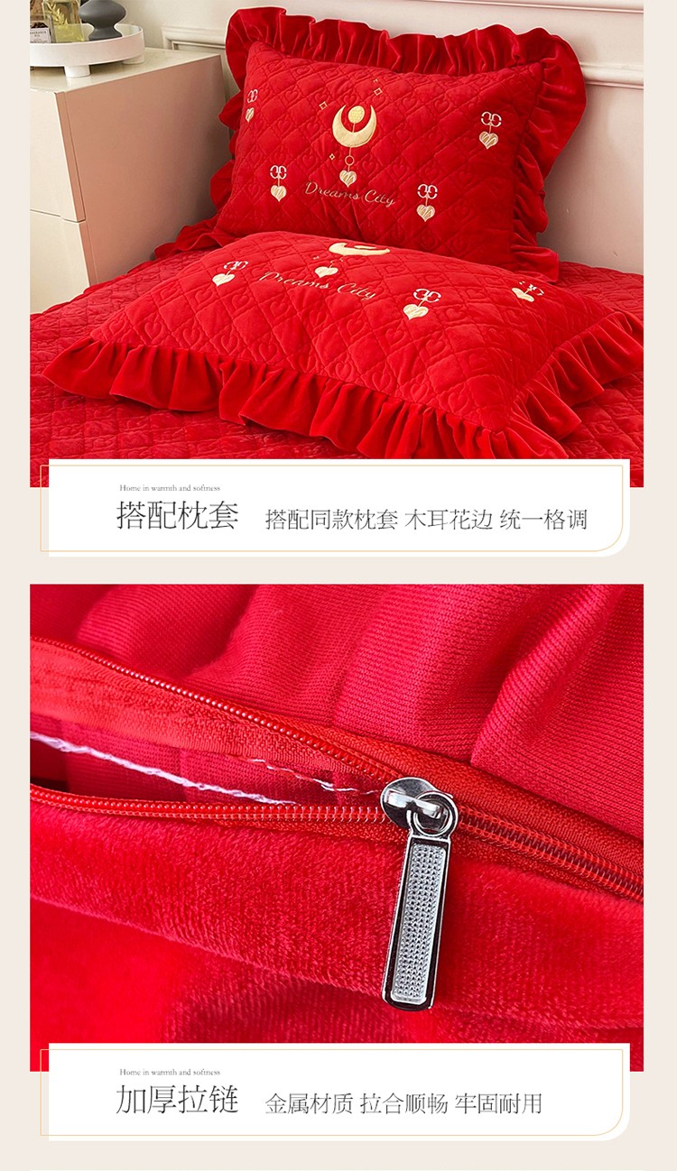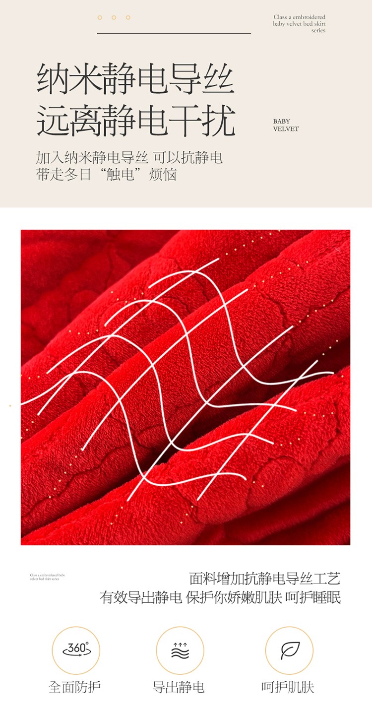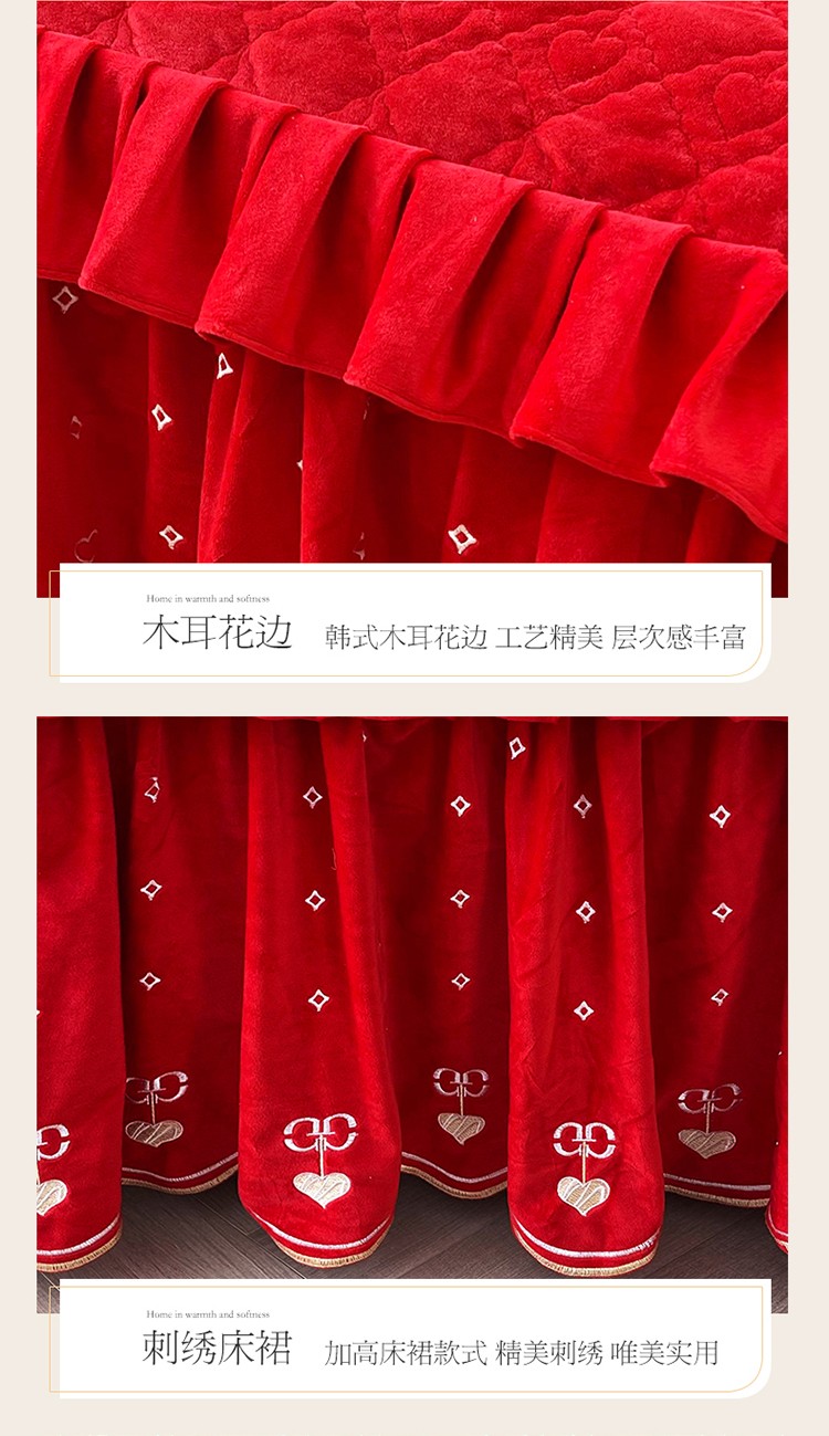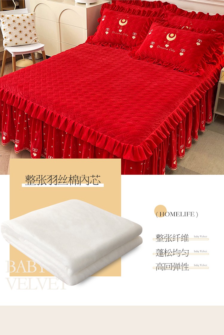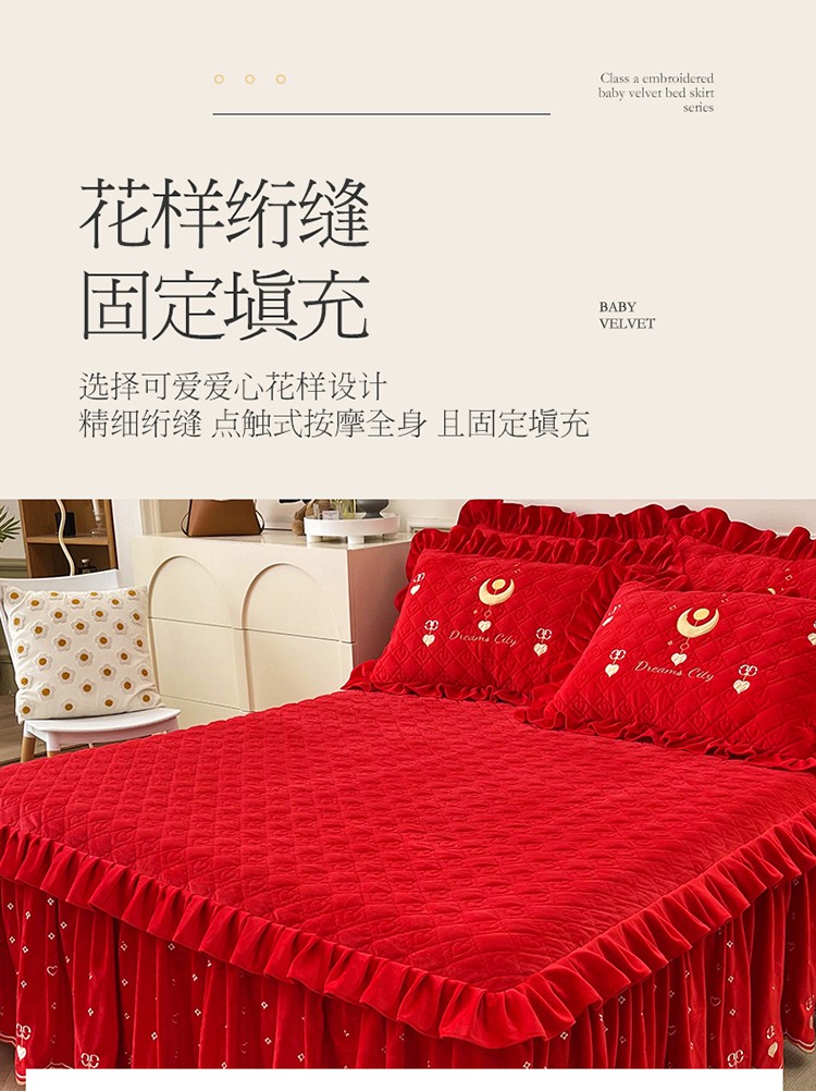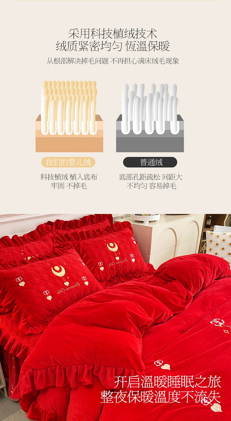 当前位置: 91家纺网 > 商品网购 > 床品套件 > 四件套 > 宝宝绒四件套 > 宜凡家纺 2022新款A类婴儿绒床裙星悦系列四件套 星悦-中国红