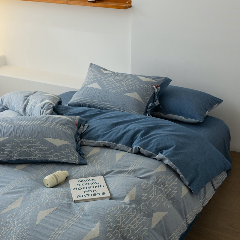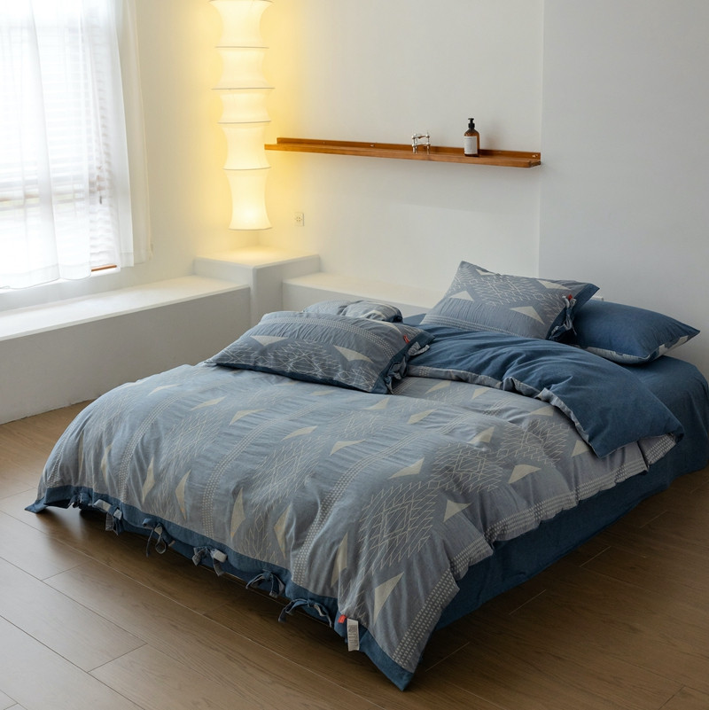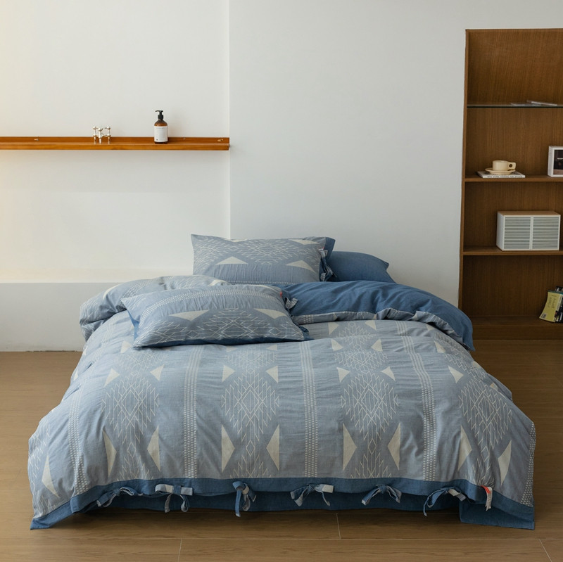 商品名称:安莱生活 2023四季款棉刺子大提花波西米亚风名族风四件套 波西米亚-深蓝