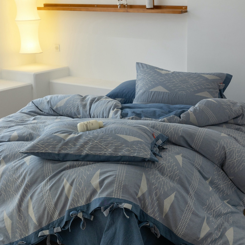 安莱生活 2023四季款棉刺子大提花波西米亚风名族风四件套 波西米亚-深蓝